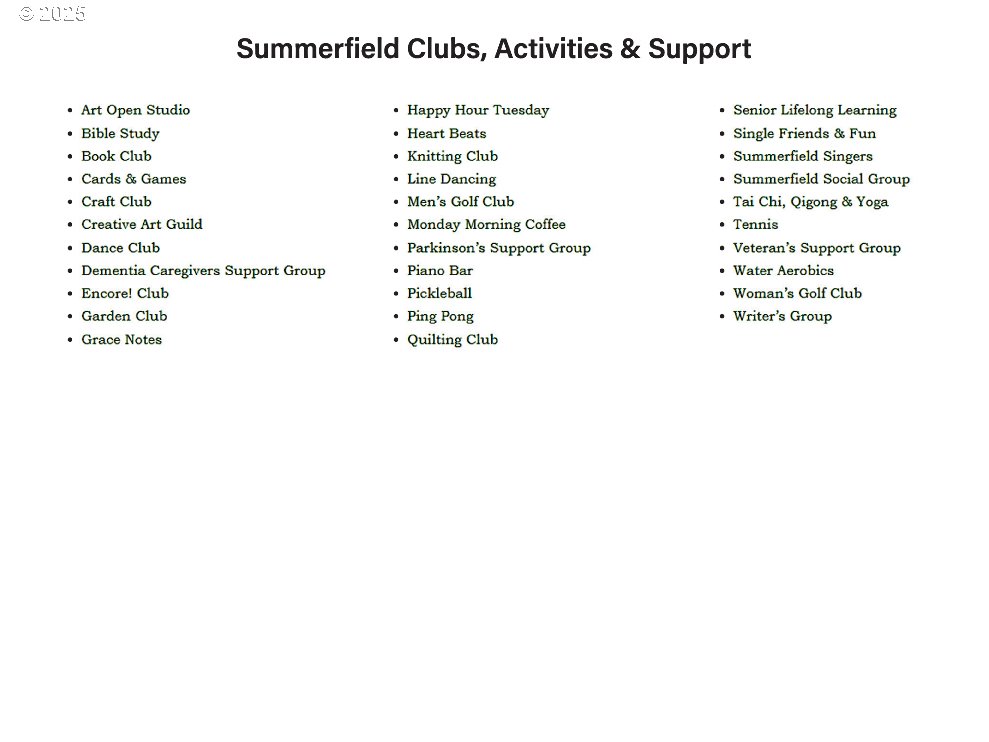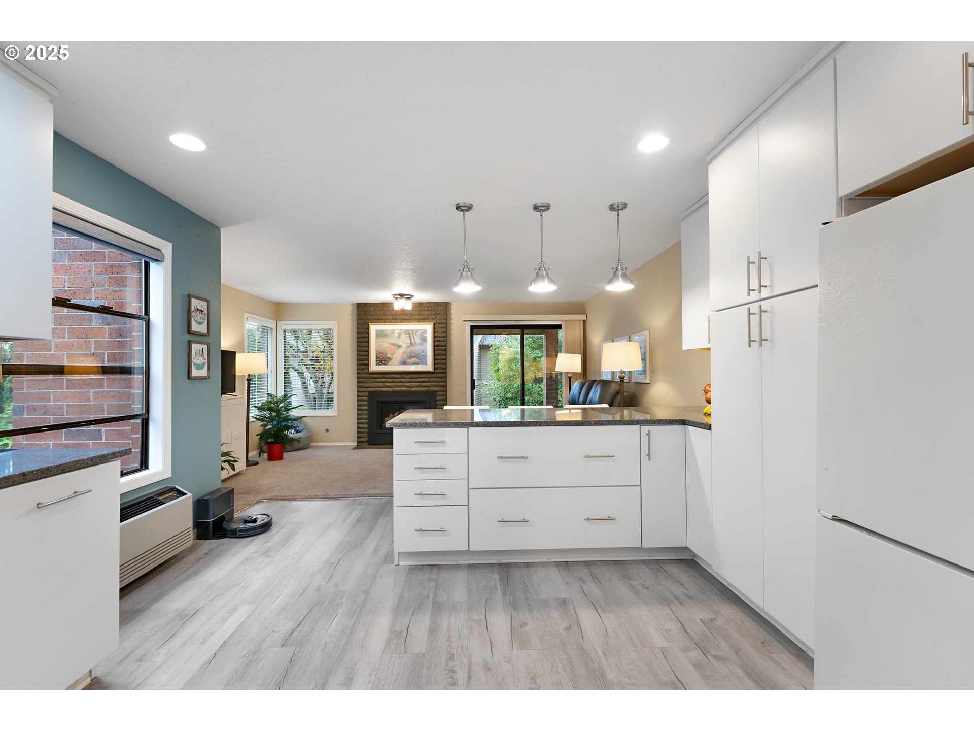 Prepare to be enchanted by this light, bright, and beautifully remodeled 1-bedroom, 1-bath, 762 sq ft end-unit condo in the coveted Fountains at Summerfield 55+ community! Perfect for those seeking a quiet, private hideaway, this ground-level home is filled with natural light from windows on three sides and offers an inviting open floor plan designed for easy living. Step inside to a spacious living room featuring a cozy gas fireplace insert—ideal for crisp mornings—and a slider leading to your large covered private patio, a lovely spot for morning coffee or afternoon lounging. The updated kitchen is a true standout with granite countertops, soft-close cabinetry, deep pot-and-pan drawers, and a gracious breakfast bar for quick bites or friendly chats. The beautifully remodeled bath includes a walk-in shower, and you’ll appreciate the convenience of an inside washer and dryer. A pristine detached single garage offers room for both your vehicle and a golf cart—perfect for making the most of Summerfield life. Active 55+ living awaits with an impressive array of amenities: optional 9-hole golf (annual resident pass only $750), pickleball and tennis courts, swimming pool, fitness center, library, clubhouse activities, and more. Secure entry and a peaceful setting complete the picture. Fountains 2025 HOA dues are $525/month and include water/sewer, basic cable, garbage/recycling, landscaping, yard and building maintenance, outside lighting, monthly entryway cleaning, annual exterior window washing, and building insurance. Immaculate, move-in ready, and perfectly situated for both relaxation and recreation—this is the vibrant, carefree lifestyle you’ve been waiting for!