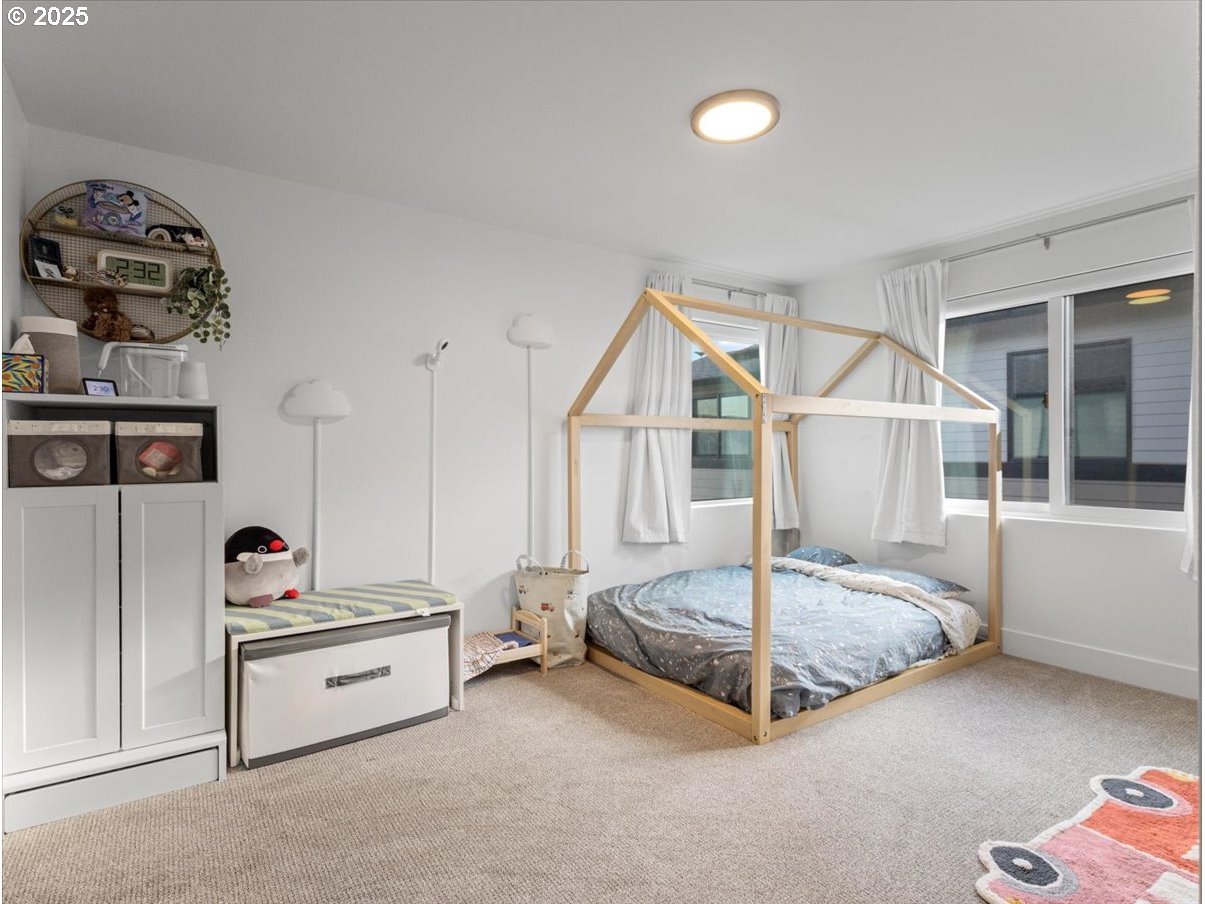 Luxury meets efficiency in the heart of Reeds Crossing! Come view this thoughtfully designed contemporary home with the highest efficiency rating with a precision wall panel system providing comfort and massive energy savings. Open concept floorplan with high ceilings, a quartz kitchen island, stainless steel appliances, piano finish soft close cabinetry with pull-down shelving, cabinet organizers, under cabinet lighting, and sleek interior doors. This must see home features 4 bedrooms plus an upstairs bonus/family room with a modern electric fireplace, an upstairs laundry room, and a large primary bedroom with a vaulted ceiling, huge walk-in closet and 5 piece bathroom. There is a bedroom and full bathroom on the main level perfect for guests. Lots of storage in the garage as well as being wired with 240v for electric vehicle charging. Fenced backyard with large covered patio and gas stub for BBQ. Miles of trails, several parks, and a short walk to dining options and new grocery store. [Home Energy Score = 10. HES Report at https://rpt.greenbuildingregistry.com/hes/OR10209705]