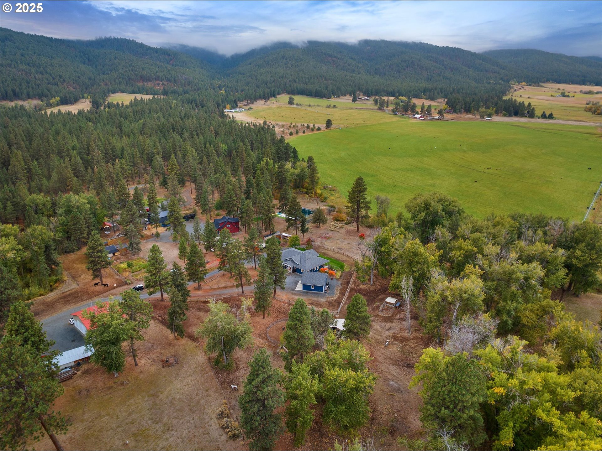 This custom home was built with superior materials by one of the most respected builders in the area! Situated on 6.54 private acres, the property is located at the end of a quiet road with stunning views of the Elkhorn Mountains. Single level living with 4 bedrooms, 4 bathrooms, plus office/den (3,469 sq ft). Interior of the home features hardwood cabinetry and floors, solid wood doors and other custom finishes throughout. Spacious open concept living includes a chef’s kitchen with oversized eating bar, dining area, and large living room with a Blaze King woodstove that can easily heat the home through the winter if desired. Primary suite boasts mountain views, direct covered patio access, ensuite bath with dual vanities, and walk-in shower. A dedicated home office with private entrance makes remote work or business office comfortable and convenient. The oversized garage accommodates 2 full-size trucks or SUV's with additional loft/attic storage. Enjoy the landscaped yard with fenced garden space, fruit trees, in-ground sprinklers and a tranquil water feature. Property is fully fenced for horses and includes a frost-free waterer. No HOA. Perfect access to outdoor recreation and adventure--ride horses or ATVs from your property onto public land for miles of trails. Country living meets refined comfort in this exceptional property and yet just a short drive to downtown Baker City! Be sure to view both videos for the full scope and beauty of this property.