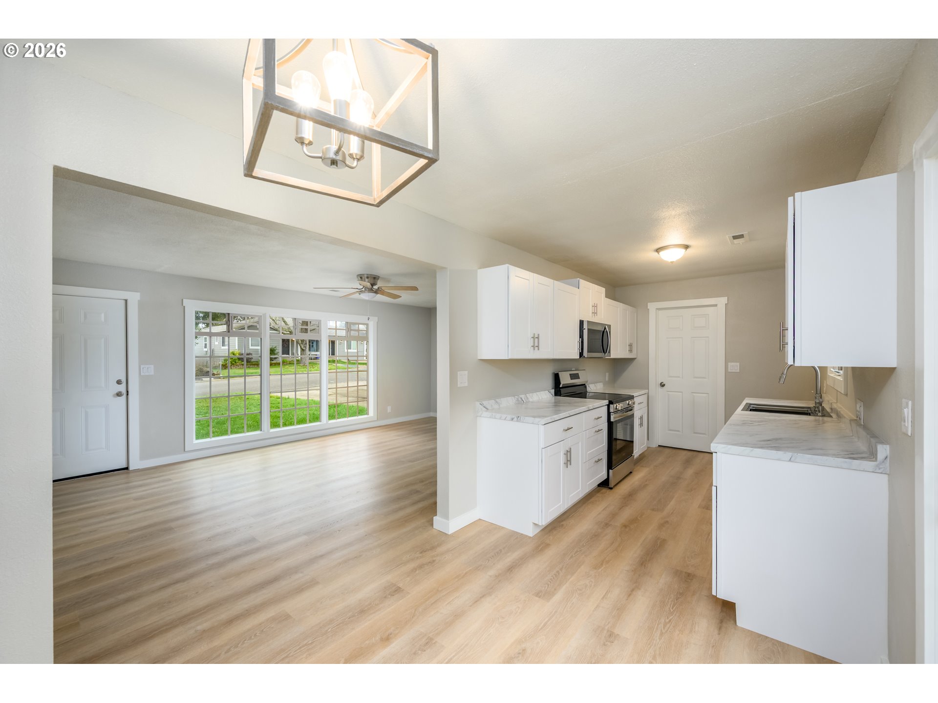 This newly remodeled single-level home sits on a corner lot that is located in a desirable West Roseburg neighborhood. Remodel includes brand new LVP flooring, carpet, interior paint, exterior paint, fixtures throughout, kitchen, bathrooms, trim, doors, air conditioner, heat pump, and a new roof.The spacious living room flows seamlessly into the dining area and kitchen, creating an ideal setting for everyday living and entertaining. Large windows and sliding glass doors provide beautiful views of the backyard and enhance natural sunlight. This home also includes a spacious backyard that is fully fenced for privacy and great for outdoor entertainment. Home features a large bonus room that can be used for an at home office or an extra bedroom. Located close to downtown, parks, grocery stores and plenty of dining options.