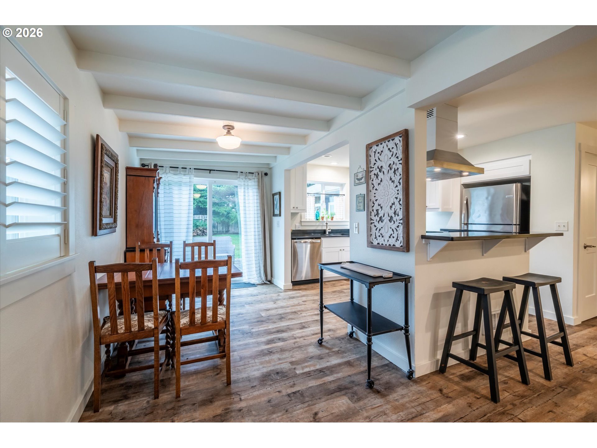 Welcome to this charming, renovated two-bedroom, one-bath cottage located on the east side of Bandon. Ideally situated for convenient access to Uptown amenities, Old Town, and the Harbor. This home offers a peaceful setting you’ll truly enjoy. The interior presents a comfortable and inviting atmosphere featuring vinyl plank flooring that adds modern elegance, complemented by custom Hunter Douglas shutters throughout. The efficient contemporary kitchen is well designed for everyday living as well as entertaining. A generously sized laundry room adds to the home’s practicality and convenience. Also included is a spacious bonus or family room, offering flexible space to suit a variety of needs—whether for gatherings, hobbies, or a relaxing retreat. Outdoors, the large south-facing backyard provides an ideal setting for relaxation. This is an excellent scaled-down residence or a second-home. The cottage blends classic vintage charm with contemporary updates. Upon visiting, you’ll immediately appreciate the warmth and character of this must-see property on the pristine Southern Oregon Coast.