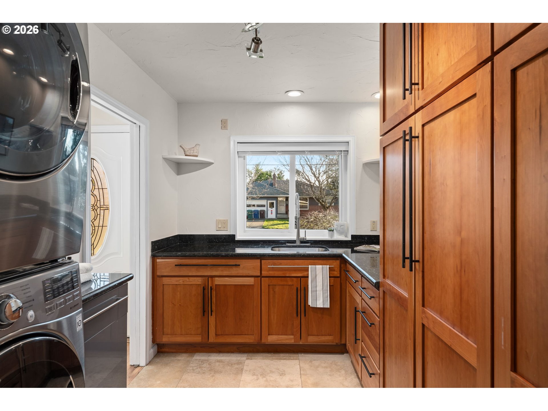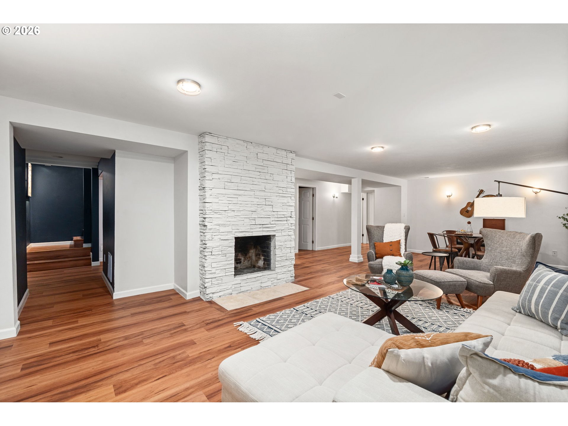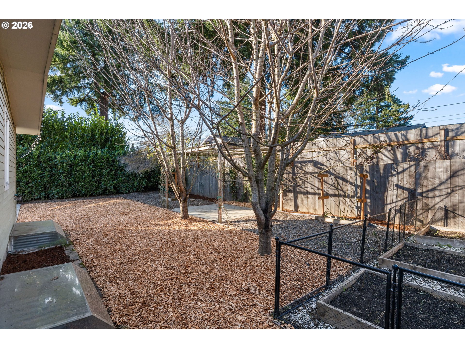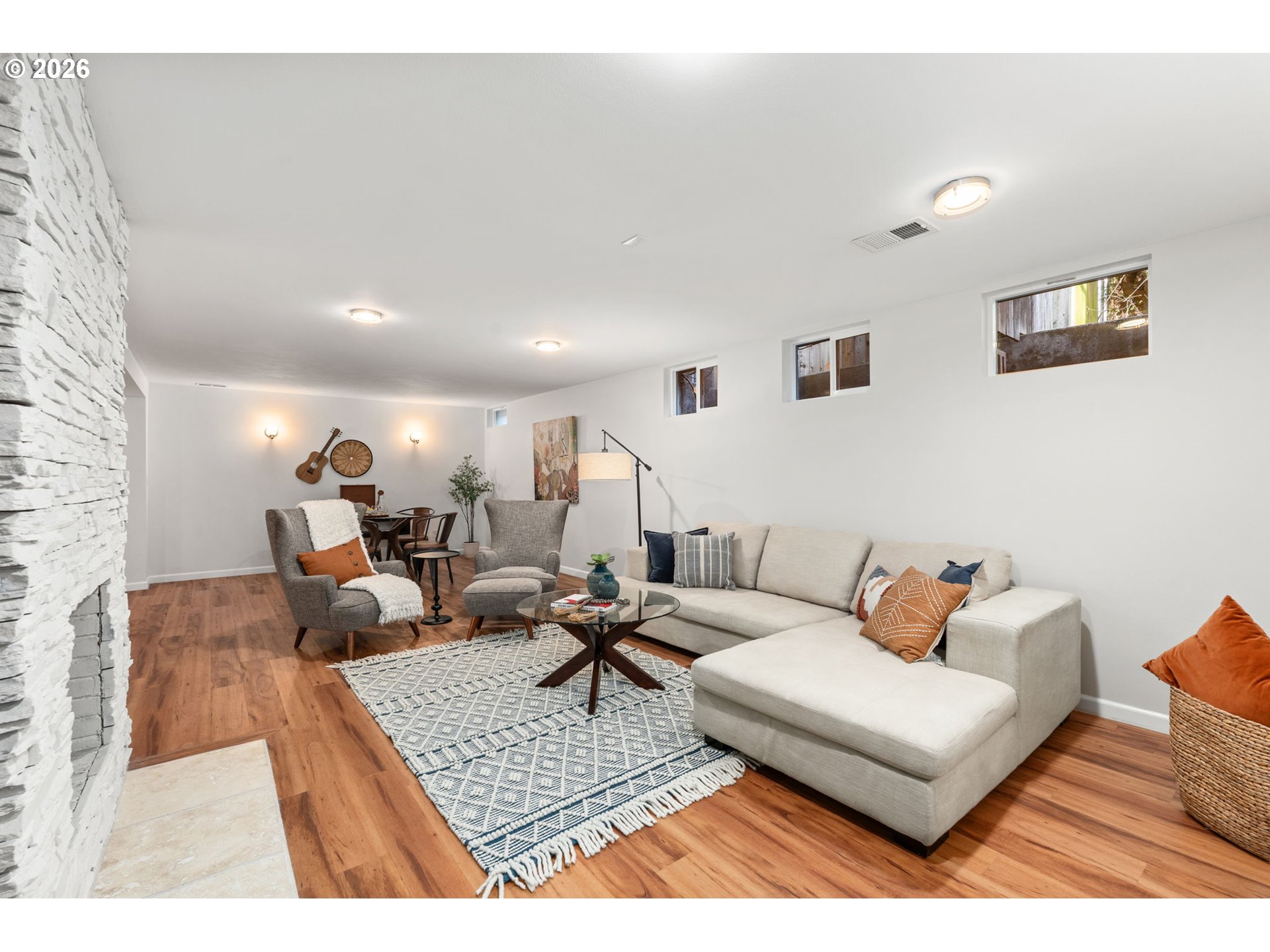 Confident, classic, and quietly efficient, this updated mid-century Milwaukie ranch blends original character with thoughtful modern upgrades across two finished levels. The main level offers vaulted ceilings, hardwood floors, a light-filled living room with wood-burning fireplace, and a kitchen with granite counters, stainless steel double ovens, wine cooler, pot filler, island seating, and heated tile floors. The primary suite includes beamed ceilings, walk-in closet, and en suite with heated tile floors. Downstairs features a family room with fireplace, two bedrooms, full bath, and storage. Fully fenced yard, patio, pergola, raised beds, and RV parking. Energy-efficient upgrades include solar panels, updated plumbing, high-efficiency furnace, newer water heater, and radon mitigation. Mid-century style, modern systems, and a layout that simply works! [Home Energy Score = 7. HES Report at https://rpt.greenbuildingregistry.com/hes/OR10244195]