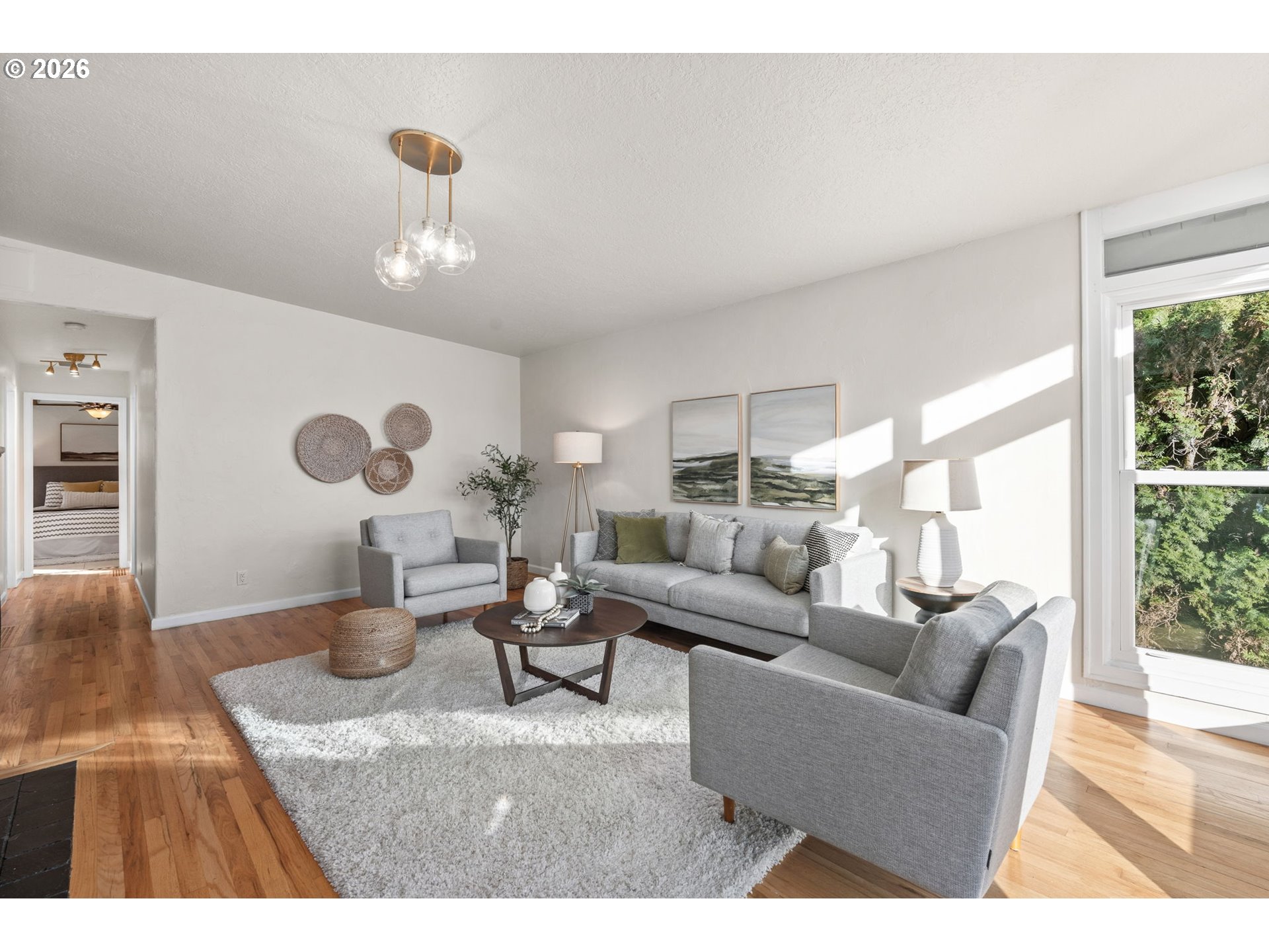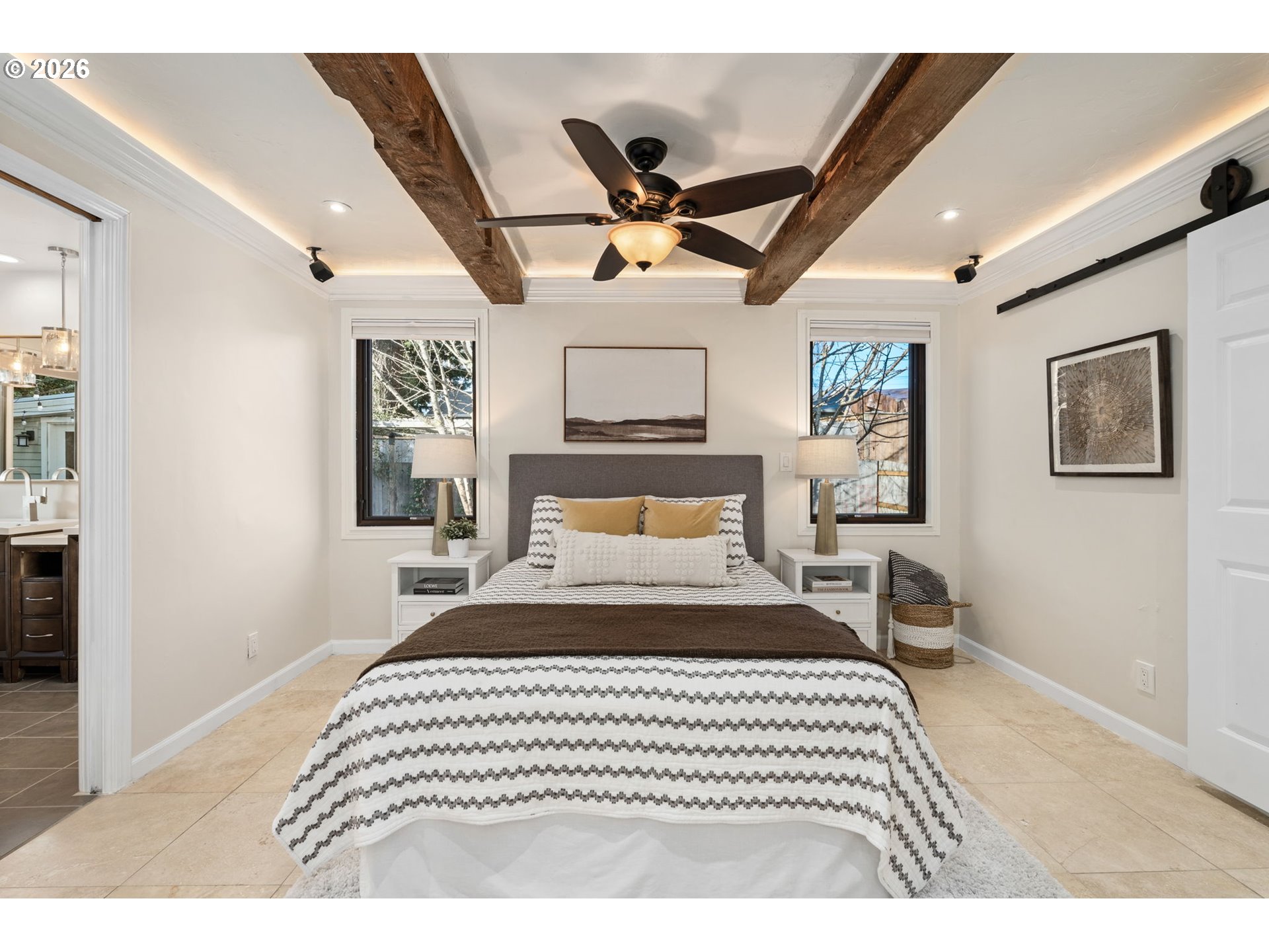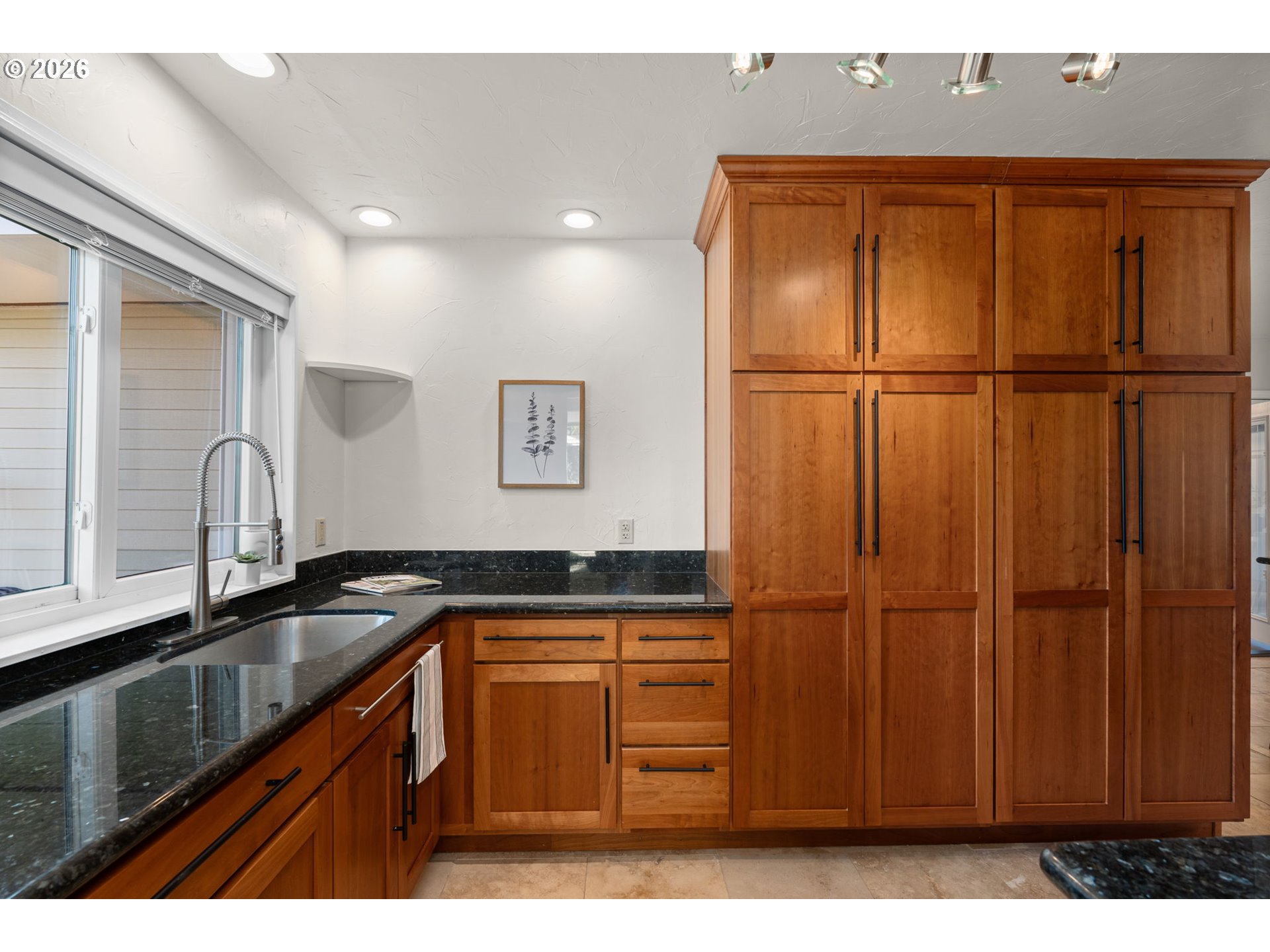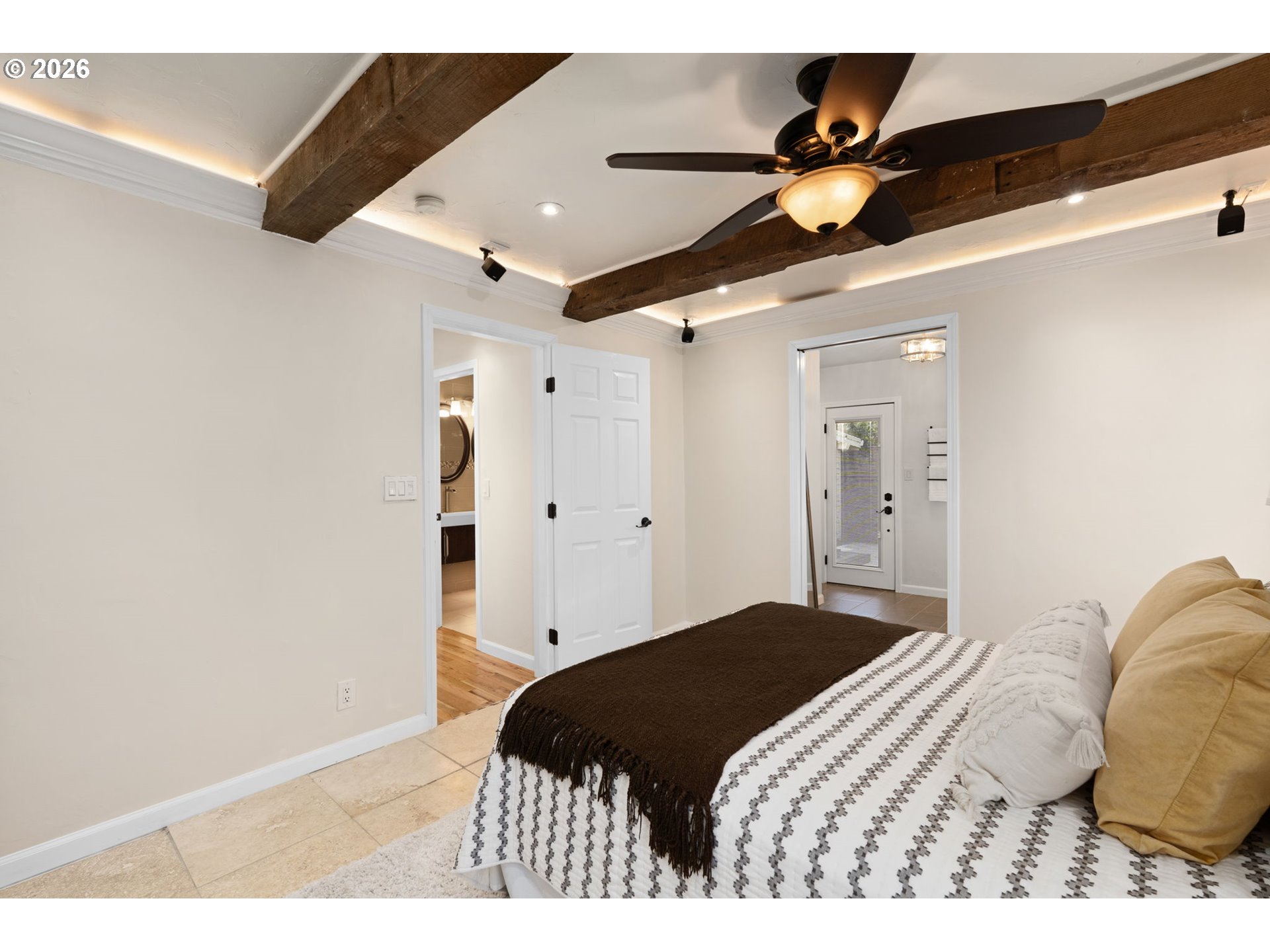 Confident, classic, and quietly efficient, this updated mid-century Milwaukie ranch blends original character with thoughtful modern upgrades across two finished levels. The main level offers vaulted ceilings, hardwood floors, a light-filled living room with wood-burning fireplace, and a kitchen with granite counters, stainless steel double ovens, wine cooler, pot filler, island seating, and heated tile floors. The primary suite includes beamed ceilings, walk-in closet, and en suite with heated tile floors. Downstairs features a family room with fireplace, two bedrooms, full bath, and storage. Fully fenced yard, patio, pergola, raised beds, and RV parking. Energy-efficient upgrades include solar panels, updated plumbing, high-efficiency furnace, newer water heater, and radon mitigation. Mid-century style, modern systems, and a layout that simply works! [Home Energy Score = 7. HES Report at https://rpt.greenbuildingregistry.com/hes/OR10244195]