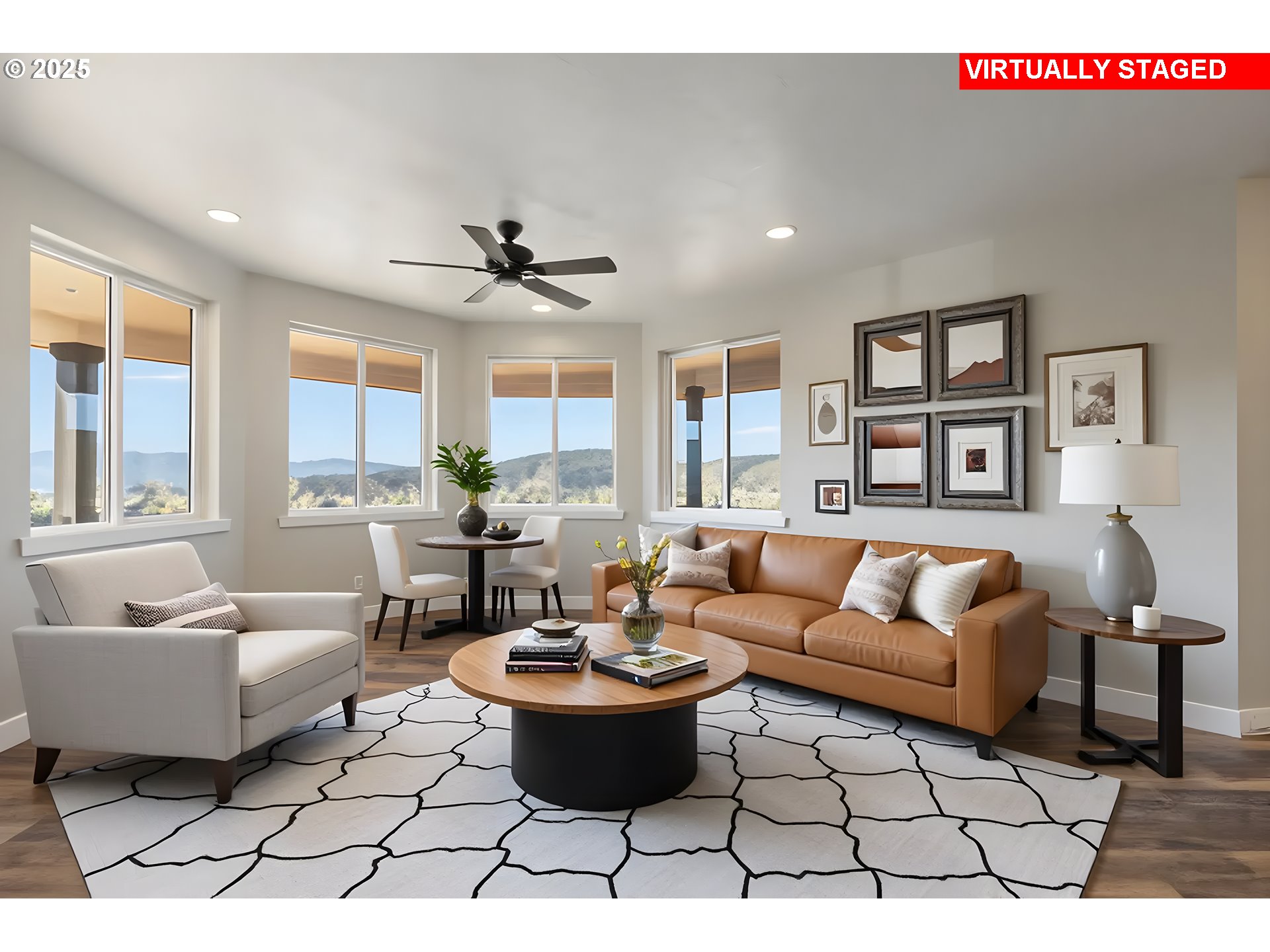 Step into architectural charm and modern elegance in this stunning turret-style home! From its distinctive roofline to its wraparound covered porch, this newly completed residence captures panoramic views and timeless character from every angle.Inside, soaring ceilings and abundant natural light create a sense of openness and warmth. The kitchen is both spacious and functional, featuring an impressive island with eating bar, sleek white quartz counters, and stainless steel appliances — **including the refrigerator**. With its own exterior entrance to the covered porch, it’s perfectly designed for easy outdoor dining and entertaining.The main level offers both a formal living room and a light-filled turret dining room — ideal for hosting and everyday living. Upstairs, retreat to the luxurious primary suite, where the turret design creates a beautiful sitting area framed by windows and morning light. The spa-inspired bathroom features a soaking tub, walk-in shower, and dual vanities, while the thoughtful layout provides space for relaxation and quiet retreat.Two additional bedrooms complete the upper level — each designed to capture the home’s remarkable views and natural light.Whether you’re relaxing on the wraparound porch, enjoying a quiet evening of stargazing, or entertaining friends at sunset, this home offers Oregon living at its finest.**Bonus opportunity:** The neighboring **664 Brooks Loop** is also available — a rare chance to create the perfect two-home or multi-generational living setup in this exceptional setting.