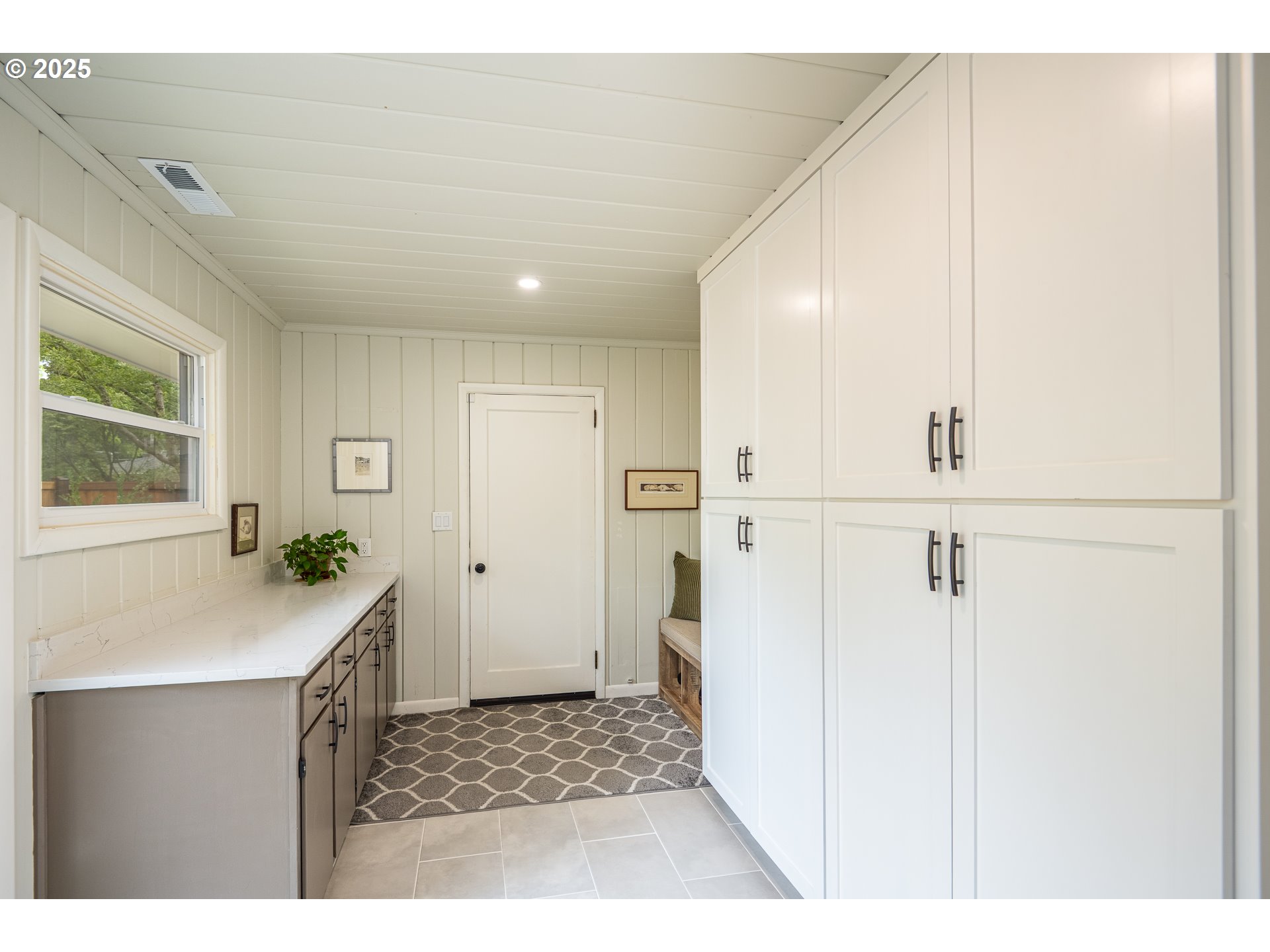 Discover timeless design and modern comfort in this stunning 1952 Mid-Century Modern home, ideally situated on a quiet corner lot between Eugene Country Club and Oakway Center. The open floor plan highlights original refinished wood floors, a cozy new gas fireplace, and a spacious updated kitchen with stainless steel appliances. French doors open to a large entertaining deck overlooking the beautifully landscaped backyard. Thoughtfully remodeled throughout, this home now features an overhauled laundry room with abundant built-in storage, offering both functionality and style. Additional recent upgrades include a new front door, blinds throughout, updated bedroom closet doors, and fresh interior paint. Exterior improvements include newer paint, new gutters and downspouts with leaf filters, new fencing around the backyard, full landscaping with a drip irrigation system, wired for Xfinity home security w/ cameras and selective tree removal for added light and space. Enjoy year-round efficiency with a tankless water heater and a newer HVAC system. A versatile bonus or storage area above the garage provides extra flexibility. Perfectly located near golfing, dining, and shopping, short jaunt to Autzen Stadium, and just a short golf cart ride to Eugene Country Club. This home offers the ideal blend of elegance, convenience, and classic mid-century charm.