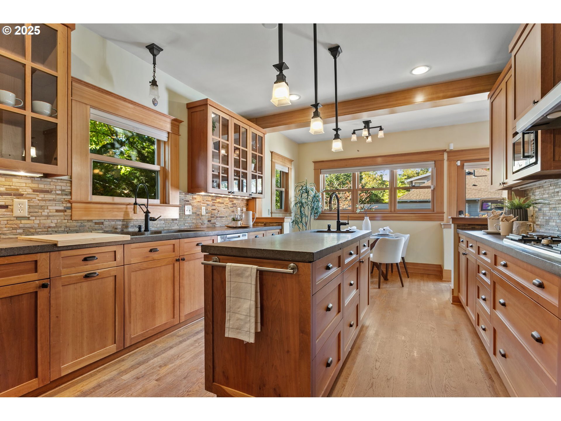 This cheerful Craftsman Four Square captures the essence of Portland charm while offering thoughtful updates for today’s lifestyle. From the moment you arrive, the spacious front porch and original architectural details invite you to slow down, sit awhile, and enjoy the timeless character that makes this home so special. Inside you’ll find beautiful hardwood floors with decorative inlays, large picture windows that fill each room with natural light, and a layout that balances historic craftsmanship with comfortable everyday living. The cozy gas fireplace and sunroom porch provide the perfect spots to sip morning coffee or enjoy a quiet afternoon retreat. Period woodwork and built-ins highlight the home’s storied past, while modern upgrades including a newer hipped roof, Hardie Plank siding, facias, gutters, dual zone heat pump, mini split system, integrated security system and new fencing provide the peace of mind every homeowner appreciates. The basement ADU is fully functional with a private entrance, offers incredible flexibility and is ideal for multi-generational living, guests, or income generating. Outside, a private driveway and workshop add convenience and functionality, while the fenced yard creates a welcoming space for pets, play, or gardening. Located in the heart of Portland’s hip Humboldt neighborhood, you are just blocks from Peninsula Park, local cafes, and the vibrant Mississippi and Alberta Arts districts. With a 94 bike score enjoy easy access to shops, dining, and community events that make this area one of the city’s most desirable neighborhoods. Warm, welcoming, and full of personality, 5753 N Haight Ave is a rare find that perfectly blends vintage soul with modern comfort. This Portland treasure is ready to steal your heart.