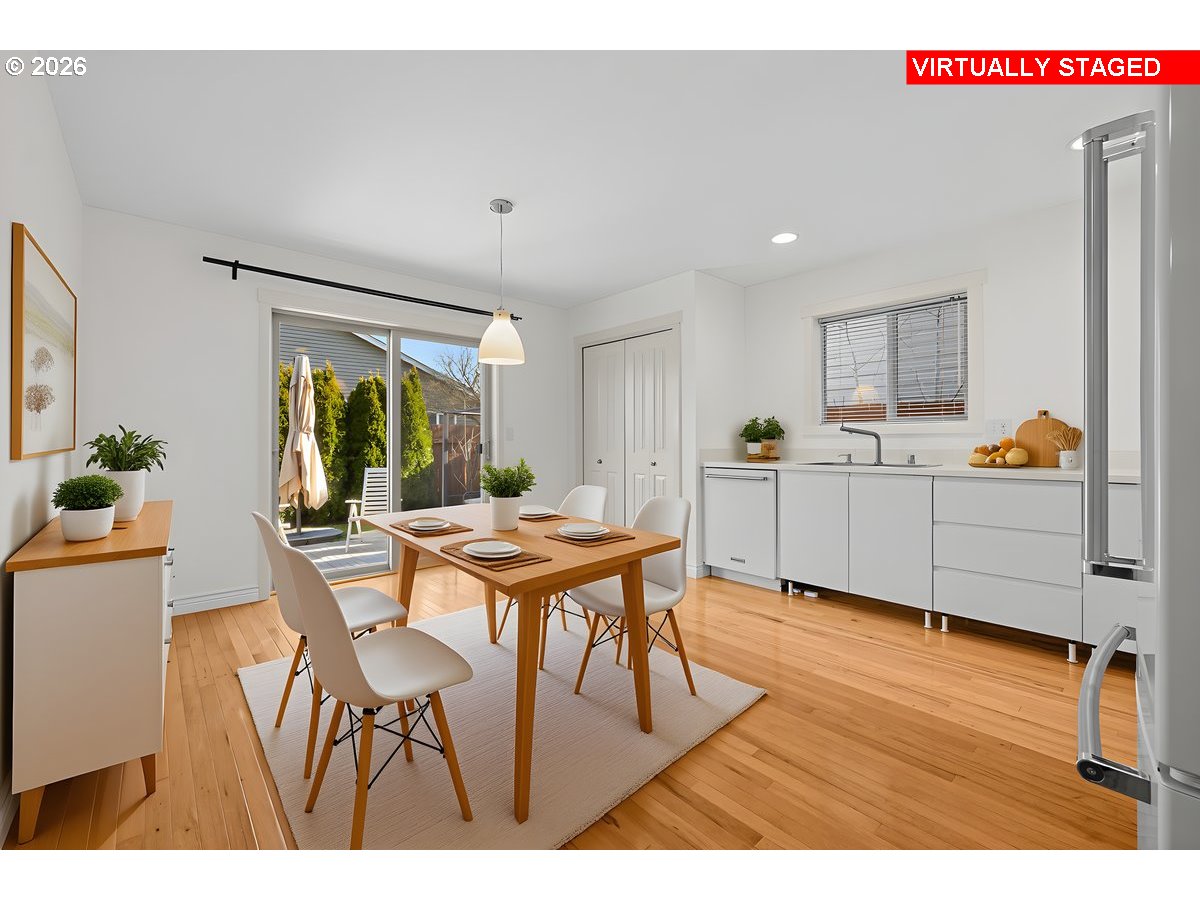 Immaculately maintained single-level home with 3 bedrooms and 2 bathrooms, designed for comfortable living. The open, updated kitchen features a pantry, stainless steel appliances, and a new smooth top range. Highlights include wood and laminate flooring, fresh paint, air conditioning, and a tankless water heater. The finished garage offers storage racks plus an insulated attic for extra storage. Step outside to a fully fenced yard with cherry trees, a raspberry bush, and space for gardening. Located within walking distance to the brand new Image Elementary school & "Dino Park" and just minutes from shopping, dining, and I-205. Hurry this adorable home won't last!
