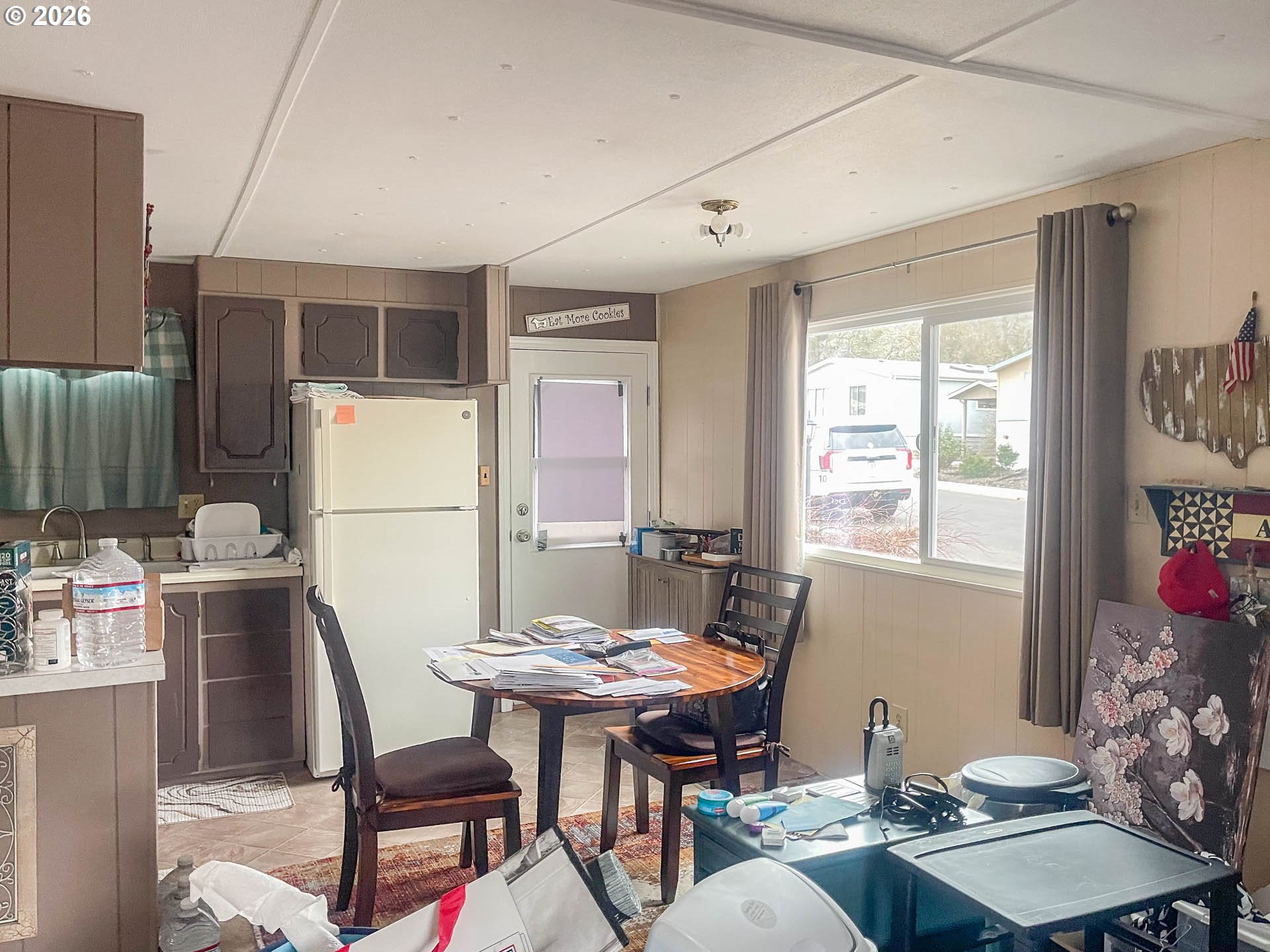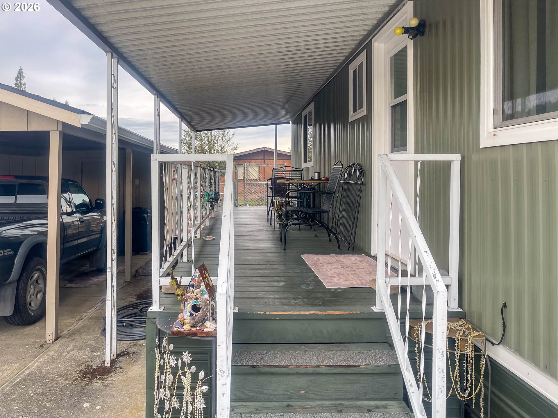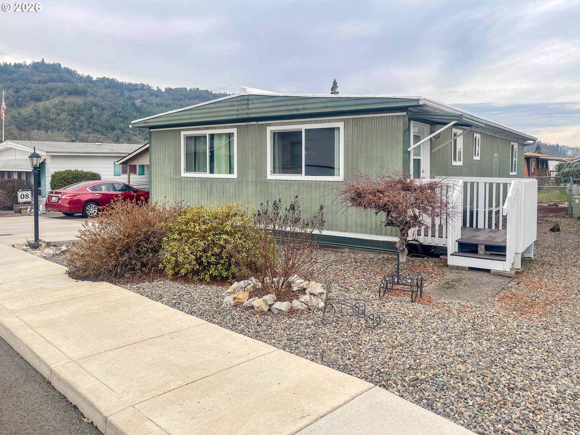 This home features a large open floor plan with dining and living combo, tidy kitchen, roomy bedrooms with half bath off the primary bedroom, covered deck, 1-car carport with storage, and beautifully rocked, fenced yard. All this located in a nice 55+ mobile home park.