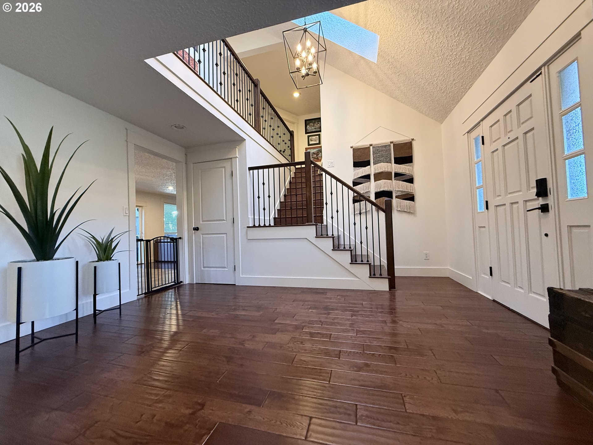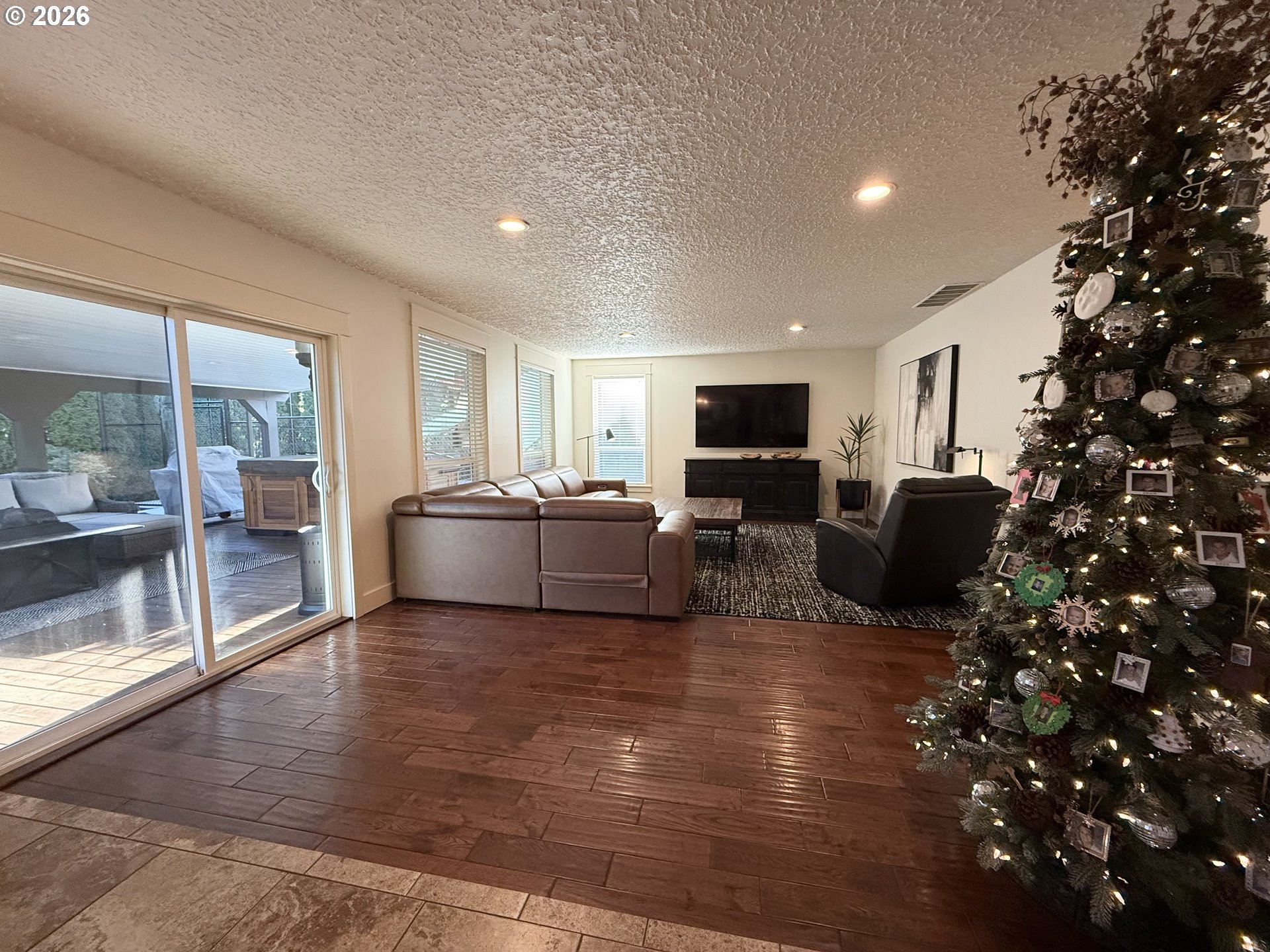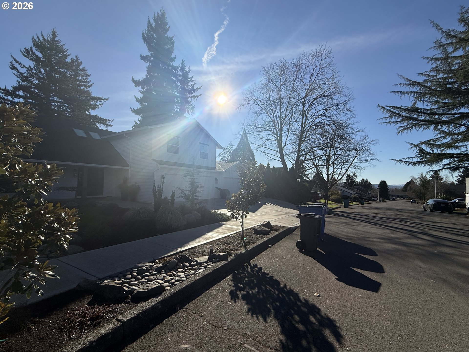 Exceptional curb appeal and standout outdoor living define this 2,958 sq ft two-story home on a private, fully finished quarter-acre lot. A wide 42’ driveway with 36’ approach, high-end professional turf, mature landscaping, low-voltage lighting on timer, and a welcoming covered front porch create an immediate sense of quality and presence. The exterior is further enhanced by new siding, fresh paint, new gutters, and full drip irrigation.Designed for both everyday living and entertaining, the outdoor spaces are exceptional. A 20’ x 25’ covered back deck, accessed by slider off the family room, provides year-round enjoyment and overlooks a professionally hardscaped seating area with a contained fire pit. The entire backyard is thoughtfully framed by 15’ mature arborvitae on drip irrigation, offering rare privacy and a true retreat-like setting.Inside, the main level features a living room, formal dining room, and a kitchen with granite countertops and stainless steel appliances that opens to a spacious family room. A half bath and utility room complete the lower level. Upstairs offers a primary suite with double vanity and walk-in tile shower, three additional bedrooms, a full bath with double vanity, and a large bonus room with walk-in closet. A fully finished four-car garage—configured as two separate two-car spaces—is a rare highlight. The newly added garage functions as a roll-through design with direct access to the 60’ x 24’ sport court enclosed with black chain-link fencing. A 10’ x 6’ storage shed adds convenient outdoor storage.Turn key! Extensive updates include furnace and heat pump (2010), full interior remodel (2012), new roof, skylights, vinyl windows and slider (2019), and major 2024–2025 improvements including garage addition, new driveway and sidewalks, hardscaping, irrigation, professional turf, 400-amp electrical service, new panels, and an 80-gallon commercial-rated hot water tank. dedicated hot tub electric connection.