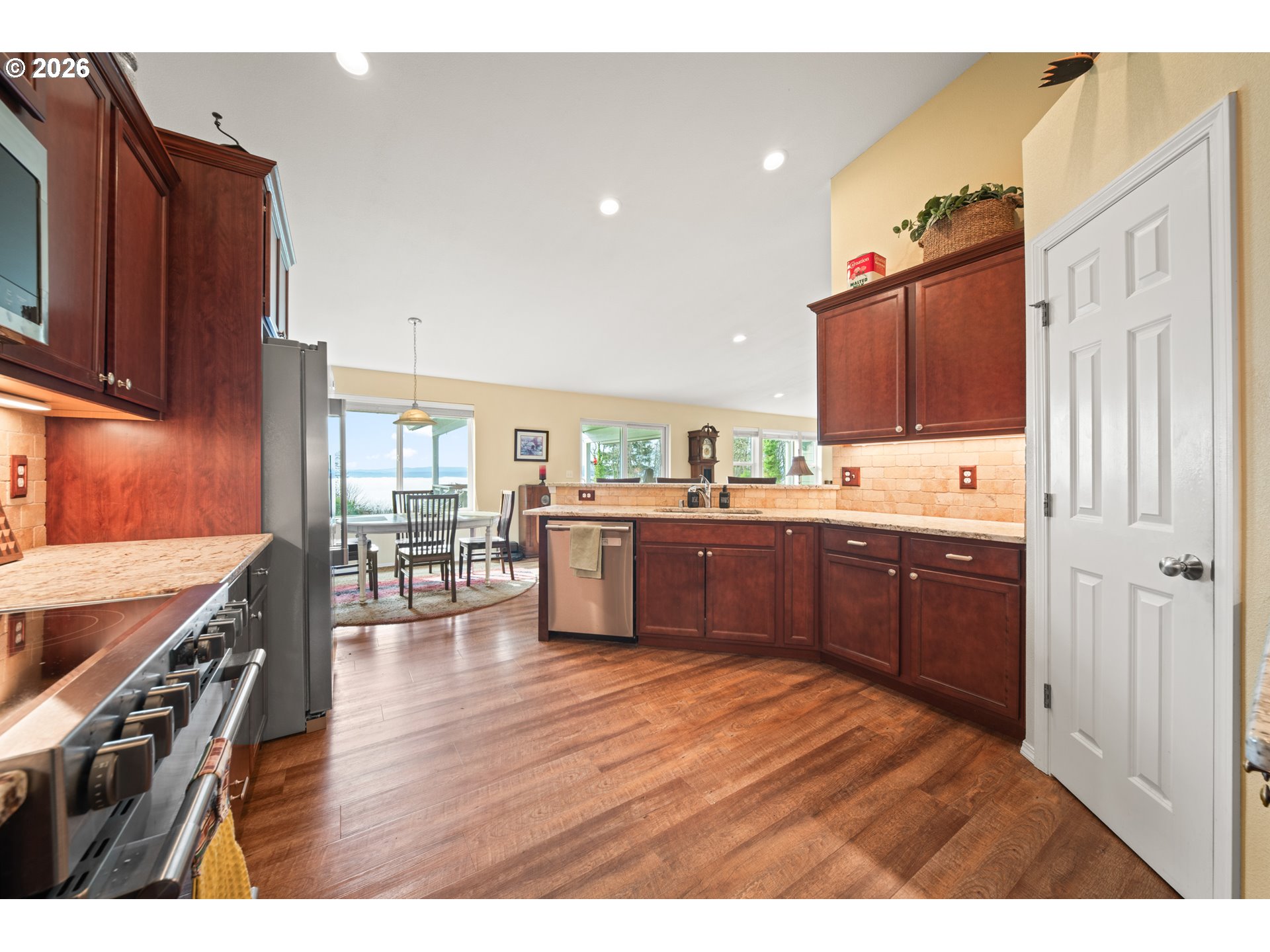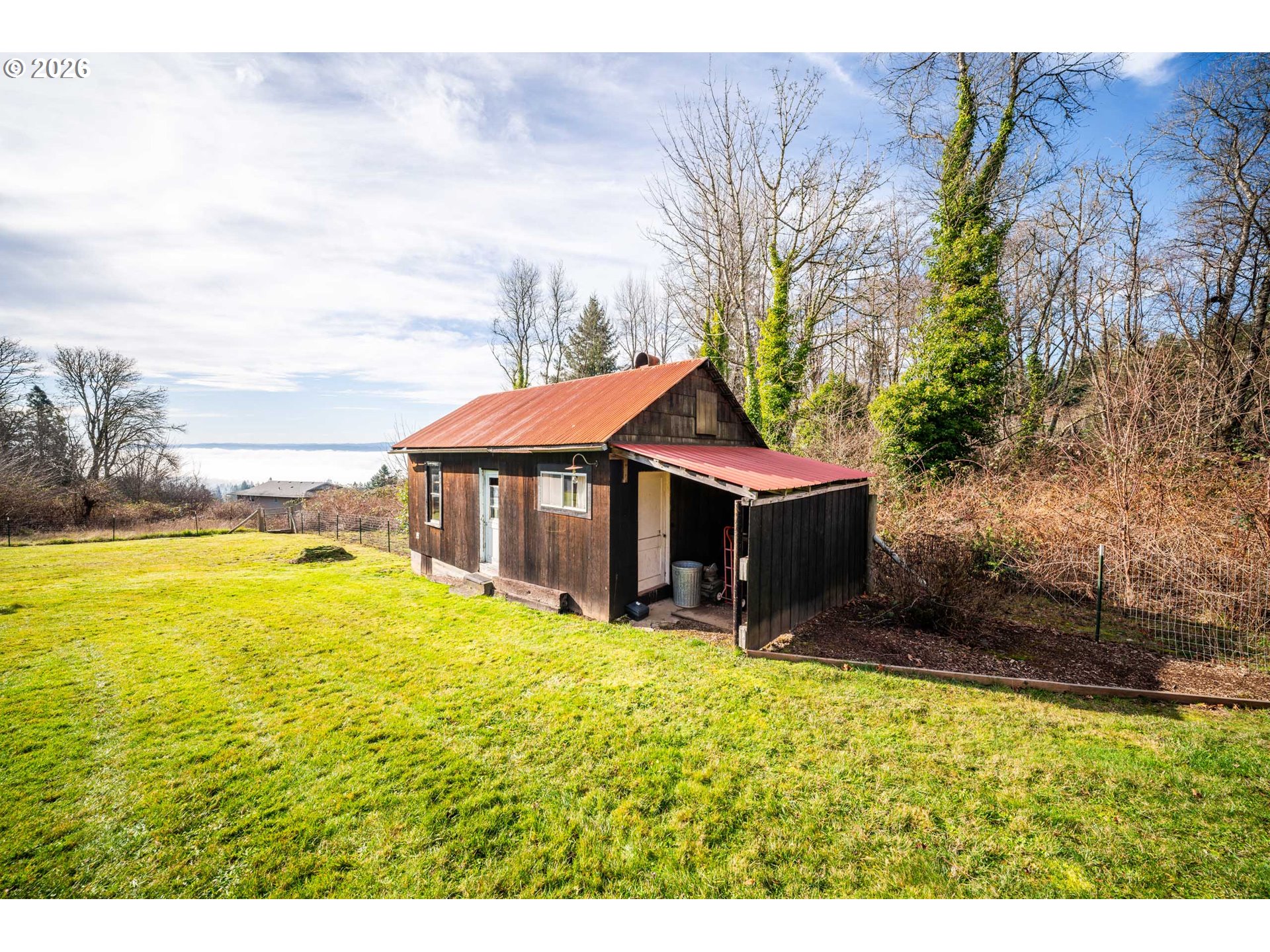 Discover this beautifully maintained single-story home on ~2.67 acres overlooking the Columbia River in the lovely community of Kalama! Step inside to find high ceilings, a spacious dining room and kitchen with granite countertops, stainless appliances, and a corner pantry — perfect for entertaining or comfortable everyday living. Pride of ownership shines throughout with thoughtful finishes, manicured landscaping, and a warm, inviting feel. The home offers a finished 3-car garage with built-in cabinets and custom workshop space, plus an impressive 25x50 detached metal shop with pavement under providing ample space for your boat, tractor, RV, or toys! Outside you'll enjoy loads of paved parking, a stone-accented covered porch entry, a fenced yard, and a covered back deck ideal for relaxing while taking in the view. The property also includes a charming old homestead structure —currently used for storage — with a rustic sauna inside, and three driveway approaches for convenient access. With city water and septic, PLUS a private well for irrigation, this home blends comfort and practicality. A 50-year roof adds peace of mind, and the location offers the perfect balance of privacy and convenience — just minutes from town and freeway access. A rare find combining space, views, and a one-level layout that you don't want to miss!
