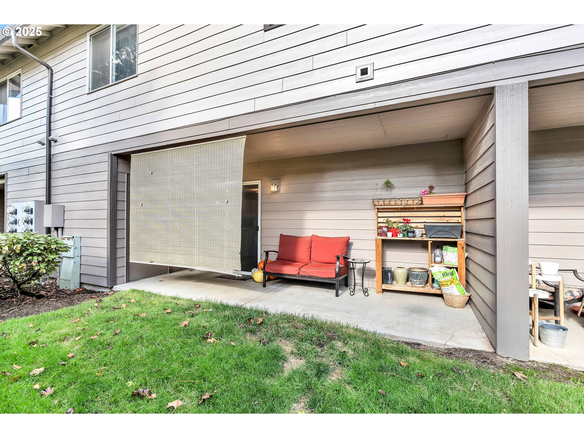 Beautifully maintained condo in excellent condition! Enjoy laminate flooring throughout and a spacious open layout connecting the kitchen, dining, and living areas. Sliding doors from the dining room open to a lovely backyard and large covered patio—perfect for relaxing or entertaining. Features include ceiling fans, a cozy faux fireplace with heat, stacked washer/dryer, refrigerator, stove, and a huge utility room. Covered parking is right outside your door, with plenty of guest parking nearby. Convenient location close to shopping, scenic trails, and Legacy Hospital (just ¼ mile away). HOA covers water, garbage, sewer, and landscaping, with strong reserves and well-kept grounds.