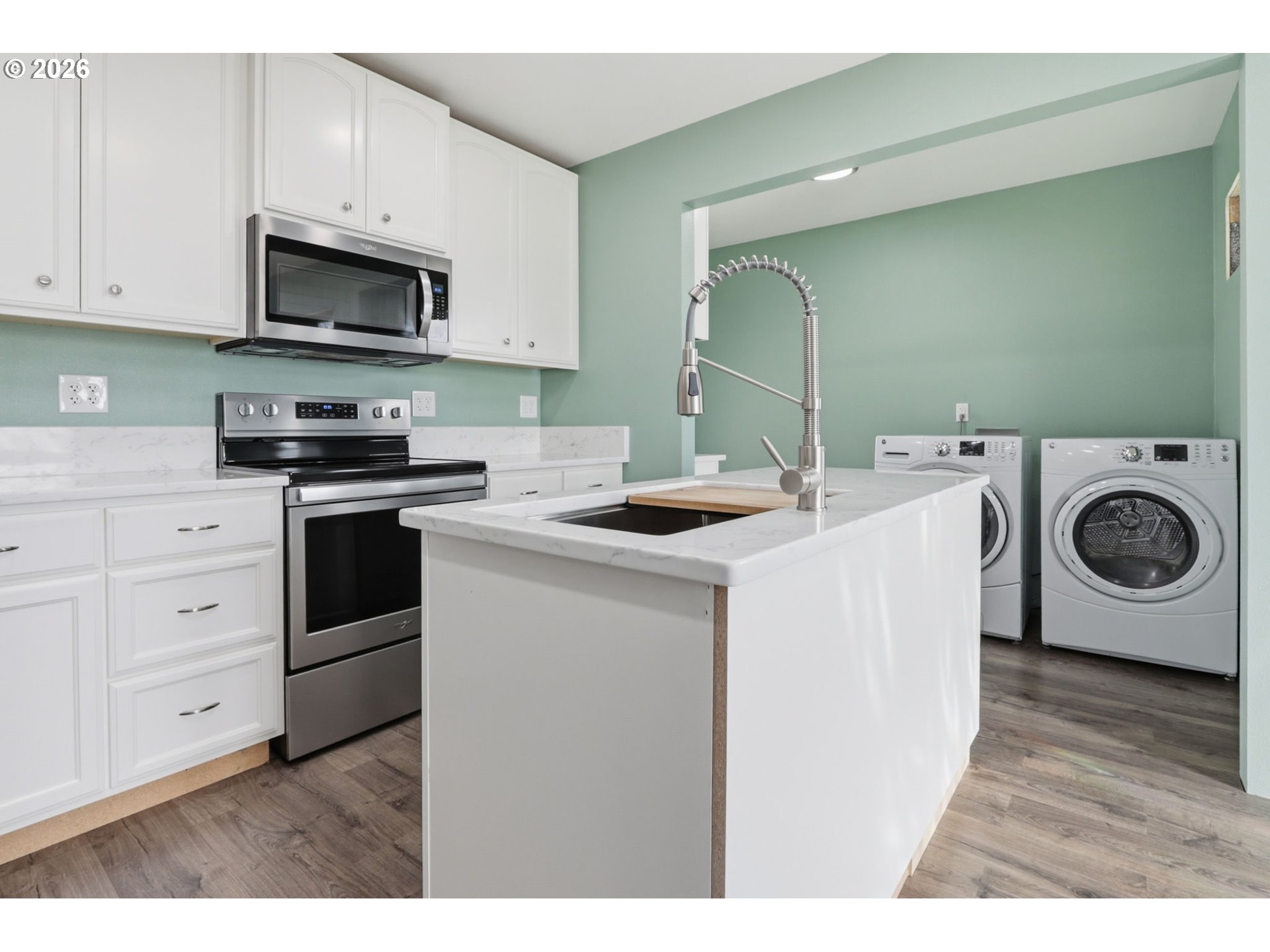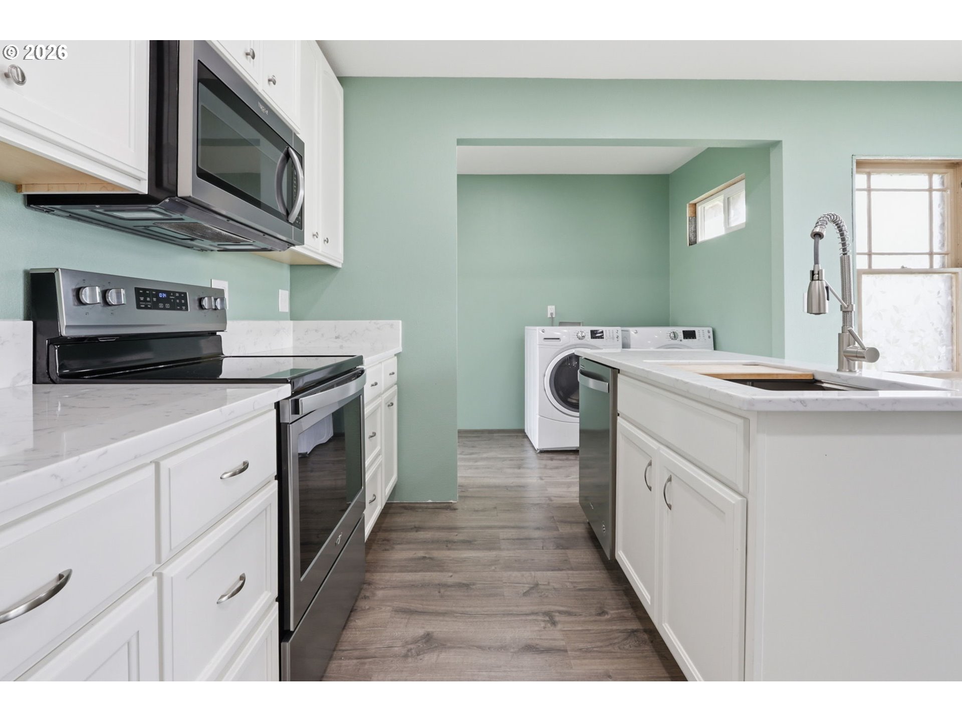 Charming home in the heart of Longview within walking distance to Lake Sacajawea Park! This cute 2 bed, 1 bath home has most of the interior updates done for you and just needs your finishing touches. Open concept that greets you with cozy wood burning fireplace in the living room, flowing into the dining room space just off the kitchen. New LVP in kitchen, primary bedroom, bathroom, laundry room, living room and dining room. Remodeled kitchen and laundry room both with custom cabinets and quartz counters, complete with all appliances. Updated primary bedroom and bathroom. New texture and paint throughout most of the home. The spacious and fully fenced back yard is perfect for relaxing, pets, gardening and hosting. The oversized detached garage with space for 2 cars and workbench area is situated just off the back alley for private access. All of this close to town, schools, college, hospital, I-5 and only 45 mins to Vancouver/Portland. Come and see, put your personal final touches on this little gem and make it your own!