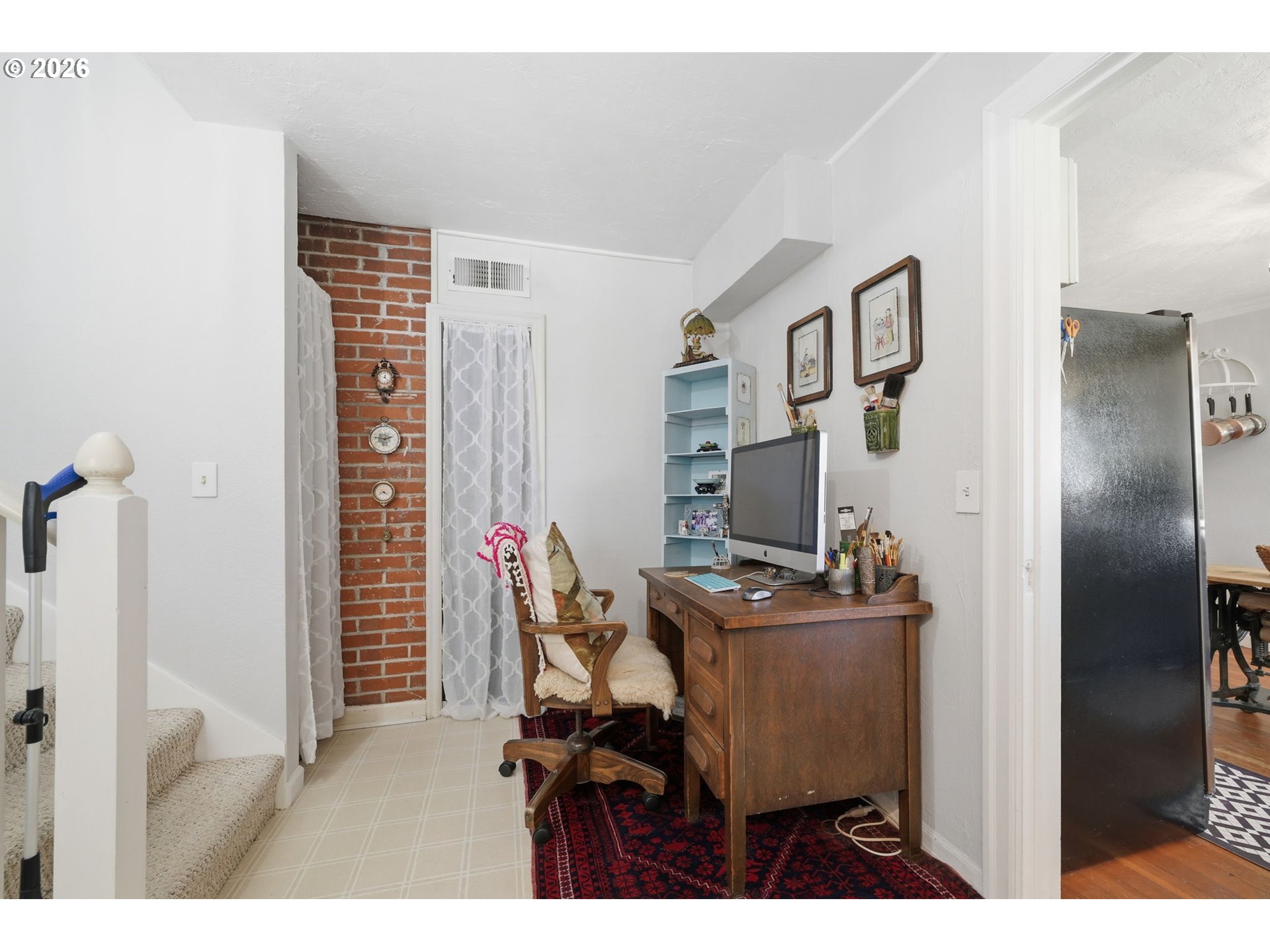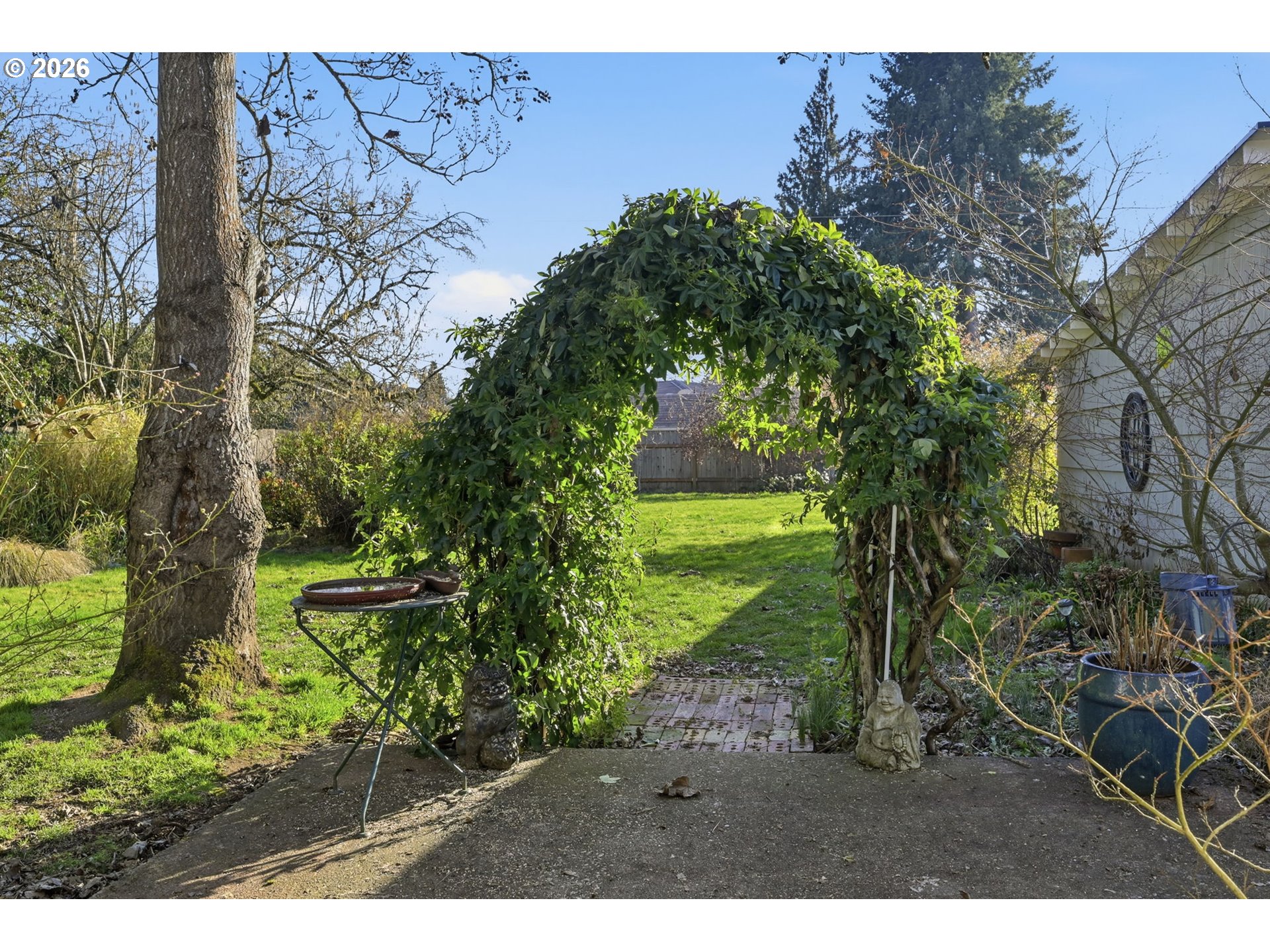 Set on an oversized 0.33-acre in-town lot, this 1948 Cape Cod offers timeless character, space to breathe, and a truly special setting. The sellers have thoughtfully preserved the home’s vintage appeal, featuring original hardwood floors throughout the main level and two main-floor bedrooms, all in excellent condition. The upper level has been converted into a spacious bedroom with a walk-in closet—perfect as a primary suite, third bedroom, or bonus room. Classic details include coved ceilings and walls, arched doorways, and a charming country kitchen with abundant cabinetry and storage and a free standing gas range to cook on. A separate, generously sized dining room adds to the home’s comfortable flow. Recent interior and exterior paint has brightened the home beautifully, while double-pane vinyl windows (installed prior to current sellers) provide improved efficiency. A newer roof was installed approximately two years ago, at which time the attached carport structure was also repaired. Original cedar shake and shingle siding adds to the authentic character. A detached garage and long driveway provide ample parking. The park-like backyard is a standout feature—lush, private, and alive with nature. Mature plantings include a Japanese maple, fig trees, hazelnut trees, kiwi, crab-apple and more, creating a peaceful haven that attracts a wide variety of birds, from blue jays to robins. A large garden area and greenhouse (included) make this an ideal property for gardeners and nature lovers alike. Additional features include a utility room with laundry, half bath, and utility sink. Conveniently located near shopping and bus lines, with the added bonus of low taxes, this home offers vintage charm, modern livability, and an exceptional size lot.