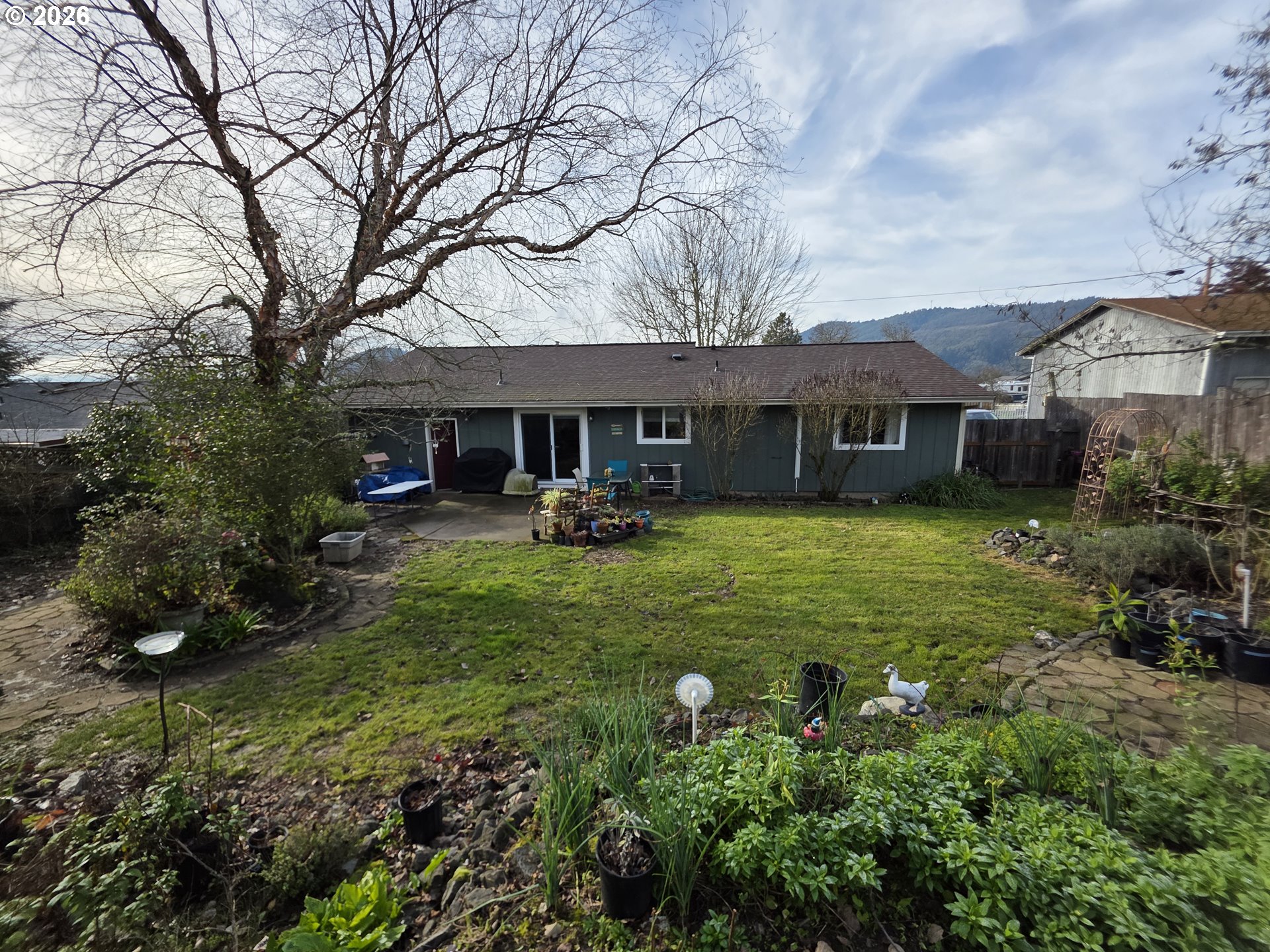 This property is a gardener's dream! Beautifully landscaped with a terraced back yard for multi-level use. Nice 12 X 10 ft shed for all your tools and gear. Several fruit trees include apple, figs, plums, peach, and cherry. There is also a passion fruit vine and delicious blackberries. Backyard also has an herb garden plus many perennial bulbs and flowers blooming in the Spring. Out front, a new blacktop installed is great for boat or RV parking. As you enter the home, you will notice the new laminate flooring installed throughout the entire home along with fresh painted walls. Notice the excellent lighting coming from all the new vinyl double pane windows that were installed for better weather resistance. Upgraded heating and cooling with the two new mini split systems conveniently located in the living room and master bedroom. New sliding glass back door with built in shutters. All kitchen appliances convey including newer refrigerator and microwave. Washer and dryer are negotiable. Close to amenities like the Wildlife Safari, the South Umpqua River, and an abundance of outdoor recreational opportunities! This home has so much to offer for someone to start the next chapter of their lives.