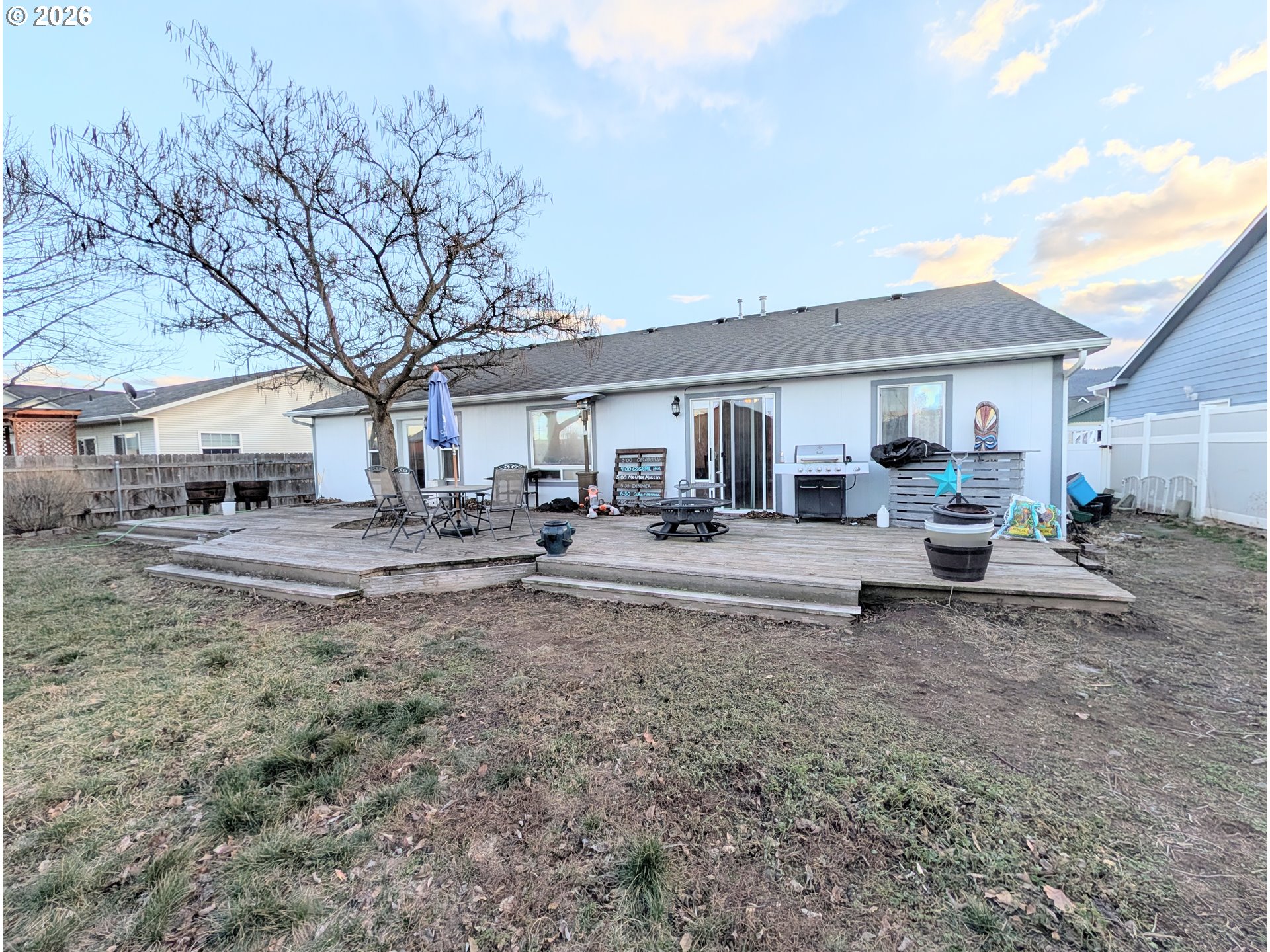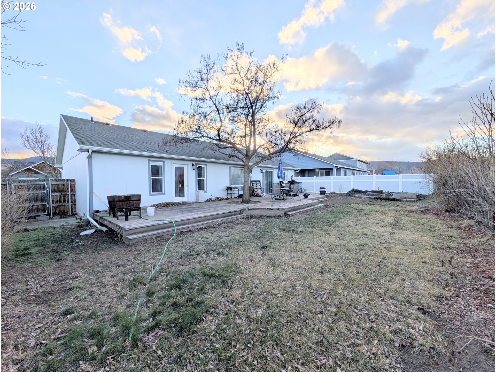 Conveniently located within Eagle Cap Estates, this 3 bedroom, 2 bathroom home is ready to be yours! With spacious common areas, this home features a vaulted ceiling living room, eat in dining area and kitchen with great storage options. Enjoy the newer kitchen appliances with washer and dryer included, plus a newer water heater. The master and en suite comes with a large closet and door leading to the back yard and deck. This property is fenced with an oversized back deck that is waiting for your vision to bring it back to full potential. Don't miss out on your opportunity for an Eagle Cap Estates home!