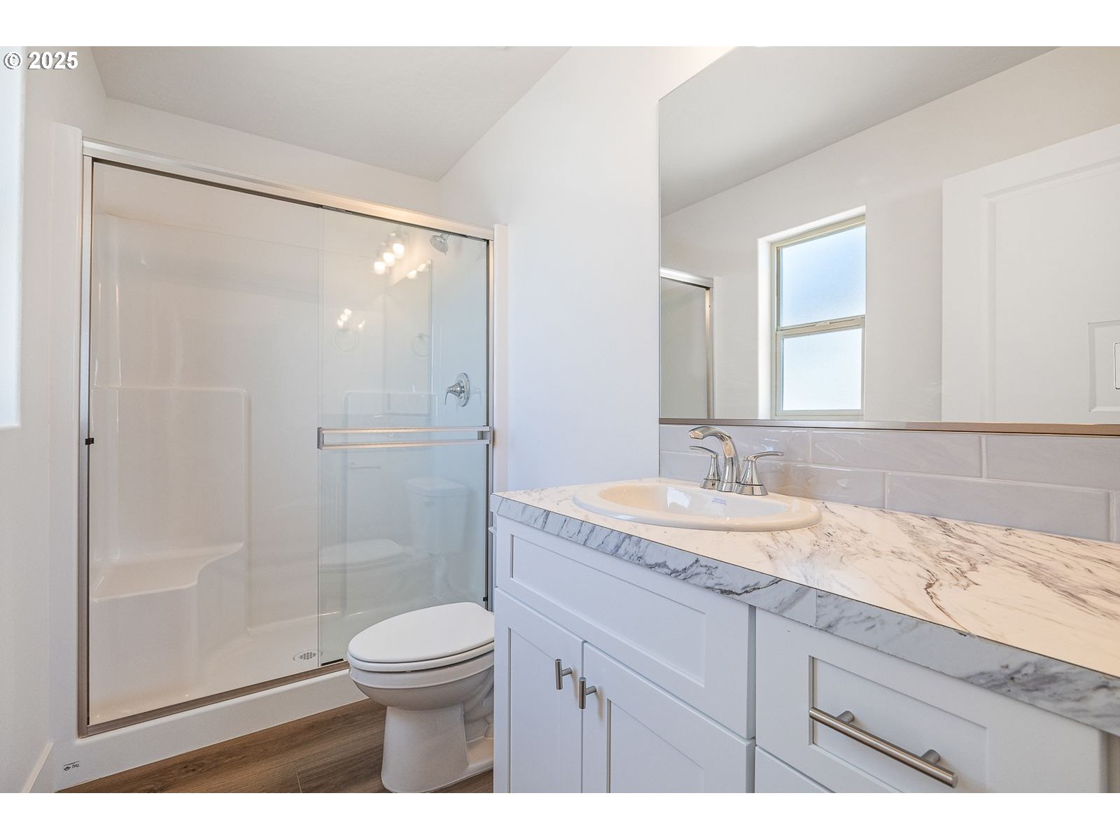 A beautiful Pro Made Home with Hardy Plank siding. The walkway leads you to the elegant front door. Entry foyer open to spacious great room with vaulted ceiling. Great room open to the kitchen and dining space. Kitchen includes stainless steel appliances, quartz countertops, quality cabinets with soft close doors and drawers, pantry, peninsula, upgraded to full height backsplash. Patio is great for entertaining and easy access to the yard with front yard UGS and landscape. Primary bedroom with access to en-suite with walk-in shower, vanity, and walk-in closet. Please visit our homes to see what we offer and what sets us apart from other builders in this price point. Exceptional Value; Uncompromised Quality.