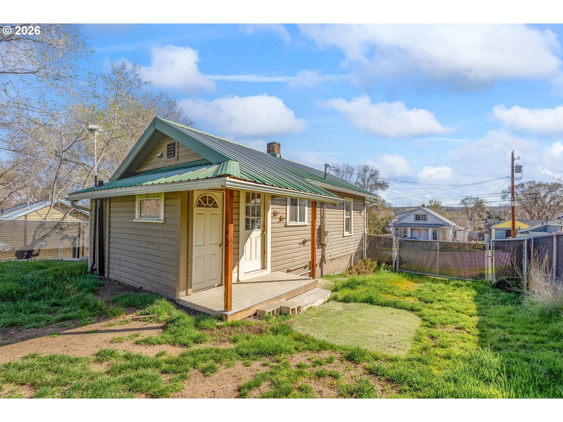 Tired of renting? Here's an affordable homeownership opportunity in Madras - perfect for first time buyers or investors. This charming 896 sqft home offers efficient living with appliances included and natural gas heating for comfort and efficiency. The property features a durable metal roof covered Trex front deck, storage shed, and a fully fenced yard - ideal for pets, gardening, or outdoor living. Located outside of the flood zone, this is a great opportunity to own in Madras and the perfect building block for your future.