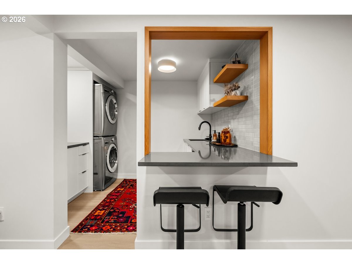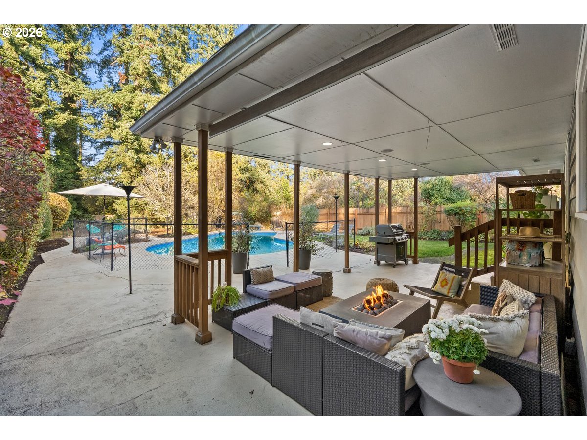 Epic mid-century entertainer’s dream with seamless indoor-outdoor living and views of the pool and lush garden from the main living spaces. Enter this beautifully updated home to an open floor plan with oak wood floors and a large slider out to your own private retreat. This home stands out with designer touches throughout, 2 fireplaces, an open kitchen with stainless steel appliances- a high-end Thermador gas range, Becco refrigerator and a peninsula.The jaw dropping finished lower level offers versatile living with potential for separate living area. This stunning space has a huge great room with a custom rug included, 2 bedrooms plus a gym with sliding doors. The full lower bathroom has radiant heated floors, a laundry shoot, double vanities, tile and tons of storage. The stylish laundry room doubles as a bar and entertaining space with Ann Sacks tile, beverage fridge, floating shelves, cup wash station and abundant storage. Additional features include built-in speakers, Nest thermostat, radon remediation system, washer/dryer included and updated main systems.Step outside to a private retreat on an oversized lot with a covered patio, in-ground saltwater pool, fire pit area, paver pathways, garden beds, and a charming “she-shed”/pottery studio that also houses pool equipment. Pool includes a top-of-the-line Hayward system with updated heater and filter. Side of the house has great covered storage area. This home has such a high level of care and updates, you will be hard pressed to find another. See full list of features.