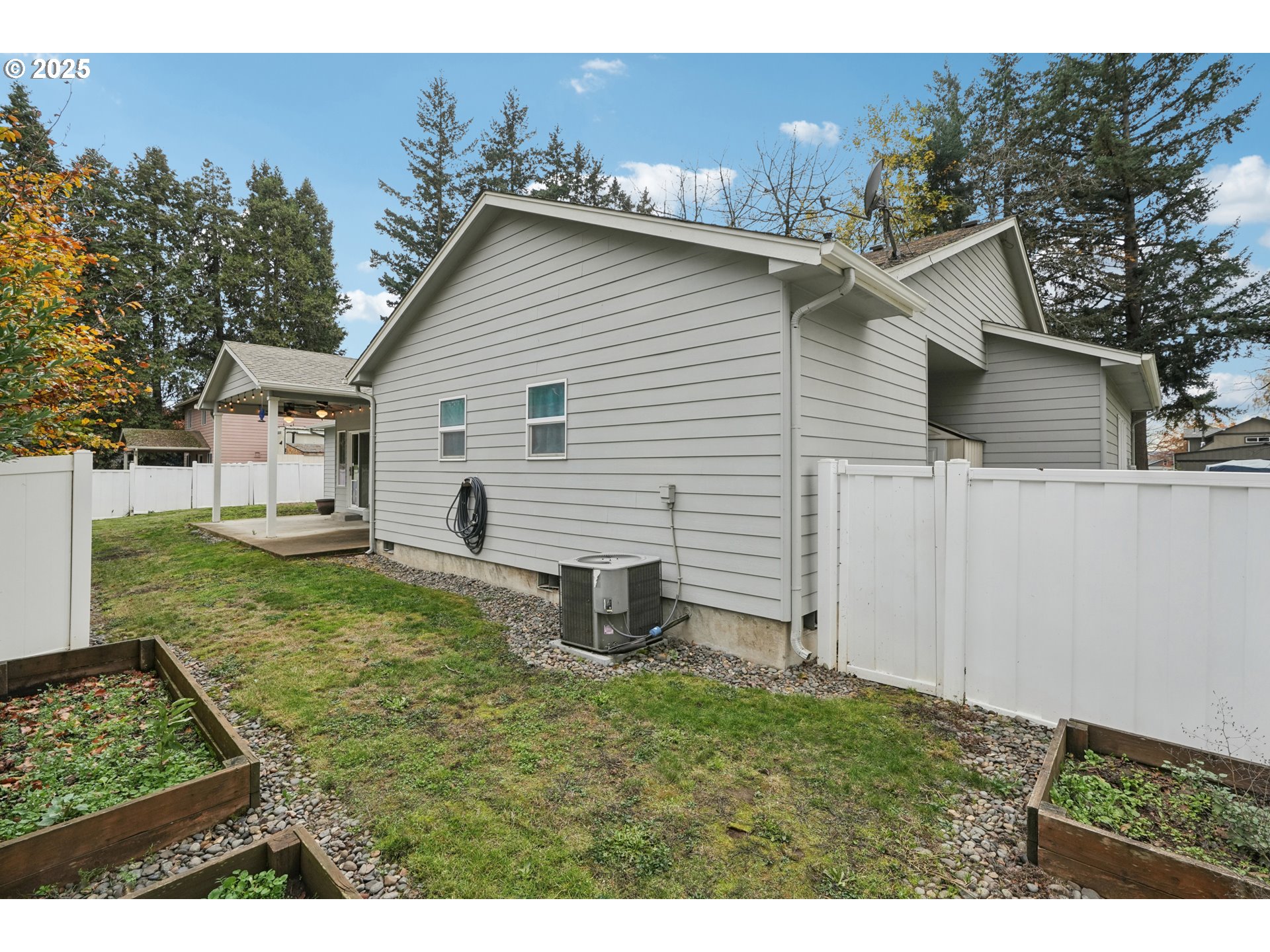 Nestled privately on a flag lot toward the end of a 300-foot paved drive, this serene setting offers ultimate privacy and safety and no through traffic, making it an ideal retreat. This custom-built Keizer home blends timeless craftsmanship with everyday comfort. Rich hardwood floors and soaring ceilings welcome you inside, where a chef’s kitchen features Corian countertops, built-in double ovens, a gas cooktop with downdraft, and a spacious walk-in pantry for effortless meal prep and storage. Two secondary bedrooms have private bathrooms with a shared tub/shower in a classic Jack and Jill style design—ideal for family or guests. The primary suite offers a cozy double-sided fireplace, spa-like soaking tub, oversized walk-in shower, and generous walk-in closet—a true retreat at day’s end. Year-round comfort is ensured with AC, two gas tankless water heaters, and double-pane vinyl windows. Step outside to a fully fenced backyard with a covered patio, raised flower beds, and a gas hookup perfect for outdoor gatherings. With no HOA and quality details like Hardieplank siding and gutter guards, this home invites you to settle in and savor the lifestyle you deserve. Don’t miss the chance to make this exceptional property yours.