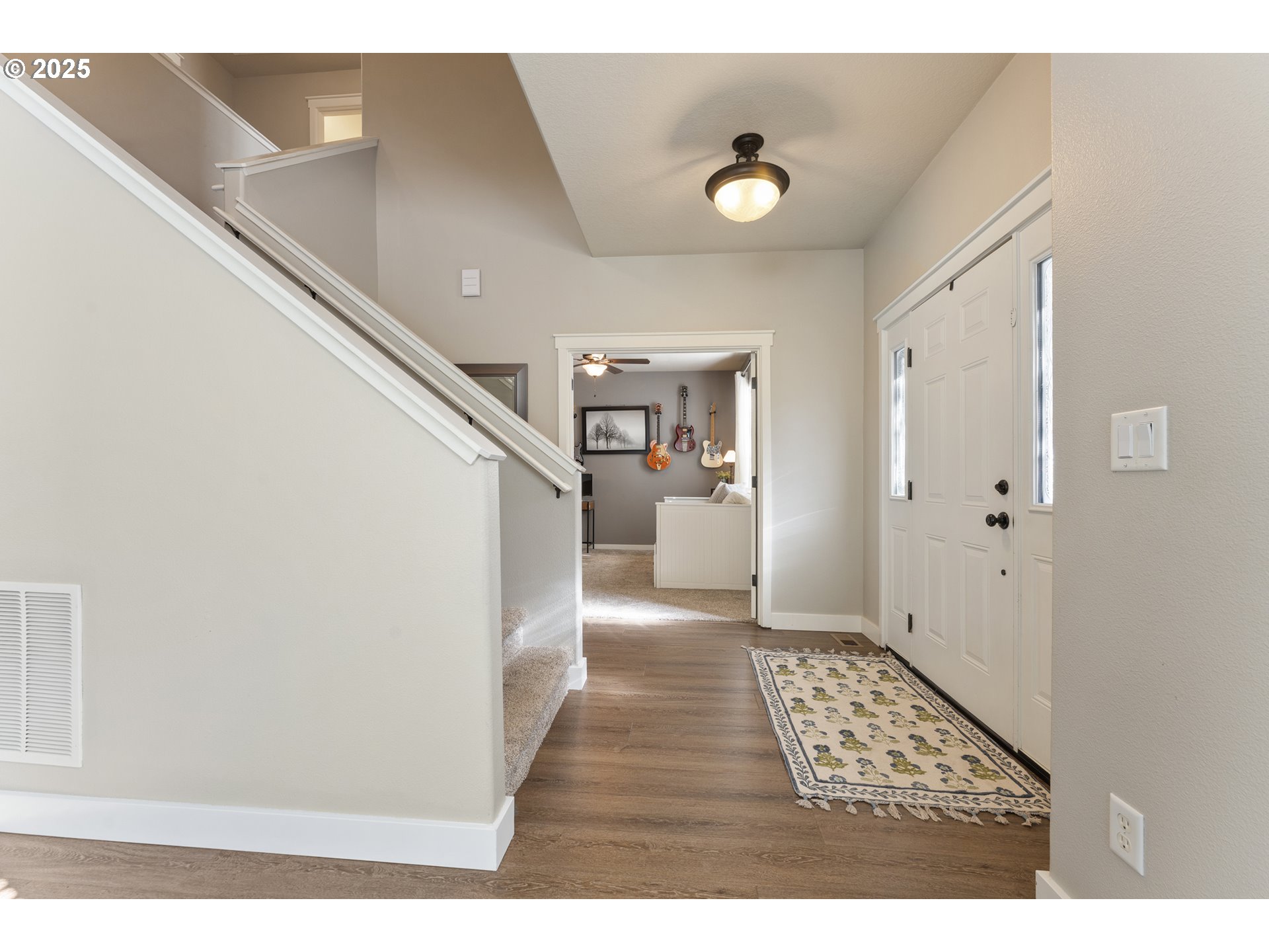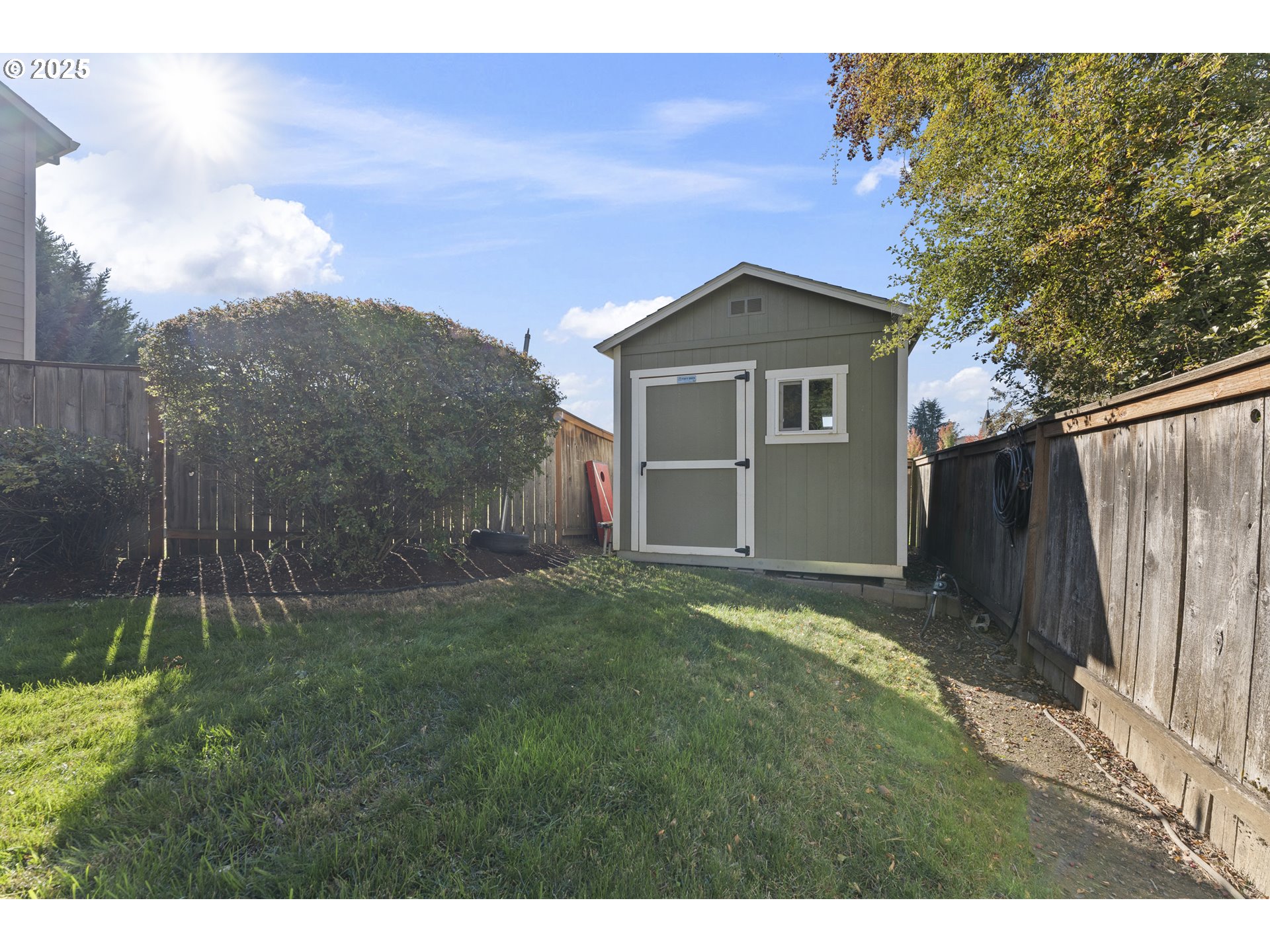 Tucked away in a peaceful cul-de-sac and just a short stroll from downtown Sherwood, this spacious 4-bedroom, 3-bathroom home offers light-filled living space in one of the city's most walkable and desirable neighborhoods.Step inside to discover wood floors, an open-concept layout, and a cozy double-sided gas fireplace that connects the separate living and family rooms. The large kitchen is a chef’s dream, featuring granite countertops, a corner window, stainless steel appliances, gas range, double oven, and a generous island—plus a walk-in pantry with direct access to the two-car garage.Ideal for multi-generational living or guests, the main level includes a bedroom and full bath. Upstairs, the expansive primary suite welcomes you with French doors, three closets (including a walk-in), and a luxurious en-suite bath with soaking tub, glass shower, and double vanity. Two additional bedrooms, a full bath, and a laundry room with sink complete the upper level. The home also offers ample storage throughout, including a spacious under-stairs closet and oversized bedroom closets. Outside, enjoy a fully fenced backyard with green grass, a covered patio, tool shed, and a versatile flex space perfect for a summer pool, garden beds, or play area. Enjoy unbeatable walkability to Sherwood’s charming downtown, the public library, local parks, top-rated schools, shops, and restaurants. Nestled in a quiet cul-de-sac, this home also offers easy access to nearby shopping centers with grocery stores, retail, and everyday essentials—making errands and outings a breeze. This home combines comfort, convenience, and flexibility—perfect for families, entertainers, or anyone looking to enjoy the best of Sherwood living. Schedule your showing today, this home is a must see!