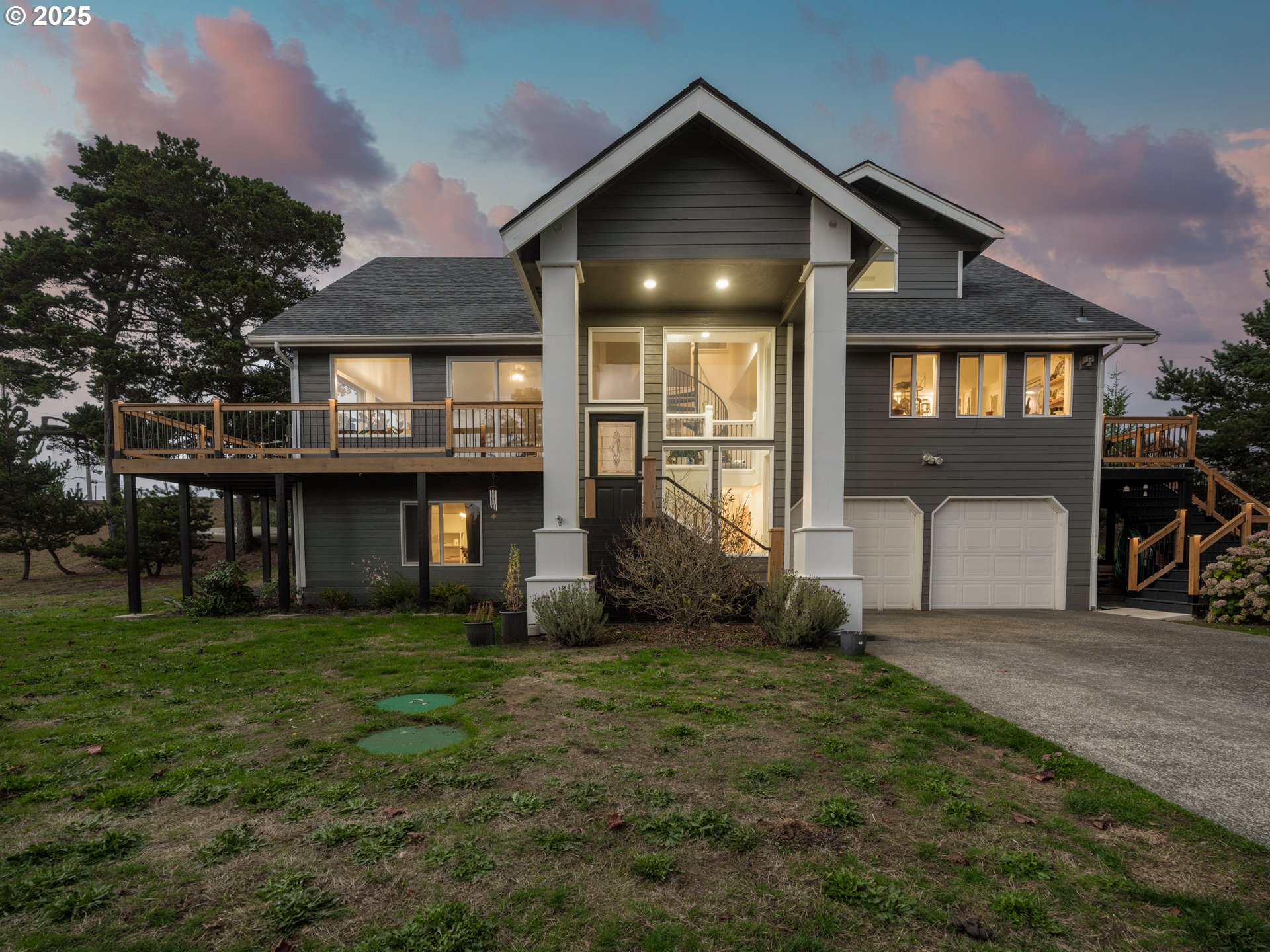 From HWY 101, W. on Sunset Beach Lane. Home is on Left (S. side of road) across from Golf Course.