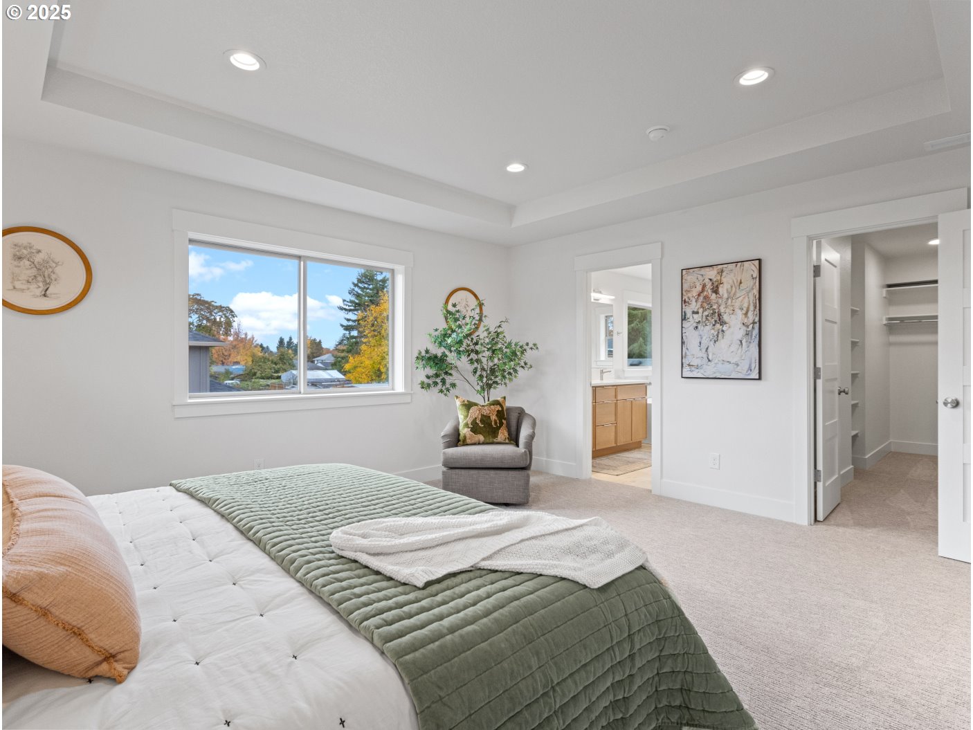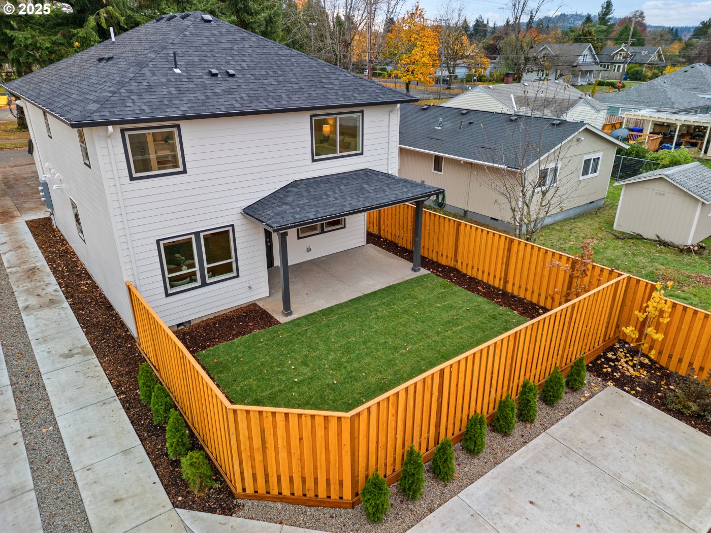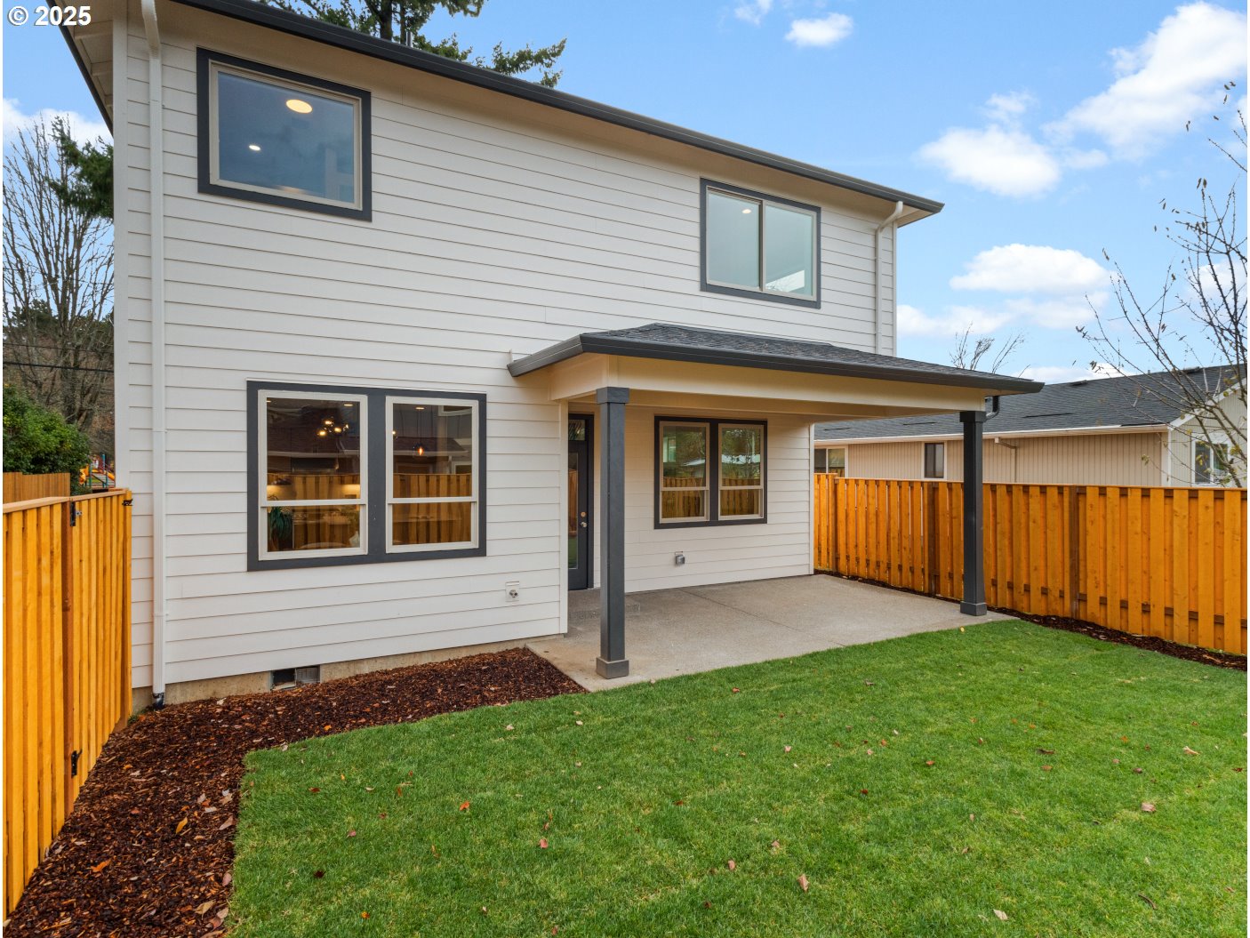 Prepare to be amazed by this stunning Pacific Northwest contemporary home. This remarkable new construction showcases an impressive open-concept layout—perfect for modern living. Thoughtfully designed to feel even larger than its 2,187 square feet, the home delivers both spaciousness and style. Every detail reflects the craftsmanship of a premier builder, with a custom kitchen, designer finishes and fixtures, engineered hardwood floors, exquisite tile work, and quartz counters throughout. High ceilings and an abundance of windows create a bright, airy atmosphere on both the main and upper levels. Entertaining is effortless here. The natural flow from the living and dining areas to the large covered patio, and the fully fenced backyard beyond, makes the entire main level ideal for gatherings year-round. Upstairs, the primary suite features a deep walk-in closet and a luxurious bathroom with a soaking tub, dual vanity, and beautifully tiled walk-in shower. The two front bedrooms have a serene, treehouse-like feel, with windows that look out toward a magnificent Douglas fir and the always-inviting Essex Park. A fourth bedroom on the main level provides a perfect space for a home office or guest room. On the practical side, the home’s exceptional energy efficiency—earning a 10/10 Home Energy Score—means lower utility costs and a lighter environmental footprint. While it’s part of a three-home condo community, it lives like a fee-simple home. The small HOA covers a shared insurance policy, annual filings, and tax preparation, with no costly maintenance reserves or restrictive rules. And the location? Simply outstanding. Enjoy a Walk Score of 83 and a Bike Score of 99, in a peaceful SE Portland neighborhood known for its convenience and livability.