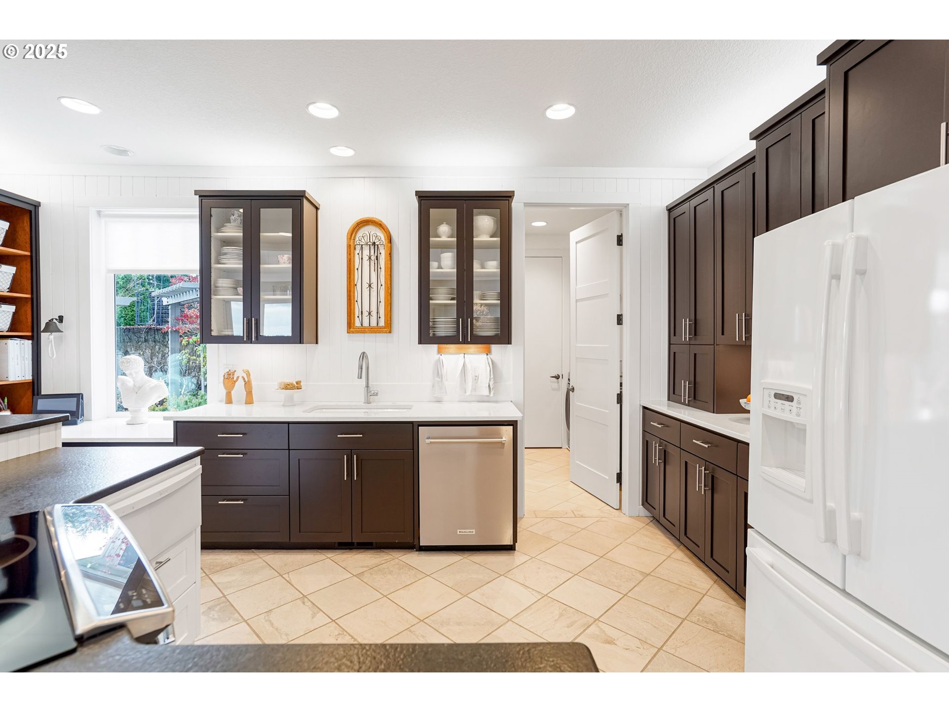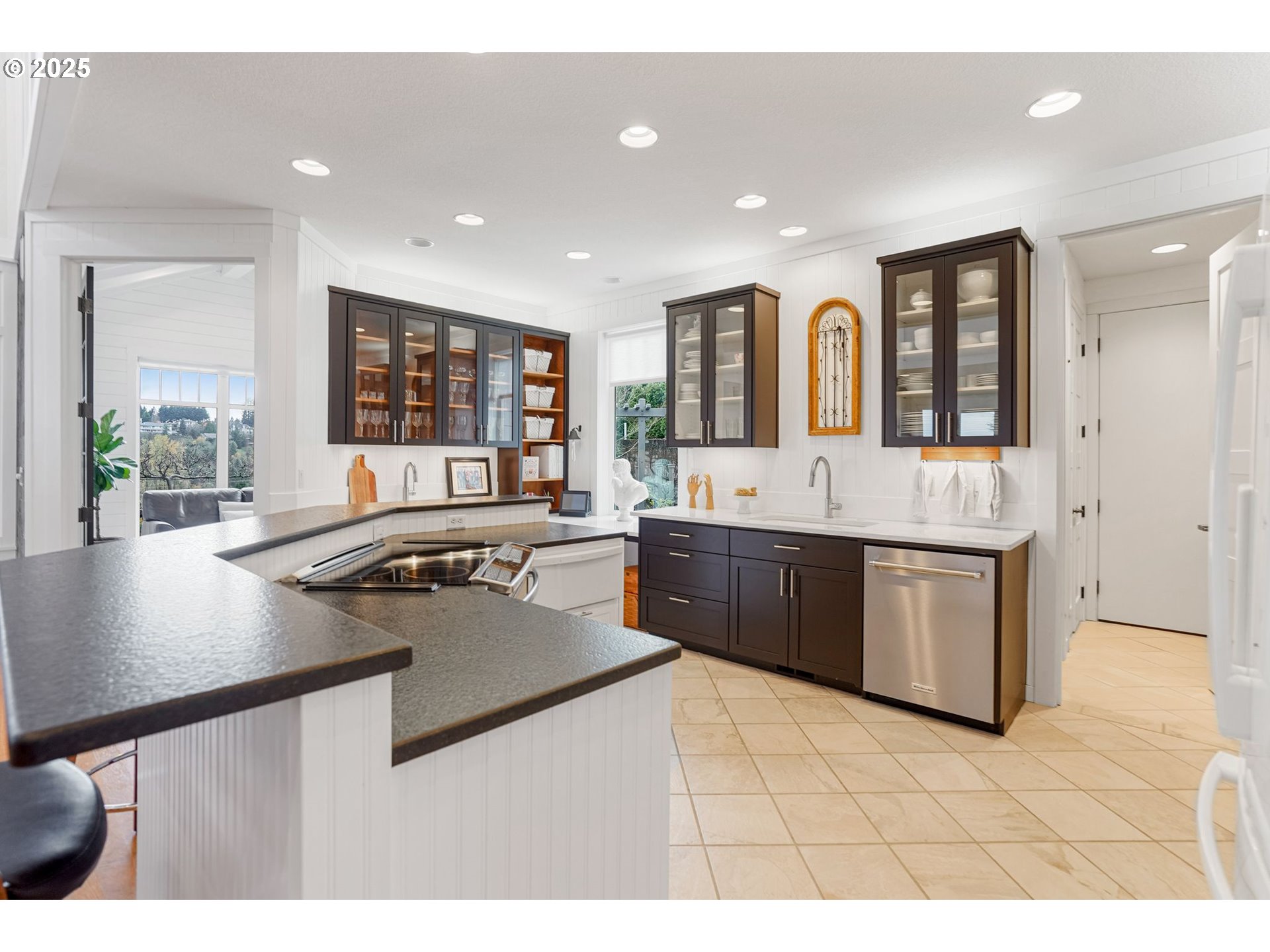 Welcome to this rare single-level gem in the highly sought-after Creekside community, perfectly positioned to capture breathtaking views of the golf course, hillside, and majestic Mt. Jefferson. This thoughtfully updated home blends timeless comfort with modern upgrades and a serene, park-like setting. Home Highlights: Open-concept layout with soaring two-story clerestory that fills the living spaces with natural light. The great hall and living room were beautifully updated in 2017. Modernized gourmet kitchen featuring tile flooring, extra prep sink, warming drawer, induction range, microwave, and dishwasher. Bathrooms remodeled with cabinets, fixtures, and elegant tile flooring. Bedrooms and library refreshed with new hardwood flooring. New exterior upgrades, including all siding, skylights, and roof. Extensive landscaping improvements. Step outside to your private retreat, designed for relaxation and entertaining: Peaceful water features and stone walls in front and back. Mature landscaping that provides color and privacy year-round. A mini orchard with apple, pear, plum, cherry, and grape varieties, plus blueberry bushes. Beautiful stone garden boxes and expansive paver walkways ideal for outdoor dining or quiet reflection. Additional Features: Deep two-car garage with attic storage. Ample built-in storage throughout. Large Walk-in pantry. Private setting within a prestigious golf community. Enjoy the perfect combination of comfort, quality, and tranquility—a true showcase of pride of ownership and refined living.