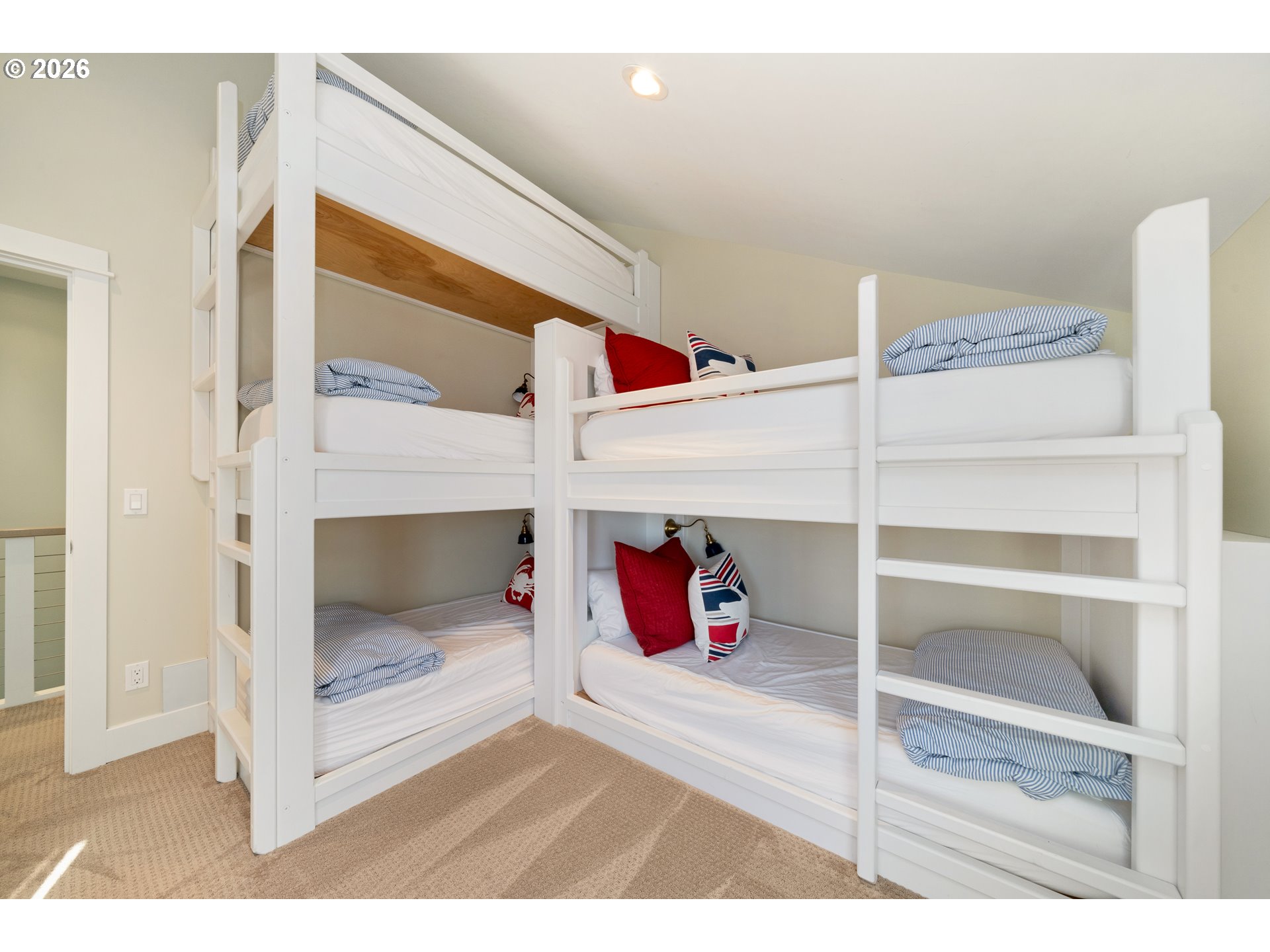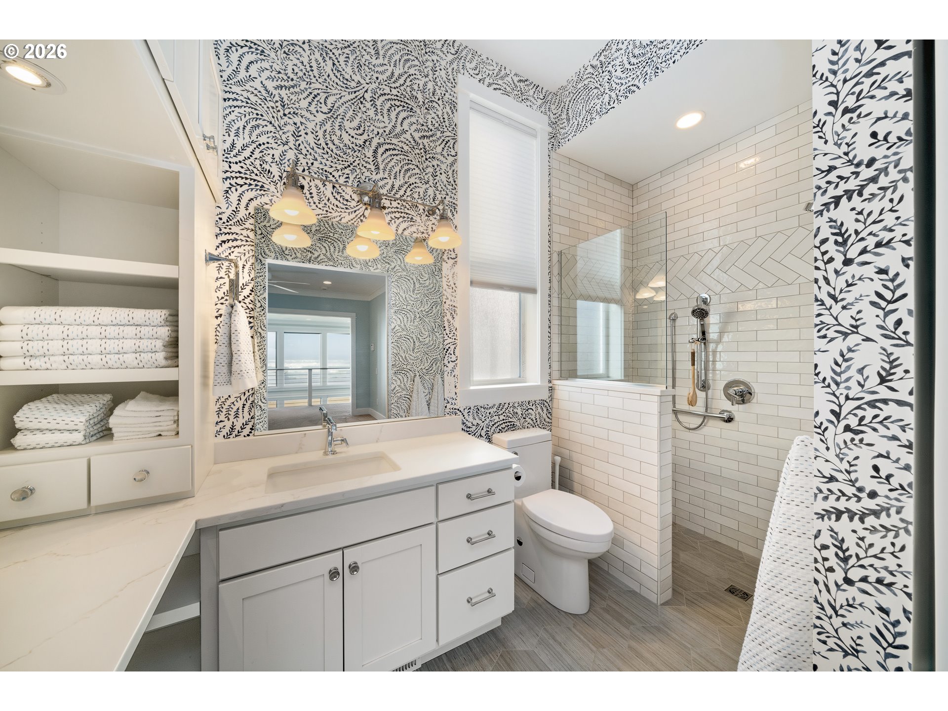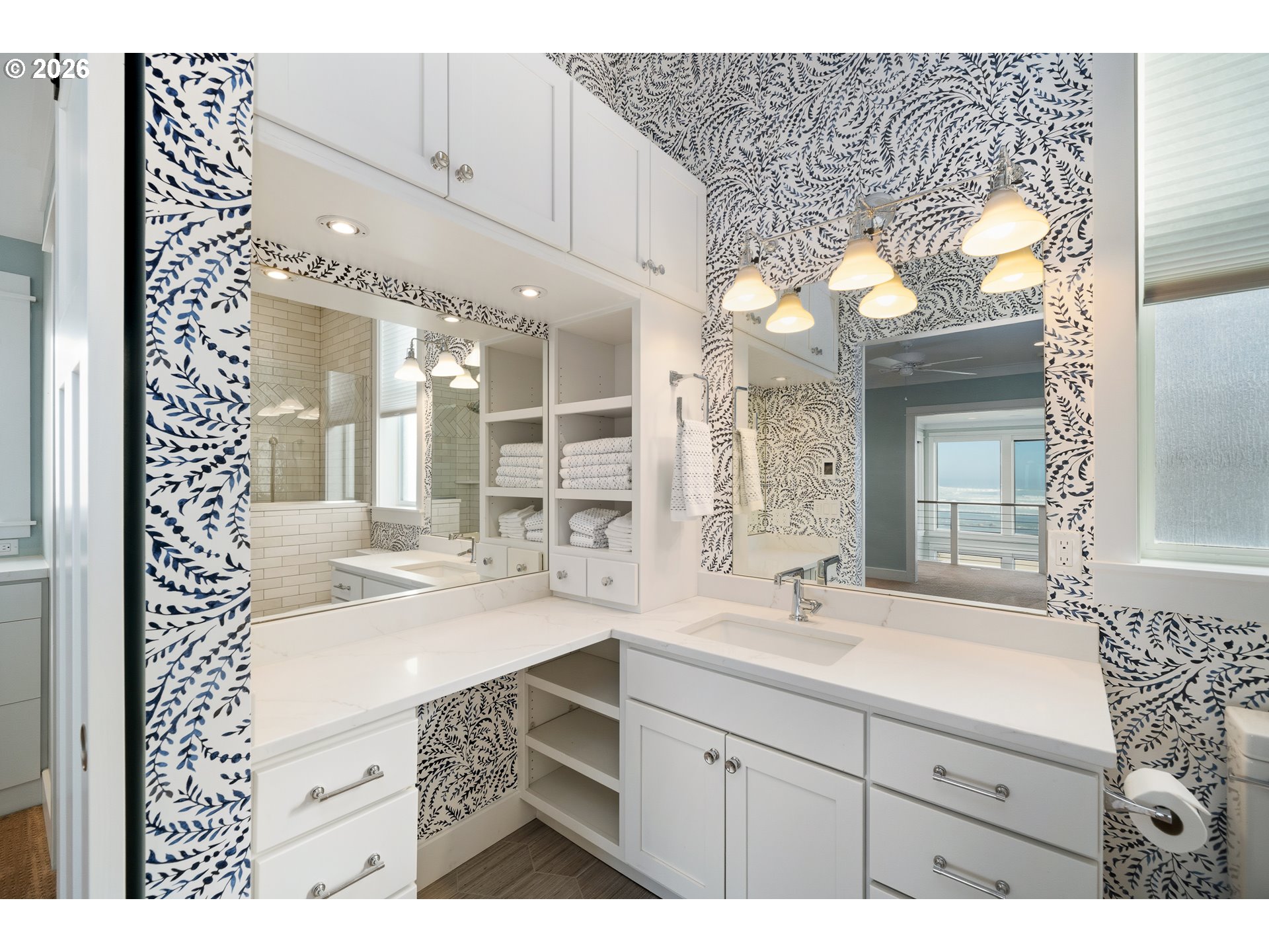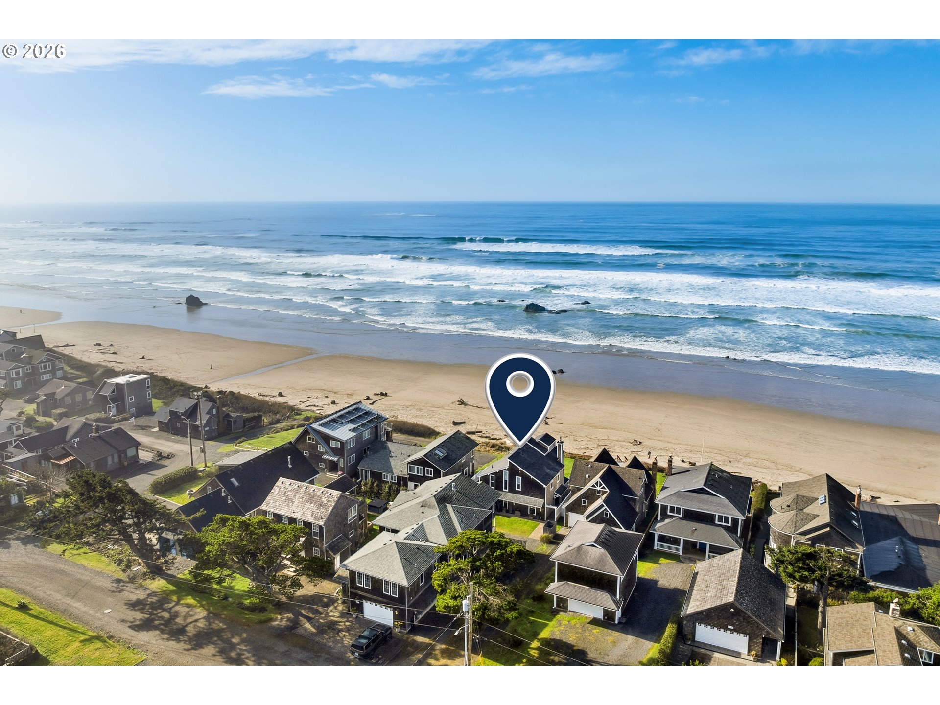 Experience oceanfront living from this spectacular Pacific NW coastal home, where timeless craftsmanship meets seaside serenity. This 4bd/3.5bth retreat welcomes you w/a wall of oceanfront windows, bathing the livingroom in natural light. A cozy gas fireplace & shiplap cailings add charm & warmth. Enjoy 2 primary en-suites -1 conveniently located on the main floor; there's a playful bunkroom perfect for little ones & plenty of extra guests. Spa inspired baths feature walk-in showers, soaking tub & heated tile floors. Quality millwork & crown molding, custom cabinetry, high-end appliances, granite countertops, tile backsplash, vintage style lighting fixtures, wide plank wood floors that evoke classic coastal elegance. Closets w/built-ins & mudroom provide beauty & function. The 2nd level loft overlooking livingroom & 3rd level bonus den offer flexible living & retreat spaces. Step outside on to the viewing deck, spacious paver patio or lush lawn w/private beach access. This home is a stunning expression of Pacific NW beachfront living -crafted with comfort, quality & spectacular views!