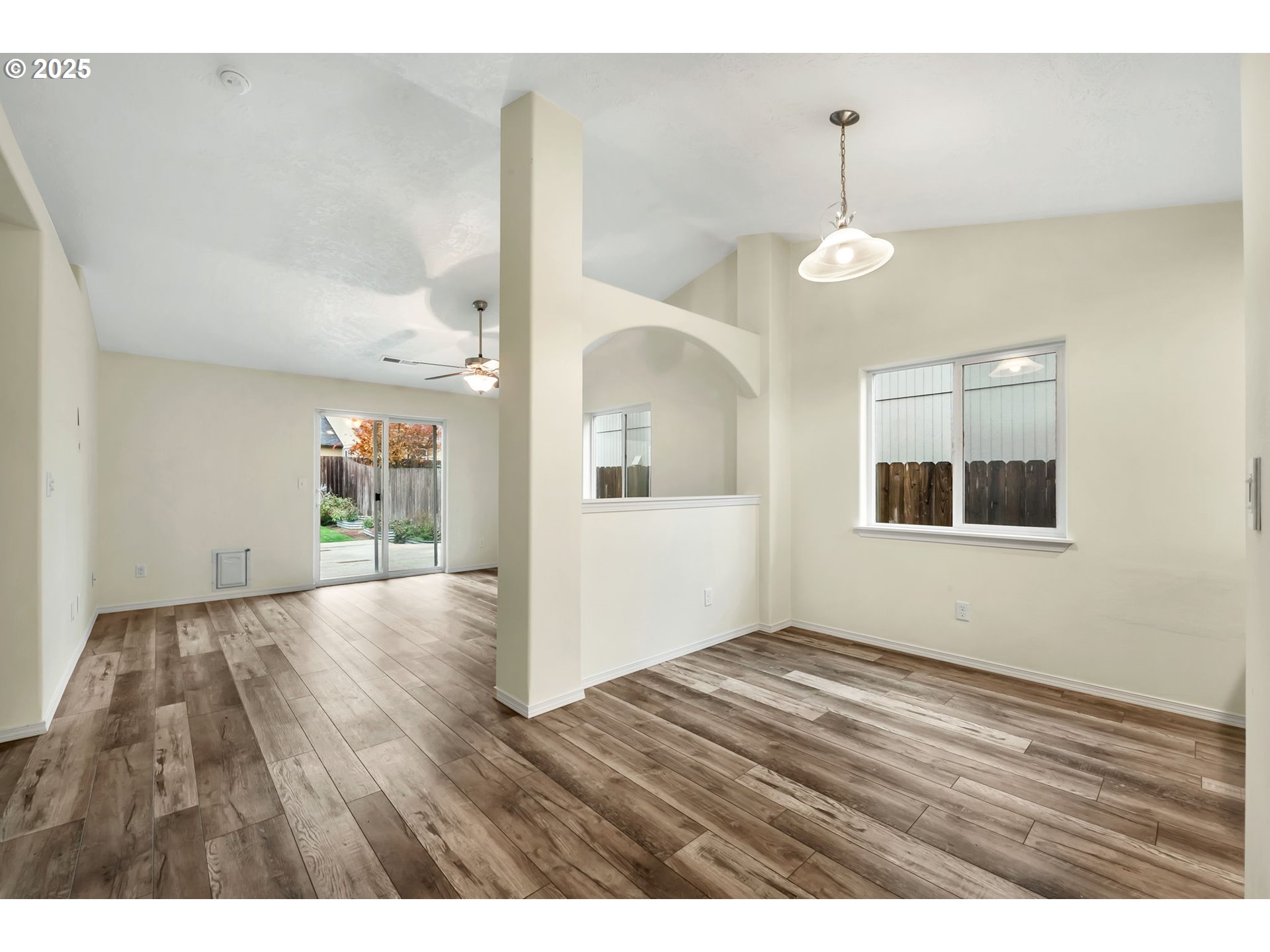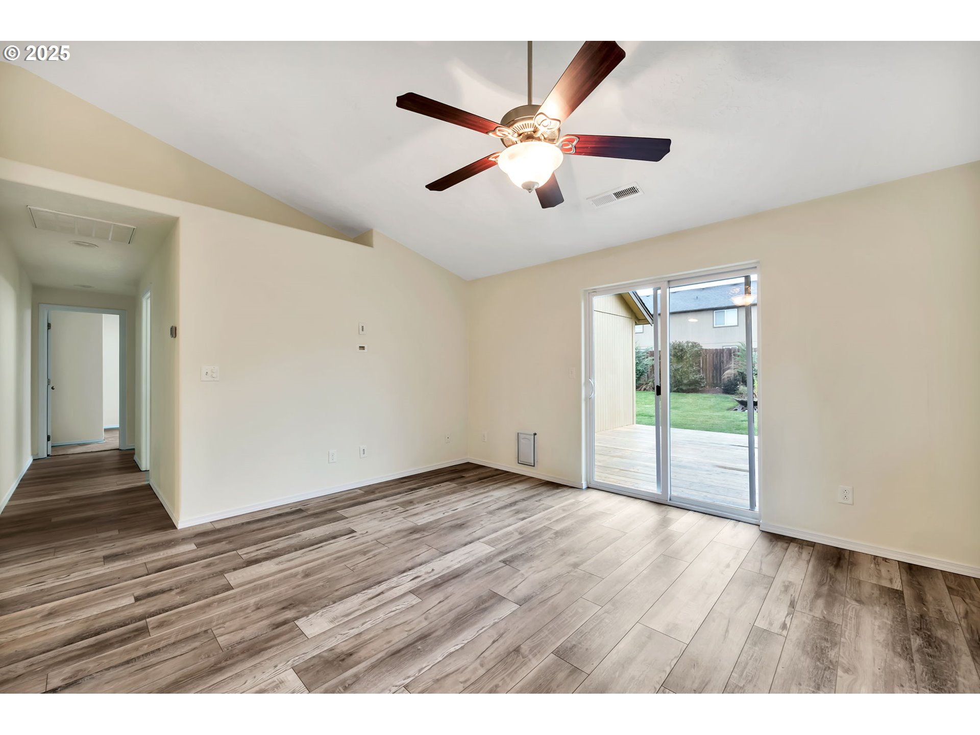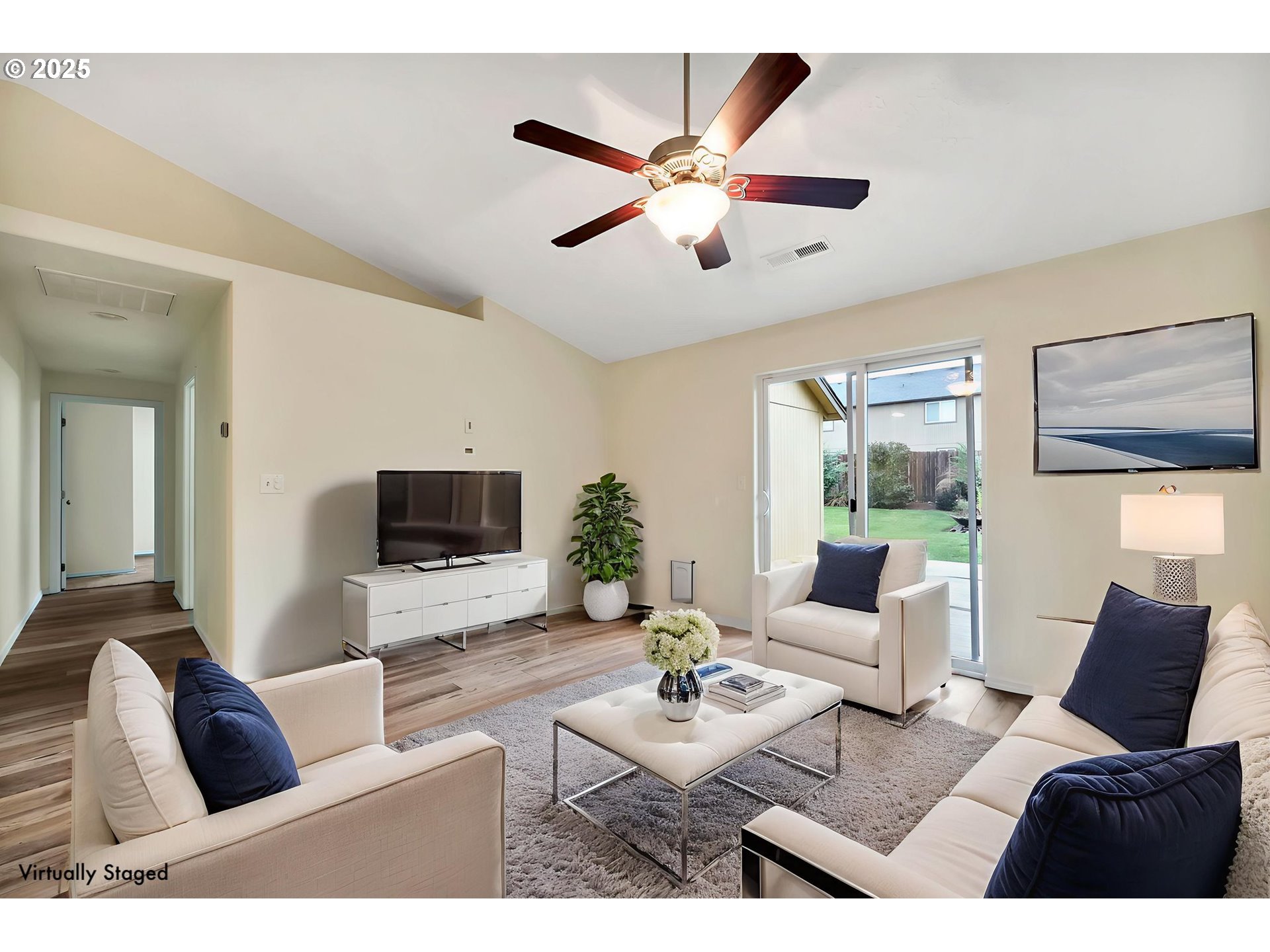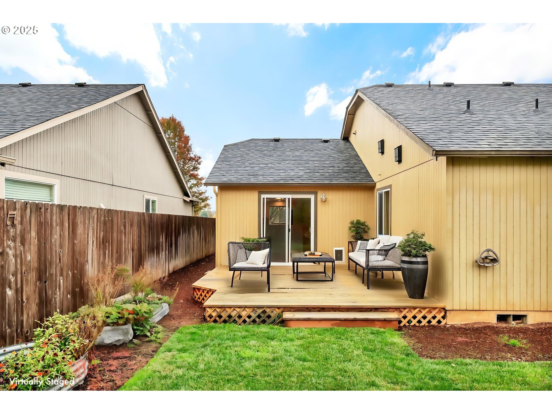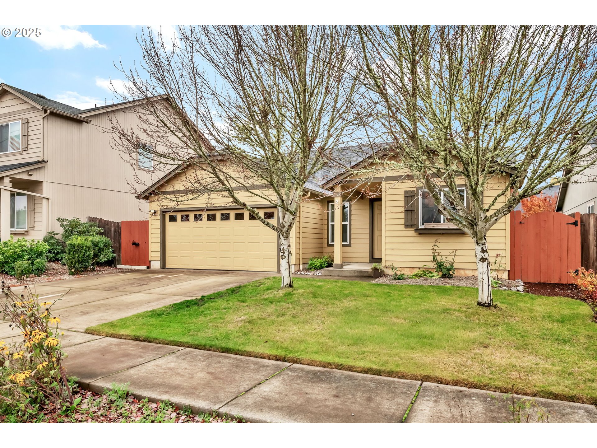 Welcome to this beautifully maintained 3 Bedroom, 2 bathroom home offering 1,304 sq ft. in Veneta! This home built in 2014 is inviting & comfortable from the moment you step in. You'll love the open layout, vaulted ceilings, and abundant natural light. The main living areas feature LVP flooring that flows seamlessly throughout the dining, living room and hallways. The spacious primary suite offers a walk-in closet and the primary bathroom is complete with dual sinks and additional storage. Two additional rooms & guest bath round out the fantastic floor plan. Separate laundry area leads to the 2 gar garage. Step out your sliding glass door from the living room on to your own deck, fenced backyard, beautiful landscaping & plenty of gardening space. Schedule to view this turn-key home today!