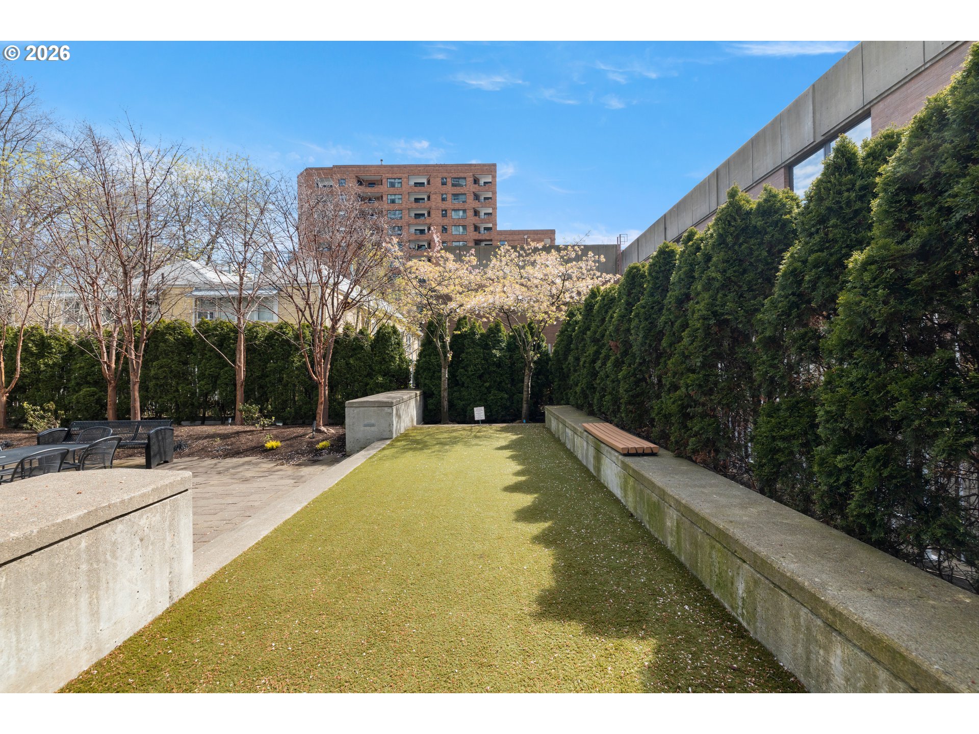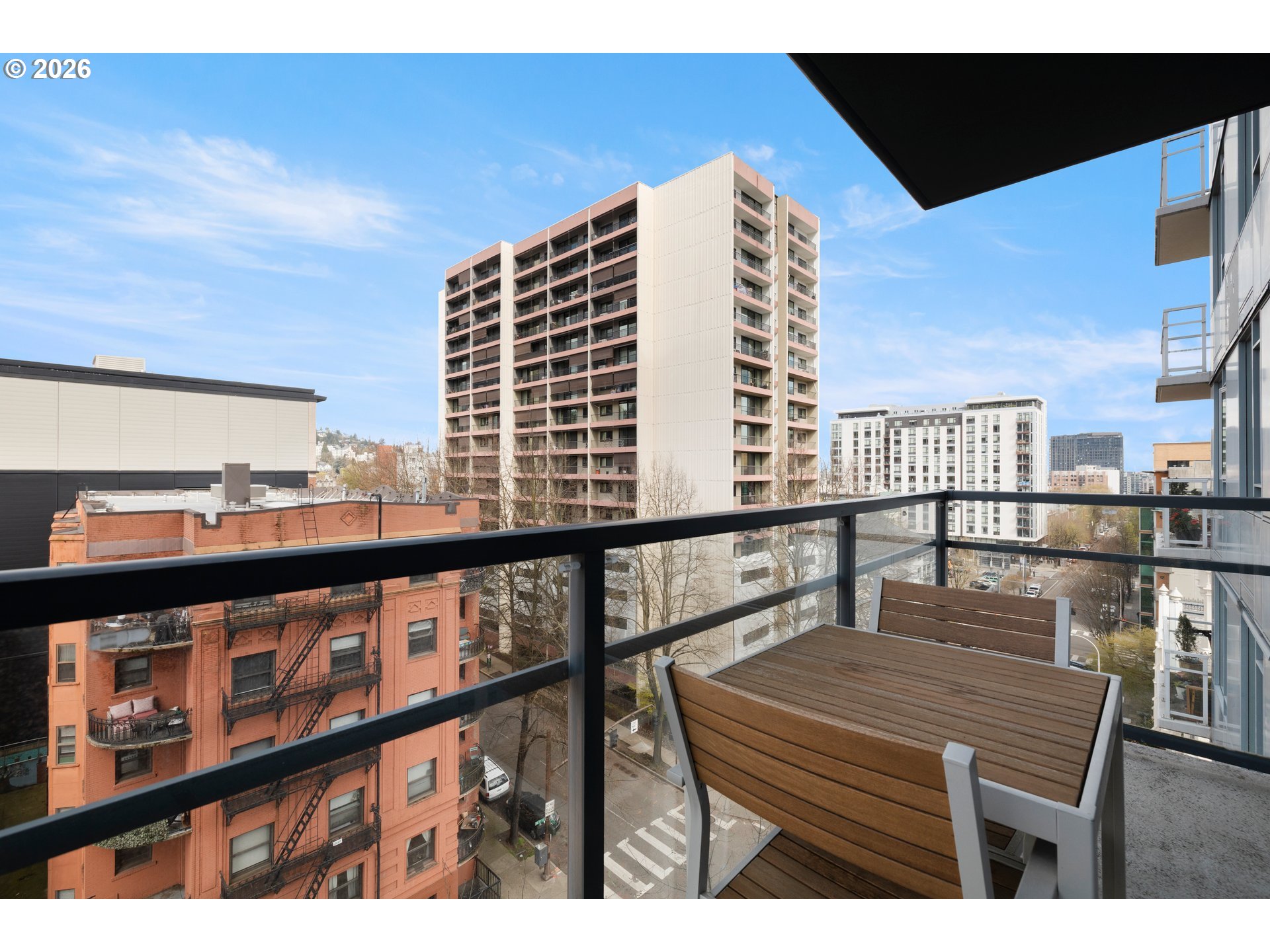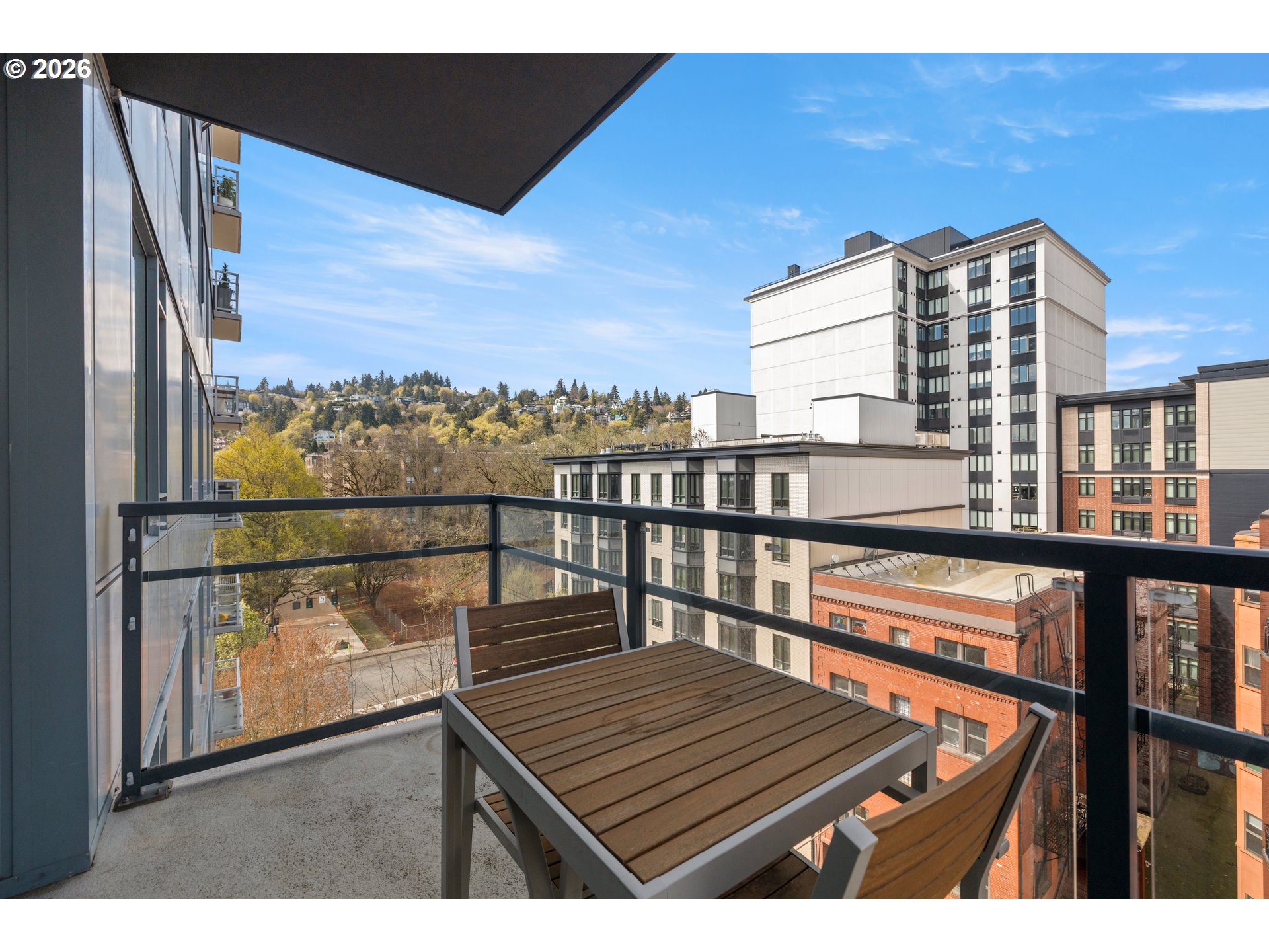 Step into this stylish 2-bedroom, 2-bath modern condo that perfectly blends form and function. The intelligently designed layout makes excellent use of every inch, creating a comfortable, peaceful, and efficient living space right in the heart of downtown Portland. Take in city views from your balcony—elevated above the street for a quieter, more relaxing atmosphere, whether you're sipping your morning coffee or winding down at the end of the day. The home is equipped with a new stainless steel refrigerator (2023) and a newer dishwasher (2021), ensuring everyday convenience. Situated in the lively Cultural District, this location puts you just moments from Portland State University and the popular Farmers Market—offering the perfect balance of energy and accessibility. Inside, the condo features attractive hardwood flooring, granite surfaces, generous cabinet space, and sleek built-in stainless steel appliances. Large west-facing windows bring in abundant natural light, while AC helps maintain a comfortable interior temperature in the afternoons. The unit also includes a deeded parking spot right next to the deeded storage unit. Residents of Benson Tower enjoy a wide array of amenities, including an elegant lobby, fitness center, resident lounge, dog run, hot tub, heated outdoor patio, and a tranquil courtyard. With an impressive Walk Score of 98, plus the Portland Streetcar right outside and MAX light rail just a few blocks away, getting around the city is effortless. You’ll be close to top destinations like the Schnitz, Keller Auditorium, NW 23rd Avenue, a vibrant dining scene, theaters, the airport, and scenic Waterfront. Outdoor enthusiasts will appreciate three nearby access points to Forest Park within a mile, and commuters will benefit from easy freeway access to Nike and Intel. Don’t miss the opportunity to own a standout home in one of Portland’s most desirable neighborhoods—schedule your showing today!