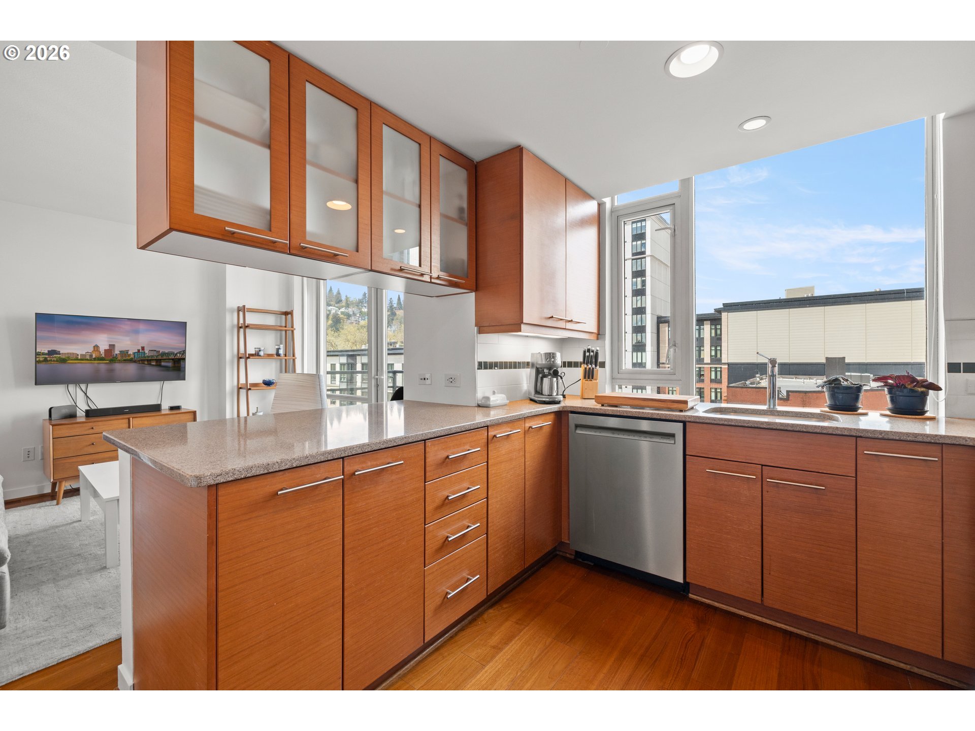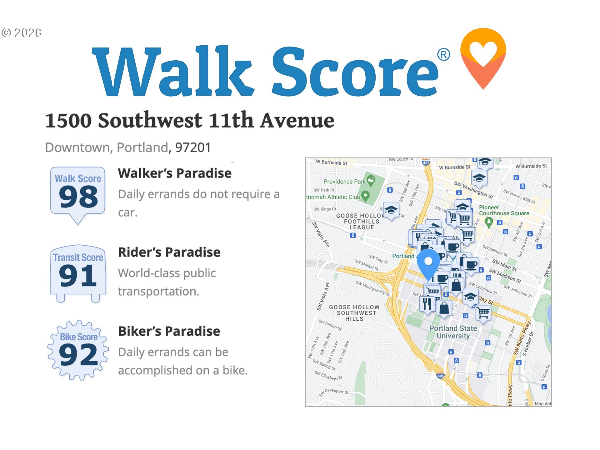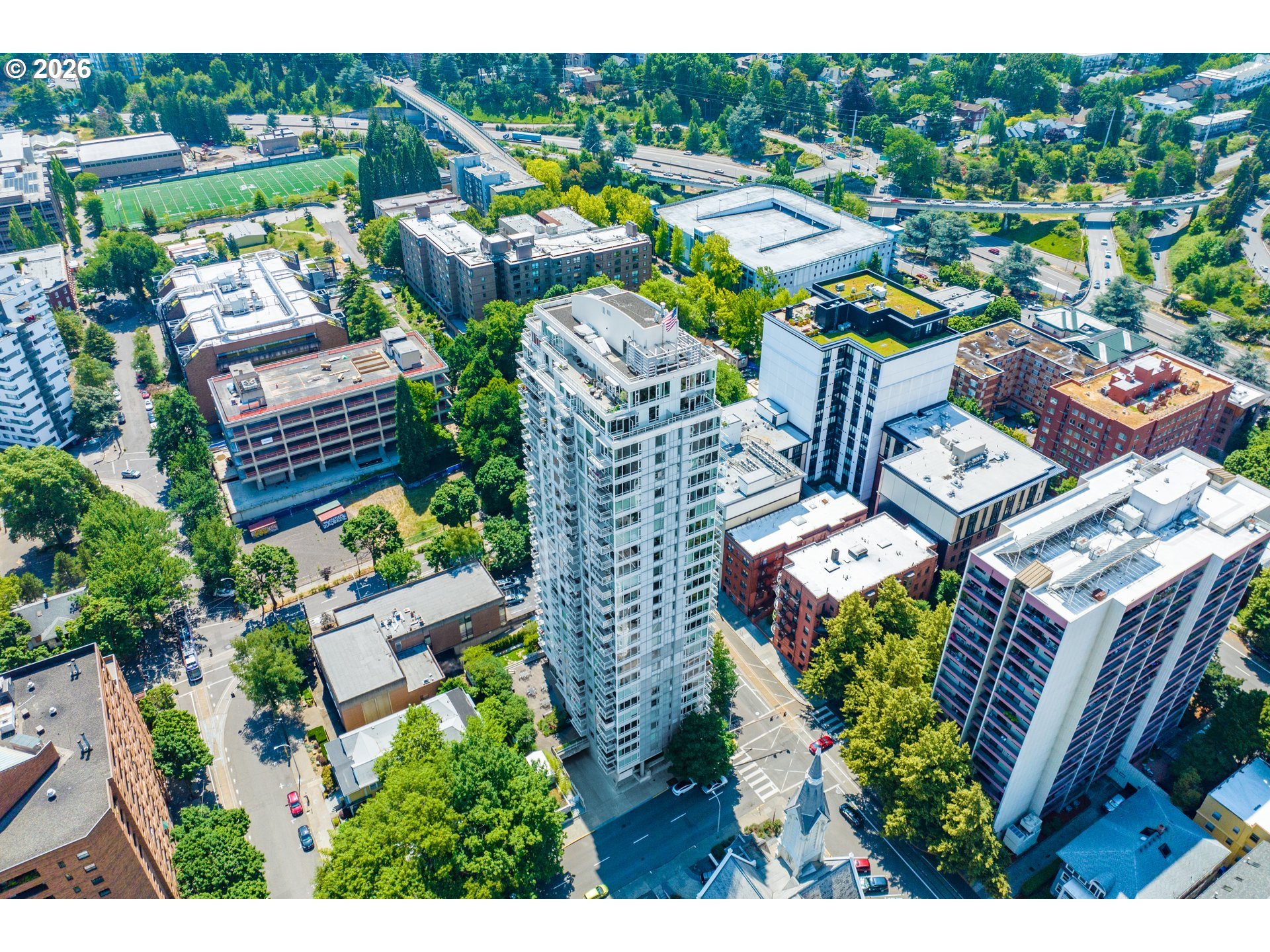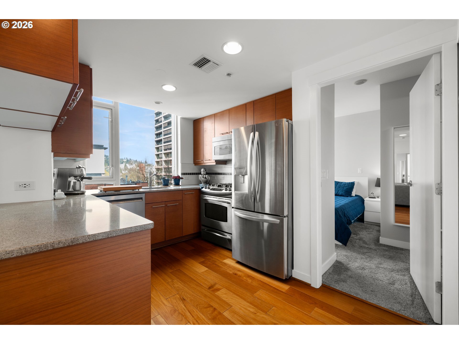 Step into this stylish 2-bedroom, 2-bath modern condo that perfectly blends form and function. The intelligently designed layout makes excellent use of every inch, creating a comfortable, peaceful, and efficient living space right in the heart of downtown Portland. Take in city views from your balcony—elevated above the street for a quieter, more relaxing atmosphere, whether you're sipping your morning coffee or winding down at the end of the day. The home is equipped with a new stainless steel refrigerator (2023) and a newer dishwasher (2021), ensuring everyday convenience. Situated in the lively Cultural District, this location puts you just moments from Portland State University and the popular Farmers Market—offering the perfect balance of energy and accessibility. Inside, the condo features attractive hardwood flooring, granite surfaces, generous cabinet space, and sleek built-in stainless steel appliances. Large west-facing windows bring in abundant natural light, while AC helps maintain a comfortable interior temperature in the afternoons. The unit also includes a deeded parking spot right next to the deeded storage unit. Residents of Benson Tower enjoy a wide array of amenities, including an elegant lobby, fitness center, resident lounge, dog run, hot tub, heated outdoor patio, and a tranquil courtyard. With an impressive Walk Score of 98, plus the Portland Streetcar right outside and MAX light rail just a few blocks away, getting around the city is effortless. You’ll be close to top destinations like the Schnitz, Keller Auditorium, NW 23rd Avenue, a vibrant dining scene, theaters, the airport, and scenic Waterfront. Outdoor enthusiasts will appreciate three nearby access points to Forest Park within a mile, and commuters will benefit from easy freeway access to Nike and Intel. Don’t miss the opportunity to own a standout home in one of Portland’s most desirable neighborhoods—schedule your showing today!