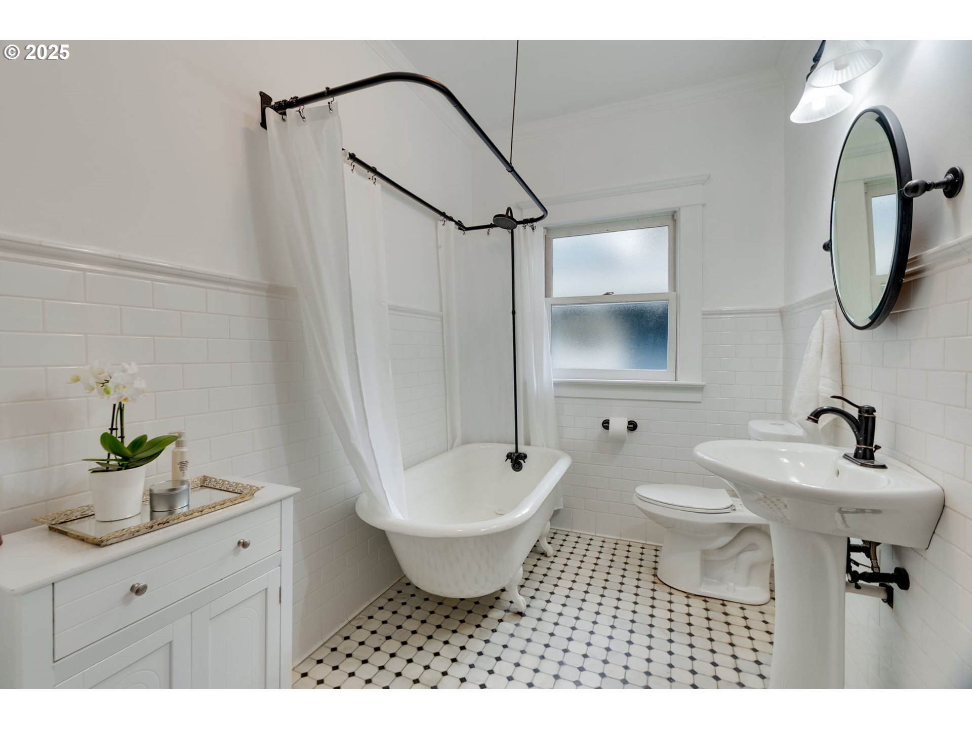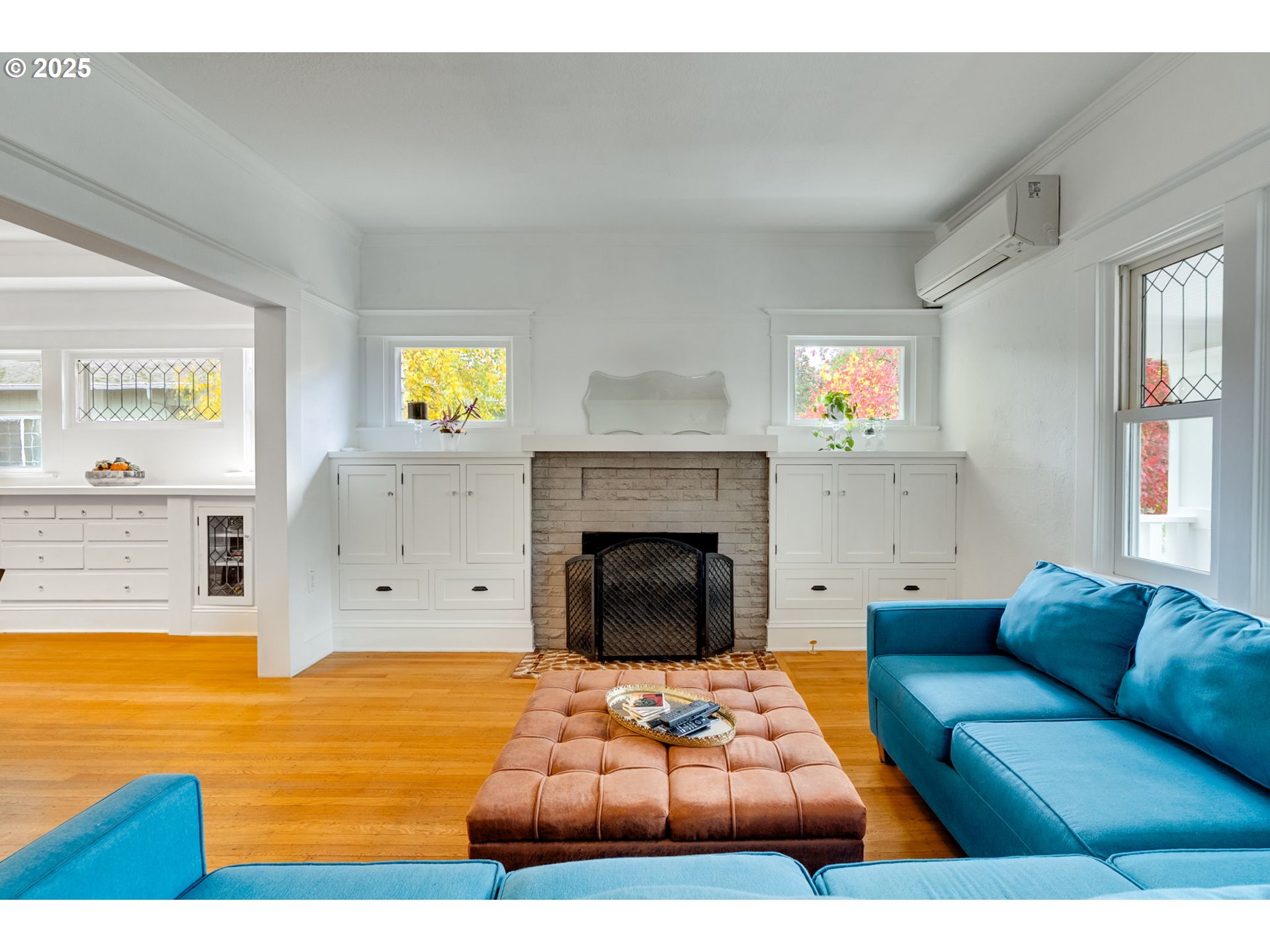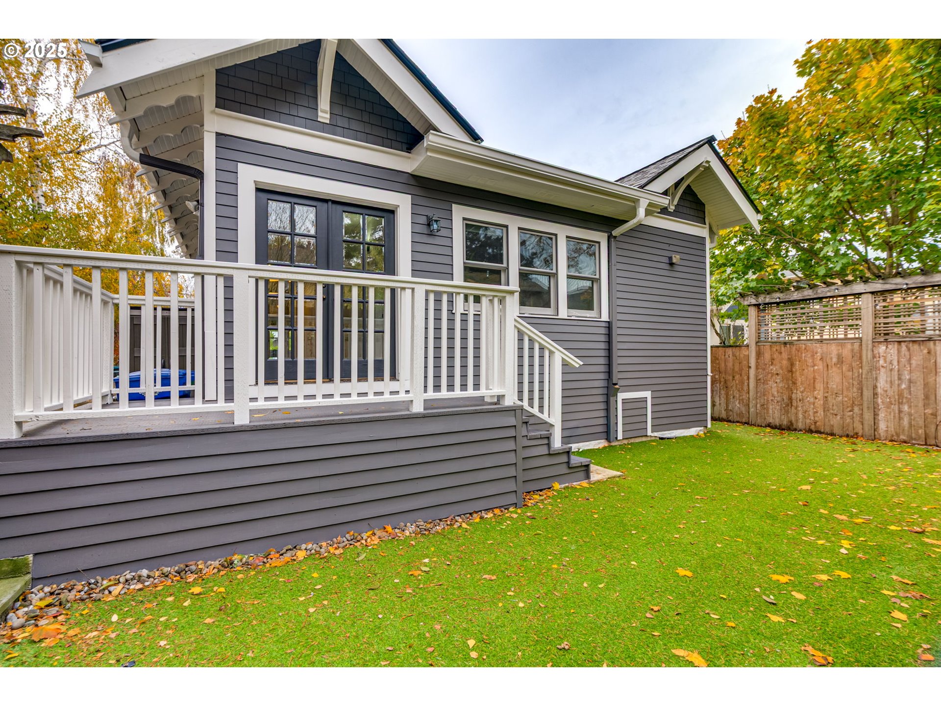Welcome to this classic Craftsman in the heart of Hawthorne, complete with a broad, welcoming front porch perfect for watching sunsets, greeting neighbors, and enjoying the rhythm of the neighborhood. Light-filled and spacious, the home features four bedrooms and two full baths, with beautiful original details throughout. Wood floors, a fireplace framed by built-ins, crown molding, picture rail, and an elegant dining room highlighted by wainscoting and an impressive leaded-glass built-in hutch bring timeless character to the living spaces. The circular floor plan flows easily from room to room. The hall bath showcases a clawfoot tub, pedestal sink, and period tile. The main-floor primary suite offers a full wall of built-in closet storage and a luxurious ensuite bathroom with a large custom walk-in shower. Main-level laundry adds everyday convenience. Upstairs, you’ll find the fourth bedroom plus an airy bonus space with great ceiling height and abundant light, ideal for a family room, studio, playroom, or creative workspace. The basement offers even more flexibility: half finished with a bonus room and lounge/rec area, and half unfinished with excellent storage and custom barn door access to the front courtyard- perfect for bikes, gear, and easy loading. There is potential for future development here as a second living area if desired. The fully fenced backyard features eco-friendly, low-maintenance “frass” turf—always green, no watering or mowing. Recent updates include a new roof (2020), new water heater (2022), mini-split heating and cooling for room-by-room comfort, fresh exterior paint (2025), and interior paint throughout. All of this is just steps from Hawthorne’s best cafés, restaurants, shopping, and groceries. With a Walk Score of 95 and a Bike Score of 100, daily life can be delightfully car-free. Minutes to Mt. Tabor’s 200 acres of trails and views. Classic charm, thoughtful updates, and unbeatable location— this is Portland living at it's best! [Home Energy Score = 5. HES Report at https://rpt.greenbuildingregistry.com/hes/OR10242608]