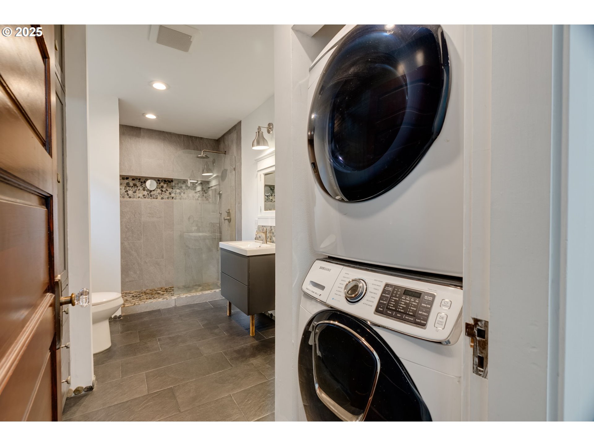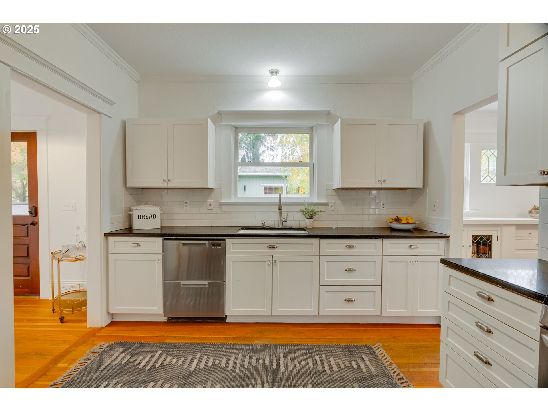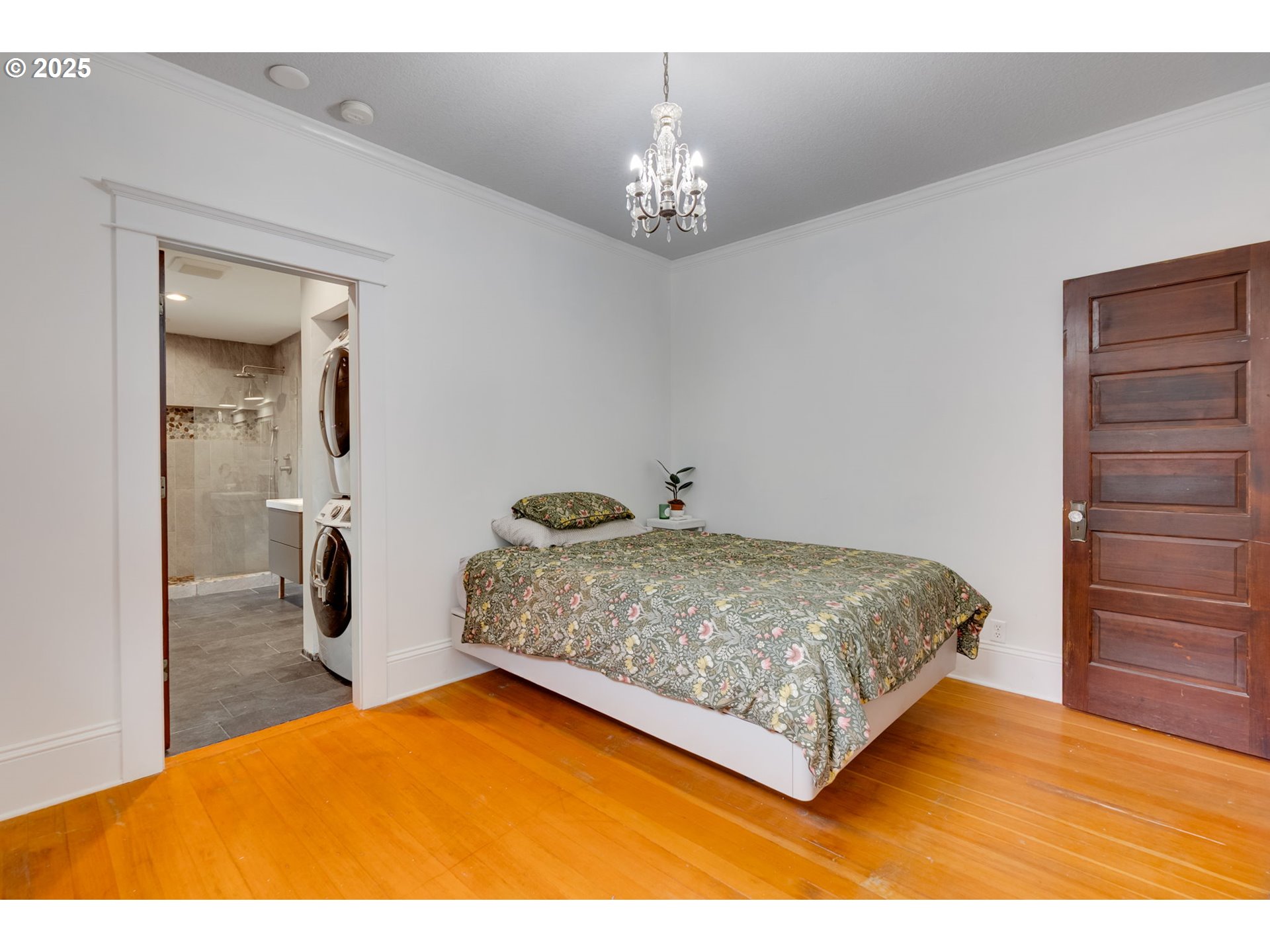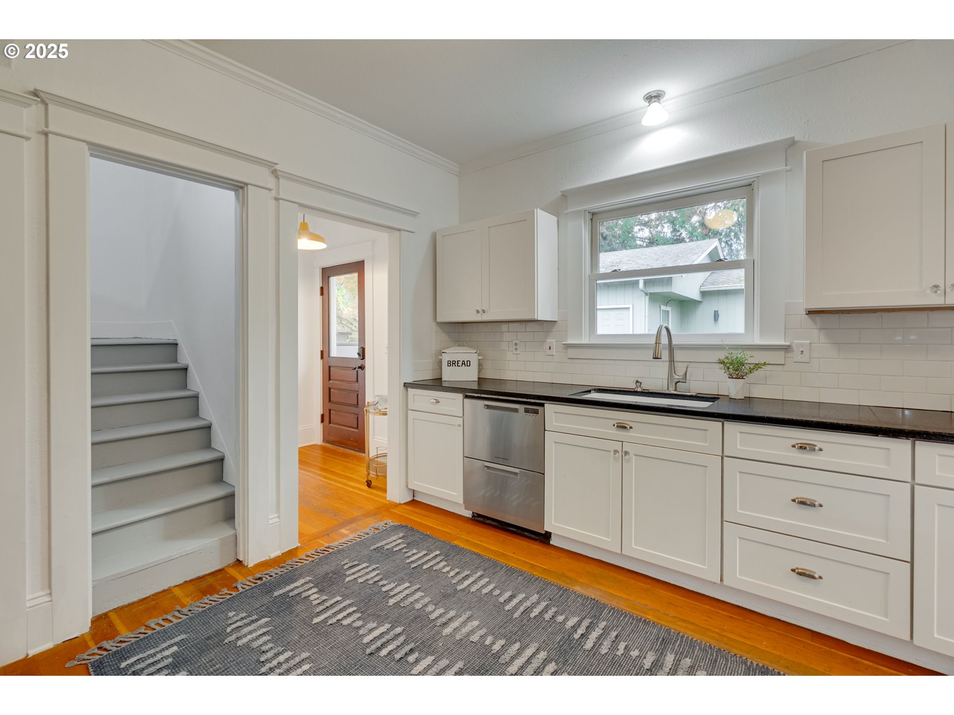 Welcome to this classic Craftsman in the heart of Hawthorne, complete with a broad, welcoming front porch perfect for watching sunsets, greeting neighbors, and enjoying the rhythm of the neighborhood. Light-filled and spacious, the home features four bedrooms and two full baths, with beautiful original details throughout. Wood floors, a fireplace framed by built-ins, crown molding, picture rail, and an elegant dining room highlighted by wainscoting and an impressive leaded-glass built-in hutch bring timeless character to the living spaces. The circular floor plan flows easily from room to room. The hall bath showcases a clawfoot tub, pedestal sink, and period tile. The main-floor primary suite offers a full wall of built-in closet storage and a luxurious ensuite bathroom with a large custom walk-in shower. Main-level laundry adds everyday convenience. Upstairs, you’ll find the fourth bedroom plus an airy bonus space with great ceiling height and abundant light, ideal for a family room, studio, playroom, or creative workspace. The basement offers even more flexibility: half finished with a bonus room and lounge/rec area, and half unfinished with excellent storage and custom barn door access to the front courtyard- perfect for bikes, gear, and easy loading. There is potential for future development here as a second living area if desired. The fully fenced backyard features eco-friendly, low-maintenance “frass” turf—always green, no watering or mowing. Recent updates include a new roof (2020), new water heater (2022), mini-split heating and cooling for room-by-room comfort, fresh exterior paint (2025), and interior paint throughout. All of this is just steps from Hawthorne’s best cafés, restaurants, shopping, and groceries. With a Walk Score of 95 and a Bike Score of 100, daily life can be delightfully car-free. Minutes to Mt. Tabor’s 200 acres of trails and views. Classic charm, thoughtful updates, and unbeatable location— this is Portland living at it's best! [Home Energy Score = 5. HES Report at https://rpt.greenbuildingregistry.com/hes/OR10242608]
