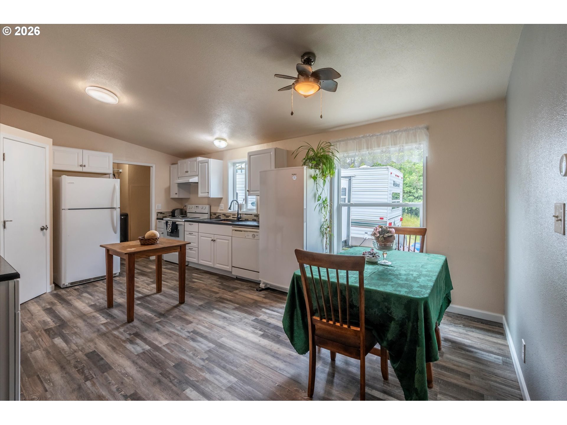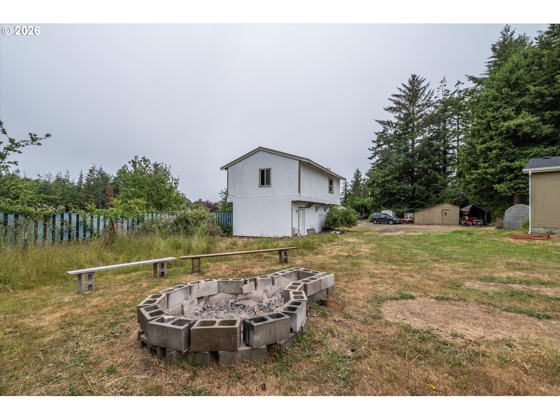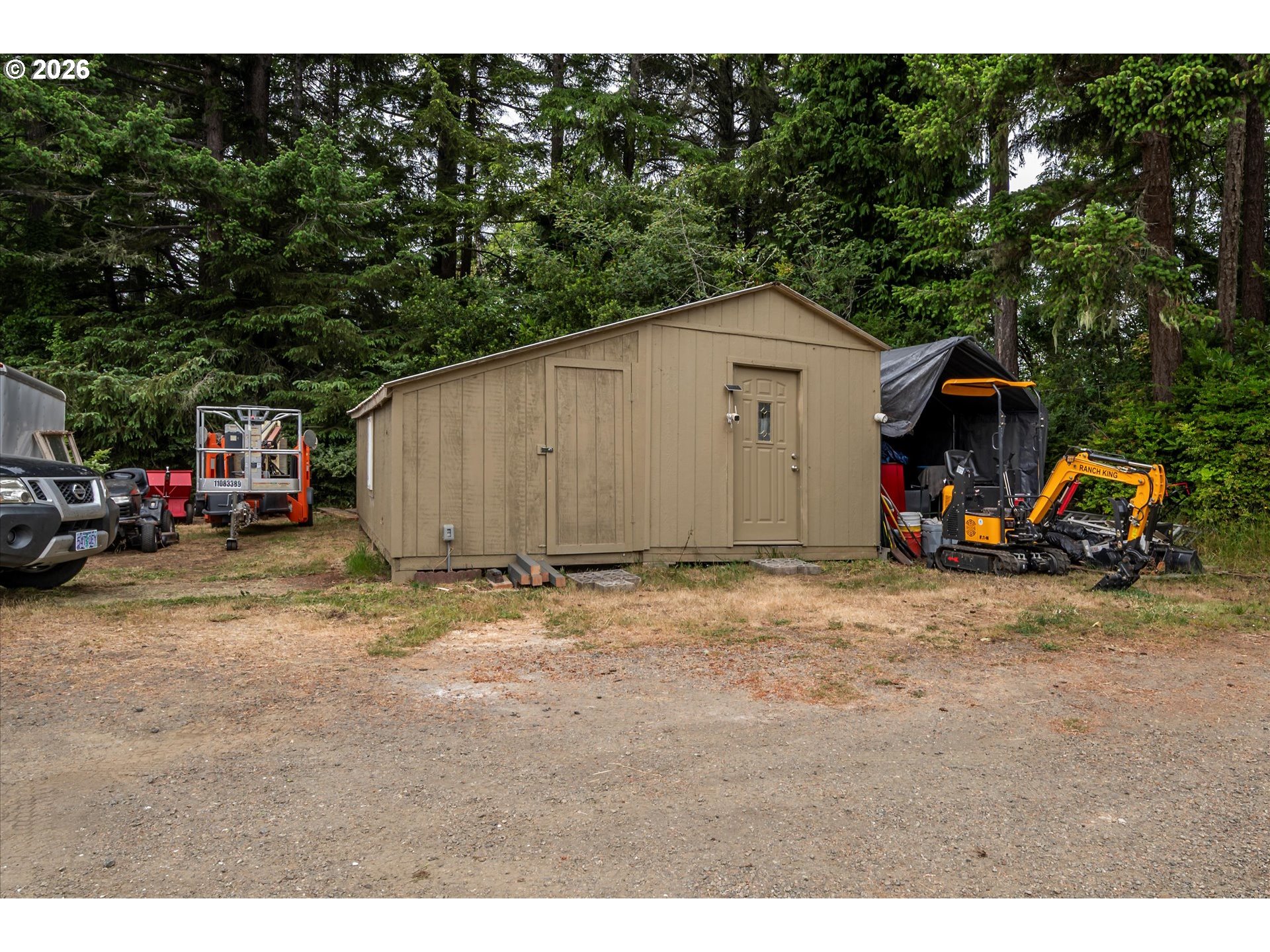 Enjoy space, serenity, and modern comforts in this beautifully updated 3-bedroom, 2-bath home on nearly one acre (.97) of mostly fenced land. Surrounded by mature trees, rhododendrons, holly trees, wild roses, huckleberries, and native plants. This property offers a peaceful, park-like setting where deer often wander through. The 1,344 sq ft home is thoughtfully positioned to maximize privacy and enjoy views of the lush landscape. Located just a short distance to the bay and a popular clamming bed, it offers the best of both nature and convenience. City water and public sewer are connected, and there's also a private well on site for gardening or backup use. Interior highlights include a fully remodeled kitchen with new cabinetry, countertops, tile backsplash, sink with pull-down faucet, garbage disposal, baseboards, and a custom walk-in pantry. The laundry room provides additional utility and storage. The primary bedroom features a custom-built closet and an en-suite bathroom updated with a large 42" x 60" easy-entry shower (with grab bars and rain shower head), tile backsplash, new vanity, lighting, and linen closet. The two additional bedrooms offer ample closet space and refreshed finishes. The guest bathroom has also been updated. Other notable upgrades include a 50-year roof installed in 2021, Nest thermostat, and a storm door with pet access. Outside, you'll find a firepit, greenhouse with raised beds, compost area, and multiple outbuildings: A two-story wood-frame garage/shop (approx. 1,200 sq ft) with metal roof, power (separate meter), upper-level double doors, boom and winch—potential for ADU conversion; buyers to verify with county. Two additional outbuildings (approx. 8x20 and 10x20) with power, lights, metal roofs, and shelving. Featuring RV hookup with 30-amp service. 18ft wide easement road provides access to this private location. This unique property offers flexibility, privacy, and proximity to natural amenities—make an appointment to view today!
