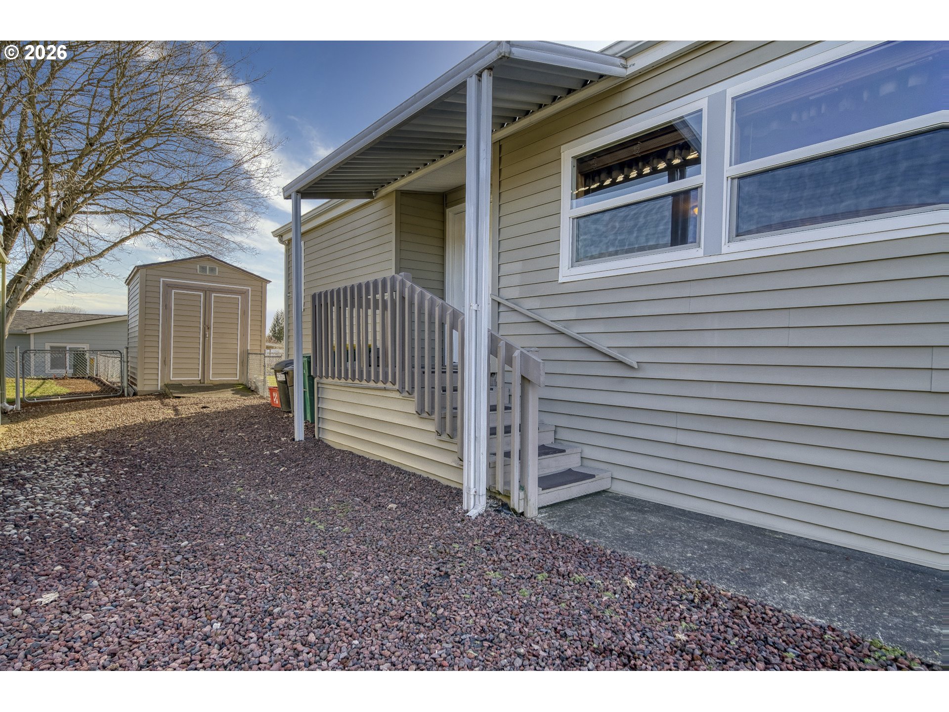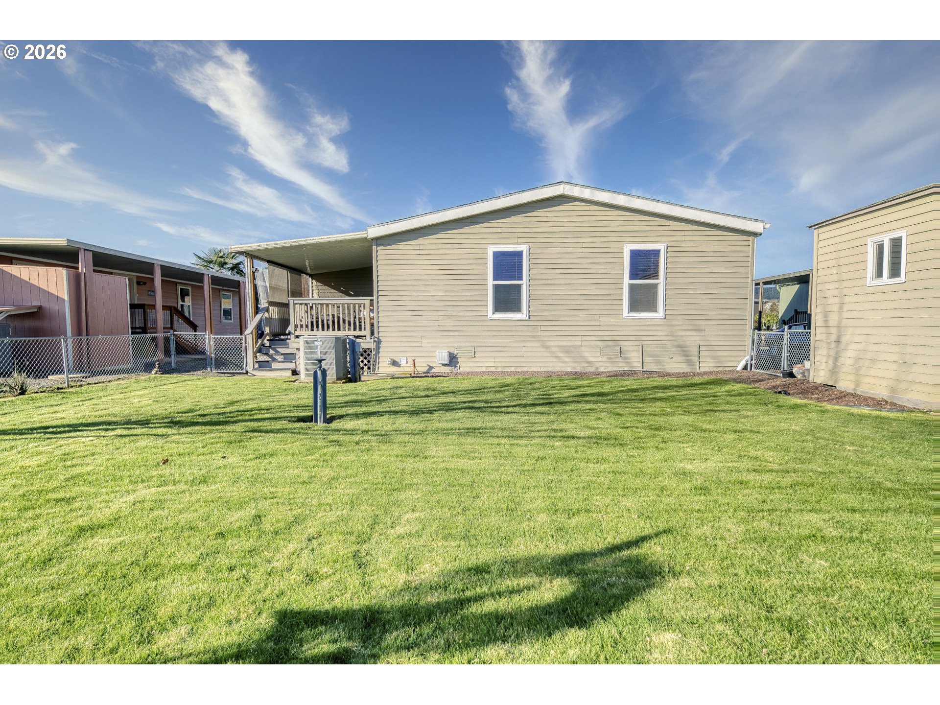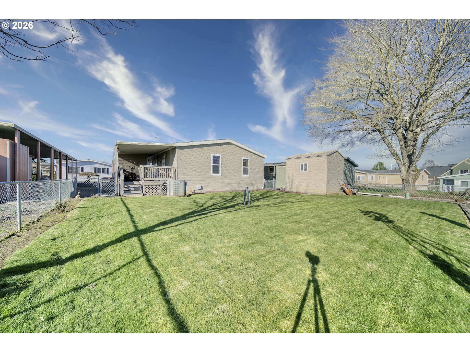 Springlake Community Opportunity. Welcome to this secure, gated 55+ community. This home does not qualify for FHA or VA financing. This manufactured home features a territorial view from the porch and backyard and offers a large, fully fenced yard with grass, a garden shed, and additional storage. The interior is filled with natural light, with the primary bedroom located at the back of the home for added privacy. All appliances are included. Recent updates include a newer roof and heat pump, along with a covered carport with parking for two vehicles. RV parking is available to residents for an additional monthly fee and is also secured within the gated community. The home is being sold as-is. All personal belongings will be removed prior to closing. All buyers must be pre-approved by the park prior to closing. Monthly space HOA includes water, sewer, upgraded cable, internet, community center with library and kitchen, events, and game room. The park is corporately owned by it's homeowners. Each homeowner owns their lot or 1/145th of the total property.