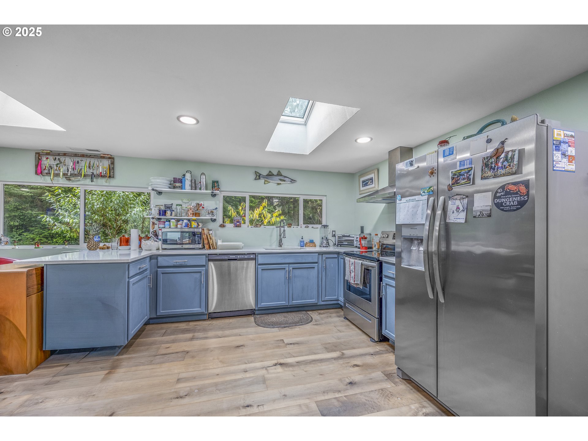 Private Coastal Sanctuary bordering the South Slough Estuary! Welcome to your gorgeous 2.20-acre private coastal nature oasis on the Oregon Coast, bordering 10,000+ acres of the pristine South Slough Estuary Reserve. Enjoy unparalleled privacy with a gated driveway on a shared 1/4-mile dirt road with only four fantastic neighbors. This is virtually a new home following a complete, high-end remodel over recent years. Recent upgrades include a metal roof, a new septic system, a new furnace/forced-air heating system, new windows, a new deck, and stunning maple flooring throughout. The kitchen boasts new stainless steel appliances, and the home is served by a pristine spring-fed UV filtration water system and features a relaxing sauna. The extra-large primary suite is a true retreat, featuring two walk-in closets and a large tile walk-in shower. A skylight and a glass slider to the deck create great natural lighting, and an attached cozy interior game room adds to the charm. The second bedroom has its own bathroom with a large soaking tub and an exterior door that leads to the sauna. The home features custom Bali window treatments. Outside, find a maturing mini-orchard with apple, peach, cherry, and plum trees. The huge garage/shop and large driveway offer ample storage for your RV, boat, and all your outdoor toys. Private trails from the property mean endless adventure right outside your back door! You are centrally located for all coastal activities: a short drive to Charleston Harbor, beautiful local beaches and state parks, and downtown Coos Bay shopping. The world-renowned Bandon Dunes Golf Resort is only a scenic 30-minute or less drive away. This home truly offers the picturesque life of the Oregon Coast—move-in ready comfort meets an unbeatable natural setting.