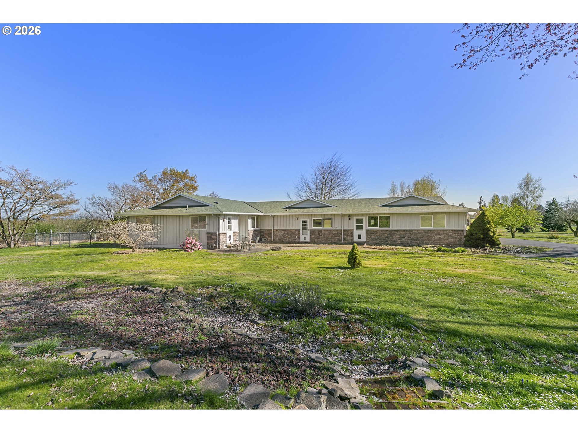OPEN HOUSE 1/4/26, 1:00-4:00 PM. Welcome to your own piece of Oregon history and charm in Butteville, one of the state’s oldest communities and just moments from Champoeg State Park. This rare single-level home sits on over 5 acres of beautifully maintained land, offering space to live, grow, and create the lifestyle you’ve been dreaming of. With dual living potential, the thoughtful floor plan includes five bedrooms and three full bathrooms, featuring two primary suites—ideal for multi-generational living, guests, or simply spreading out in comfort. The home is spacious, warm, and move-in ready, yet it also includes remodel plans, allowing you to customize your dream home. A newer roof & HVAC system provides peace of mind, while future upgrades enable the property to grow with you. Step outside to explore the incredible amenities. A detached three-car garage and a massive 60x30’ shop open up endless opportunities for hobbies, projects, or storage. The paved driveway makes for easy access, and RV parking with full hookups means you’re always adventure-ready—or prepared to host friends and family in style.The land itself is a highlight. Pick fresh fruit from your own orchard, enjoy the peaceful sounds of the countryside, and watch sunsets from the back porch. With over 5 acres, there’s room for gardening, animals, or simply relaxing in your private retreat. Living in Butteville means being part of a community rich in history. Just down the road, Champoeg Park offers hiking, biking, camping, and river access—while also being the historic site where Oregon’s provisional government was formed. This property offers a rare opportunity to live in close proximity to both nature and history, while enjoying modern conveniences nearby. Space, history, flexibility, and opportunity—this home offers the best of it all.