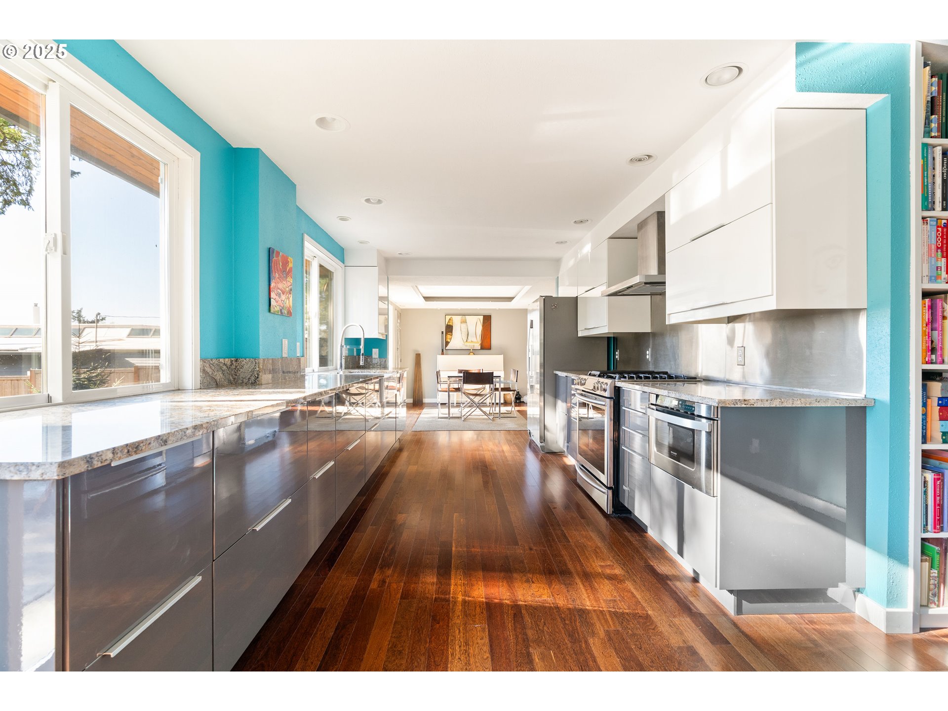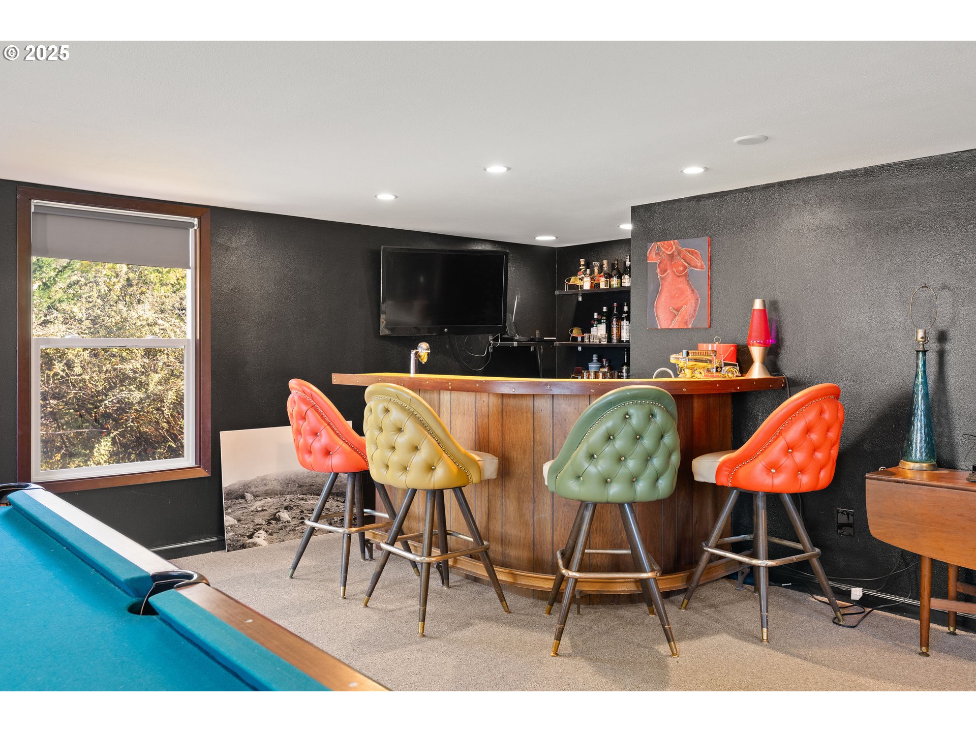 There’s a certain magic you feel the moment you cross the threshold of this one-of-a-kind home that is practical in all the right ways, yet full of undeniable character. For those who seek more joy in the everyday, it’s a home you simply have to experience in person. Natural light fills the space from sunrise to sunset, pouring through floor-to-ceiling windows and framing treetops, sky, and nature from nearly every room. Brazilian Acapu floors add warmth throughout, and the remodeled kitchen blends clean design with practical function. Step outside to a private, south-facing outdoor space designed for ease and enjoyment, whether you’re gardening, lounging, entertaining or simply watching the sky change colors. Upstairs, the primary suite feels like a true retreat. Spacious and calm, it’s anchored by a gas fireplace, with a walk-in closet and ensuite bathroom with walk-in shower that adds everyday comfort and ease. Just off the main living areas, the oversized laundry room plays multiple roles as a pantry, extra prep zone, and mudroom delivering an efficient, hard-working space that keeps daily life running smoothly. Whether you’re into hands-on projects or outdoor adventures, the oversized garage has the space to match your lifestyle. Above it, the expansive bonus room is complete with a wet bar and pool table that adapts effortlessly for entertaining, unwinding, creating, or simply enjoying time on your own terms. Behind the scenes, updated systems like siding, roof, plumbing, and electrical with LED lighting throughout keep life easy and low-stress so you can simply move in and enjoy. All of this is tucked into Southwest Portland’s sought-after Ash Creek neighborhood, known for its peaceful streets, friendly neighbors, and easy access to trails, parks, shops, and daily conveniences. You will love living here! [Home Energy Score = 1. HES Report at https://rpt.greenbuildingregistry.com/hes/OR10242792]