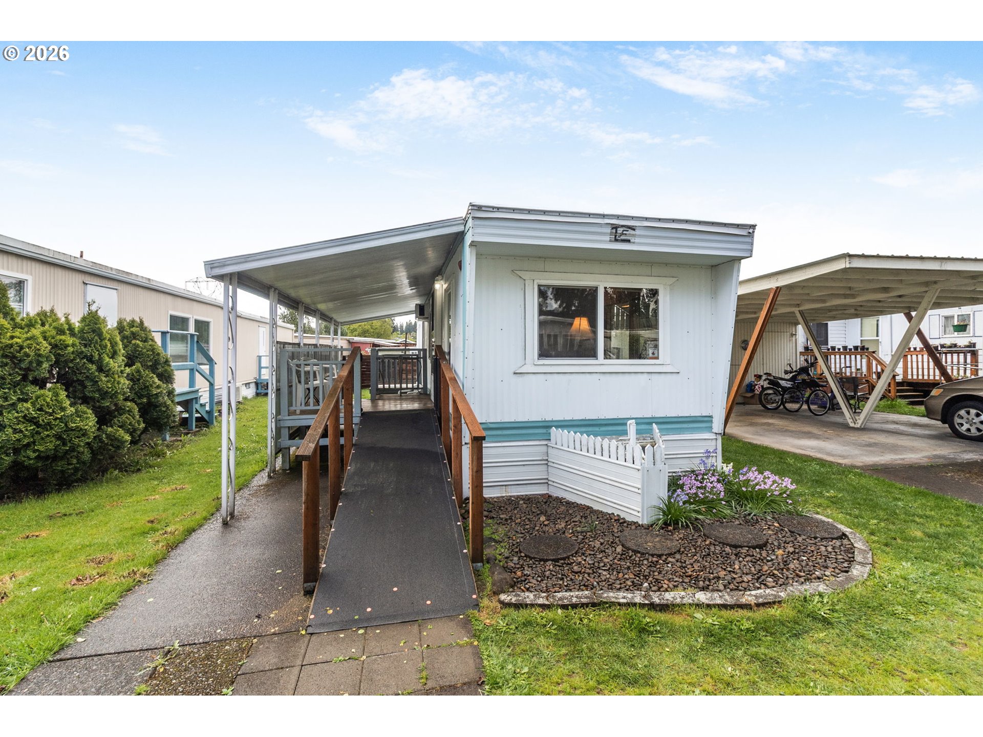 Adorable and move-in ready 1-bedroom, 1-bath manufactured home in Chalet Village, a vibrant 55+ community rich with amenities! Built in 1966, this charming home has been thoughtfully updated with newer double-pane windows, vinyl plank flooring, fresh interior paint, and beautiful granite countertops.Enjoy easy access with a wheelchair ramp leading to the front door, plus a fully fenced yard. This home features forced air heating and wall A/C units for year-round comfort. Outside, you’ll find a covered carport with two convenient storage sheds, along with a cozy covered patio seating area—perfect for relaxing.Offered at under $30,000, this low-maintenance home can even be sold furnished, making it an excellent option for those looking to relocate or enjoy a fresh start. Chalet Village offers a welcoming, connected lifestyle with amenities including a clubhouse with a community kitchen, dining hall, TV lounge, pool tables, a coin operated laundry facility, saunas and a seasonal pool. Space rent is $1,015/month; buyer must be park-approved. Don’t miss this affordable opportunity—schedule your private tour today!