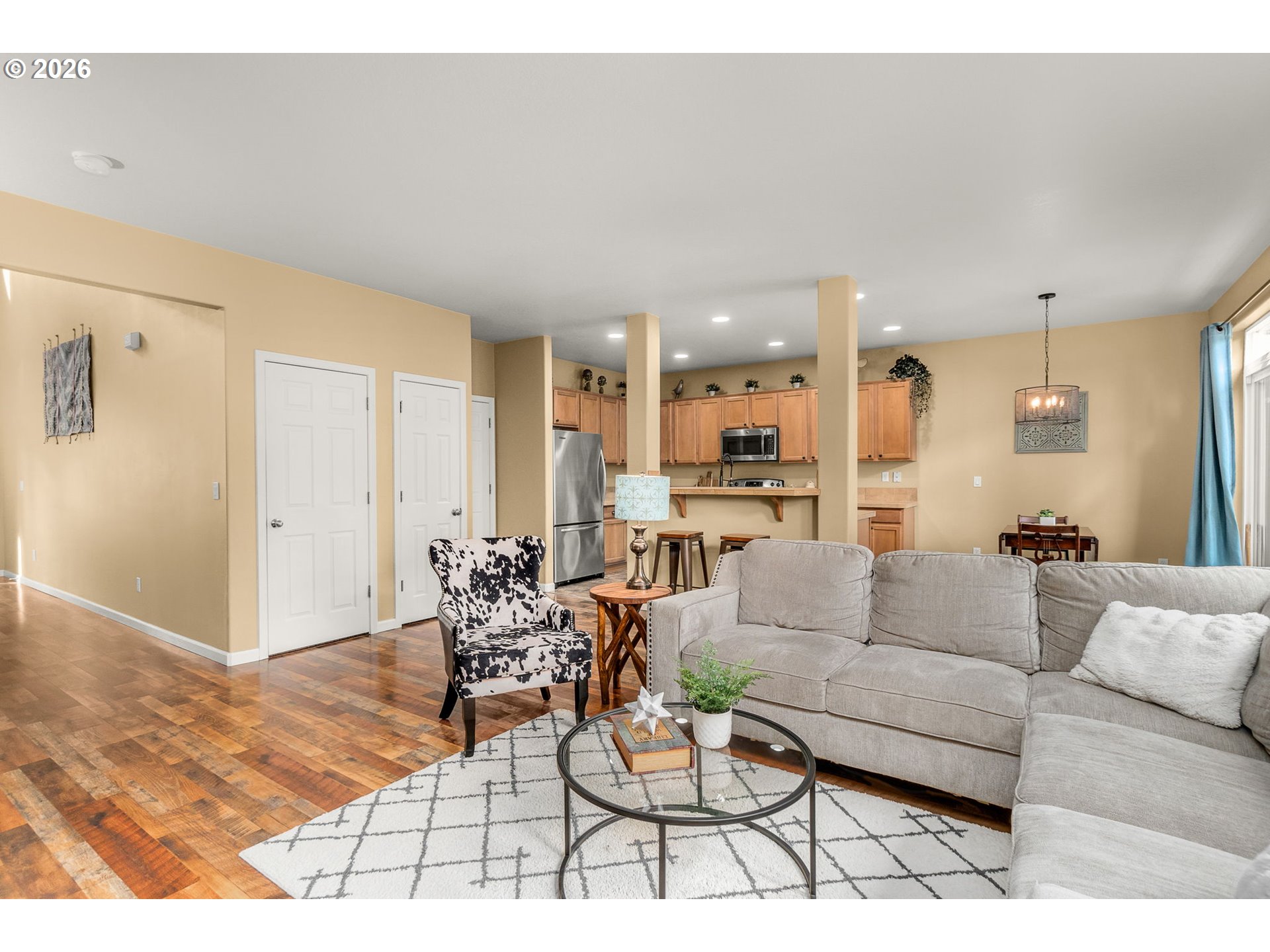 Welcome to this cozy home in Hillsboro featuring a bright open floor plan designed for comfortable everyday living! The warm and inviting living room is great for entertaining whether doing so at the eating bar, in the dining nook, or outside on the patio in your fenced back yard.Upstairs you'll find three bedrooms and two full bathrooms, including a generous primary suite with a walk-in closet and a large private bathroom. The convenient upstairs laundry room adds functionality and ease to daily routines.Additional highlights include a two-car garage and a comfortable, functional layout throughout. Don't miss the new AC from 2025, laminate floors on the first floor, and all the included appliances.Just off this private street is a park right around the corner and Rood Bridge Park only one mile away, this corner of Hillsboro has everything you need! You new home awaits!