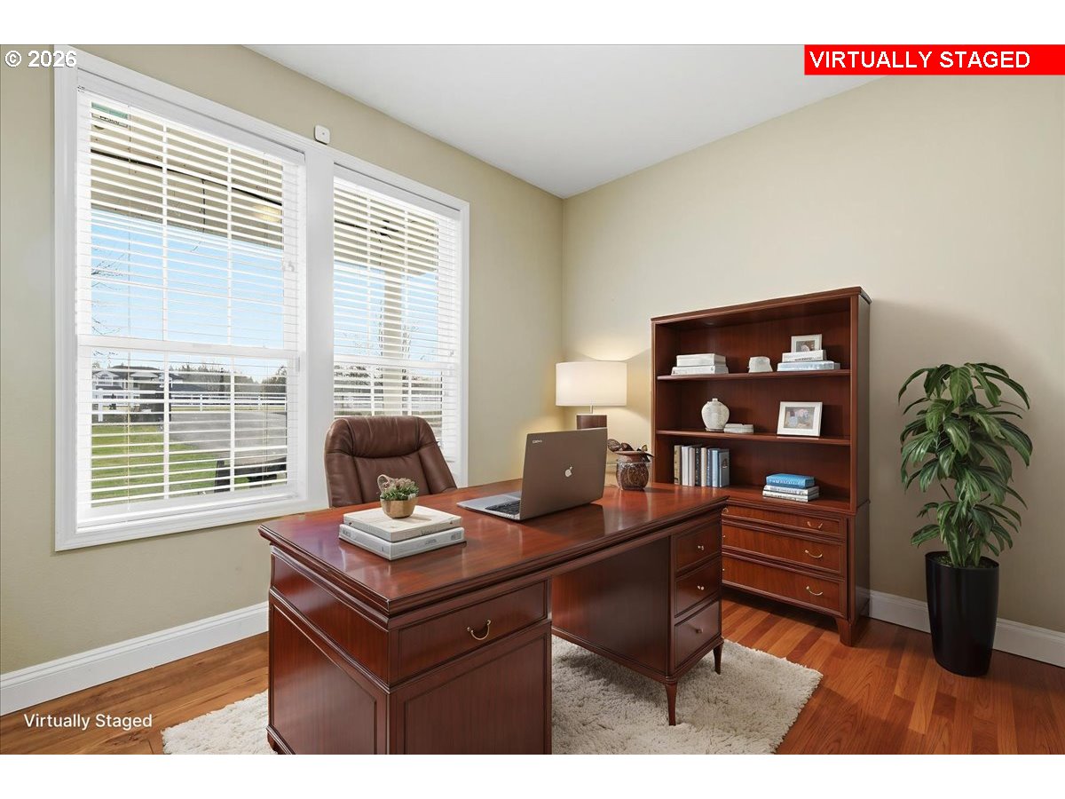 An exceptional & rarely available offering in the prestigious King Corner Estates, where privacy, elegance, and serenity converge. This beautifully appointed luxury farmhouse is set on 4.3 tranquil acres, offering 3 bedrooms, 2.5 baths, a private office, & an expansive bonus room ideal as a 4th bedroom or refined retreat. Nestled within a quiet, exclusive enclave of dead-end roads & no through traffic, the neighborhood provides a peaceful, safe setting ideal for walking, biking, and everyday relaxation. Thoughtfully curated upgrades include luxury laminate flooring throughout the main level, a custom-designed staircase featuring newer treads, balusters, designer railing, and elegant entry wainscoting, complemented by plush newer carpet upstairs. At the heart of the home, the chef’s kitchen has been fully reimagined down to the studs, showcasing bespoke cabinetry, gleaming quartz countertops, & top-tier Café appliances, anchored by an impressive 36” dual-fuel gas range—perfect for both everyday living & elevated entertaining. Designed for both refined living & equestrian enthusiasts, the property features a newly built (2022) $350,000 custom-quality 36’ x 36’ three-stall horse barn, complete with mud-free attached paddocks, a hay loft, & fenced & cross-fenced flat pasture. There is ample space for horse trailer parking, offering exceptional functionality without compromising the estate’s polished aesthetic. Outdoor living is equally captivating, with an oversized patio framing breathtaking Mt. St. Helens views, lush mature landscaping, and dedicated garden & orchard spaces, creating a private, resort-like setting. Ideally located near Whipple Creek Trails, Battle Ground Lake, and premier equestrian facilities including the Saddle Club and Emerald Valley Stables, this property offers the perfect balance of elegant rural living & modern luxury. This property is amazing, a once in a lifetime opportunity to be so close in, yet feels every bit of country.