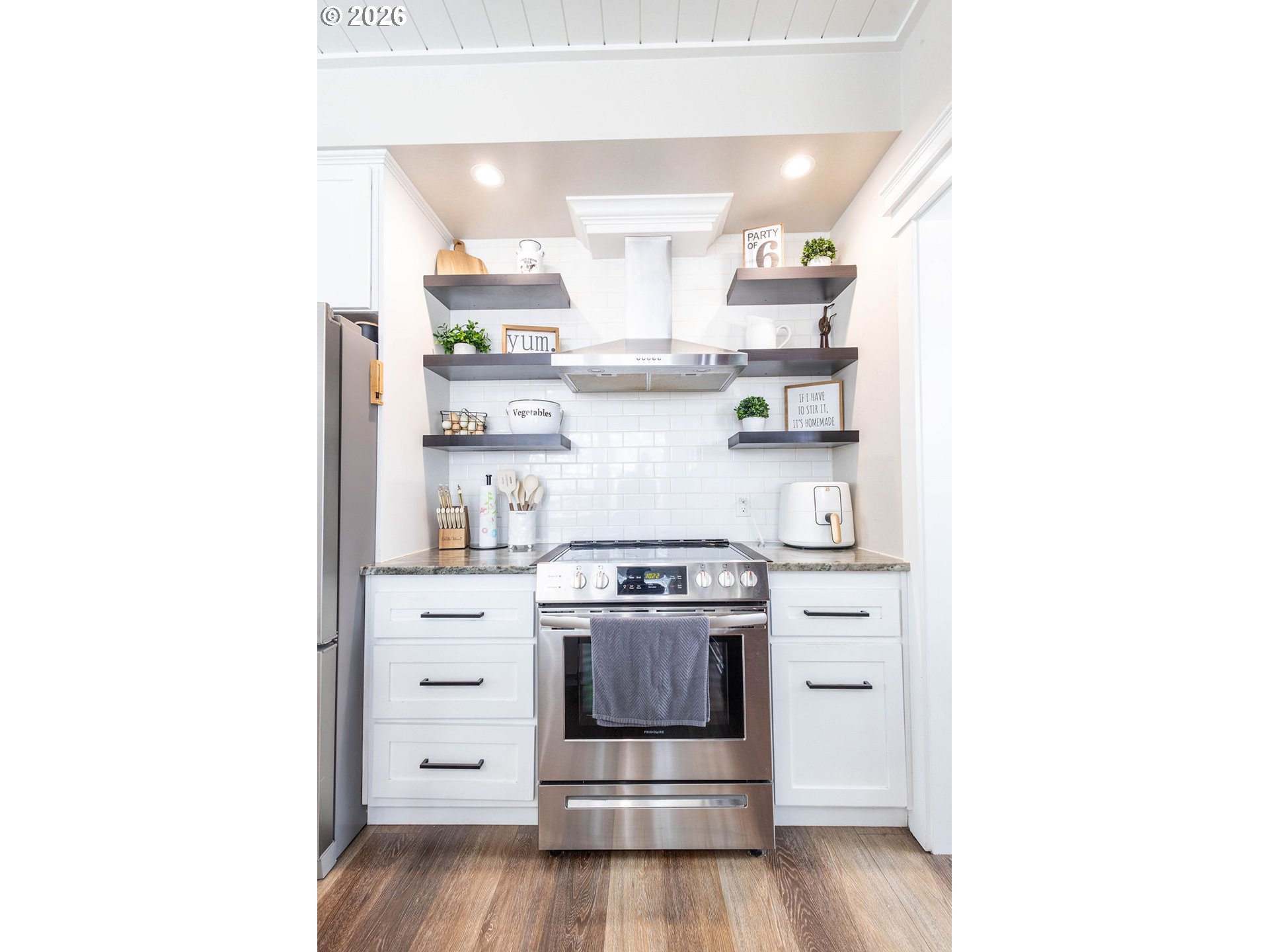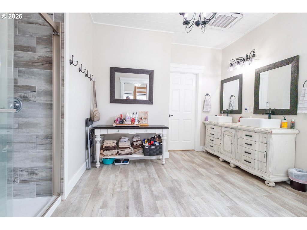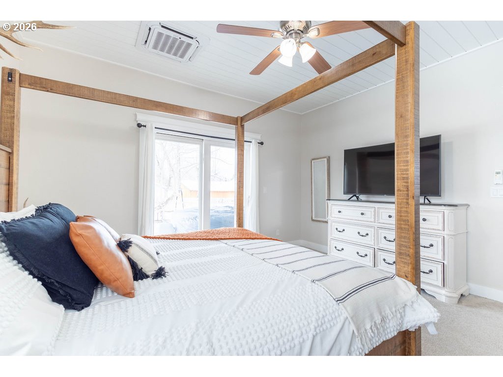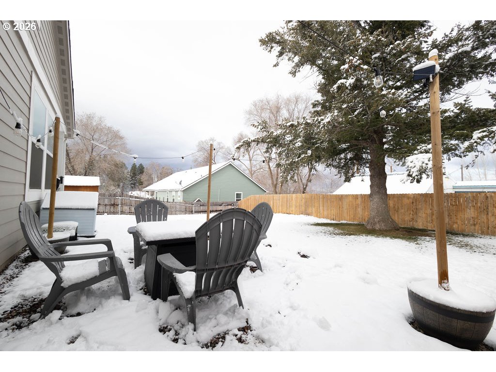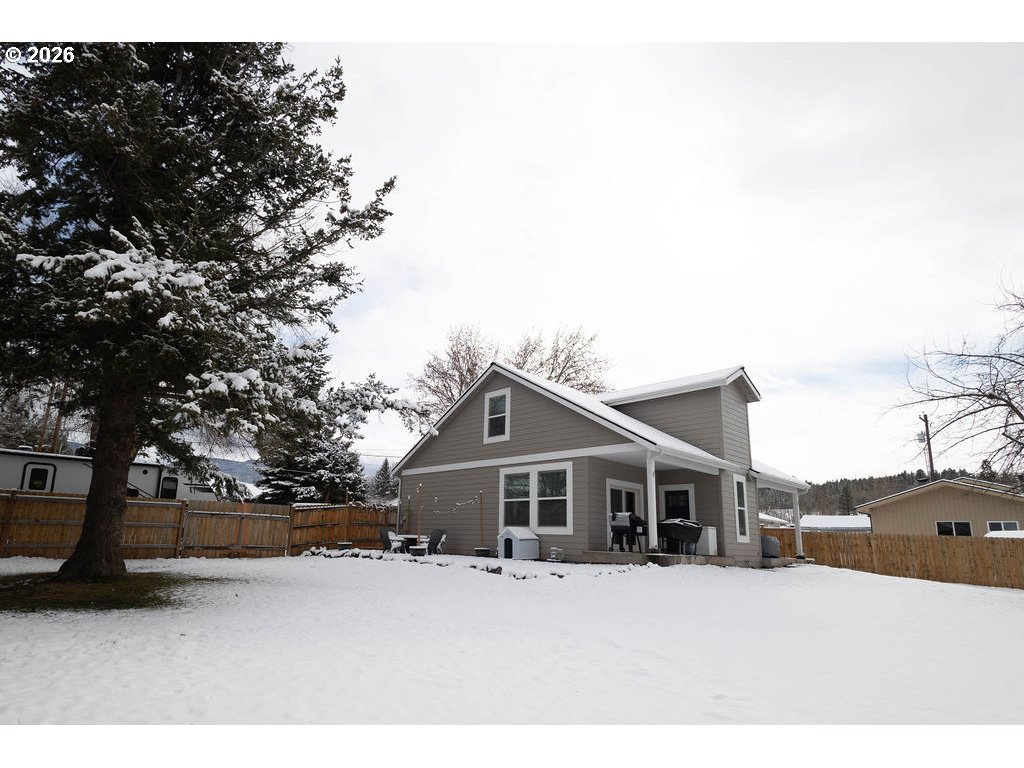 Beautiful newer home in Cove, Oregon offering 1,704 sq. ft. on a spacious 100’ x 100’ lot. Built just 6 years ago, this thoughtfully designed 3-bedroom, 2.5-bath home combines quality craftsmanship with low-maintenance living in one of Eastern Oregon’s most peaceful communities.The main-level owner’s suite features a spacious ensuite with tiled shower, space for a soaking tub, double vessel sinks, and a walk-in closet. The kitchen is a standout with granite countertops, a large 4’ x 7’ island with abundant storage, farmhouse apron-front sink, mirrored hutch, and floating shelves.Enjoy 9’ shiplap ceilings, custom trim work, two custom barn doors, luxury vinyl plank flooring, and plush carpet in the bedrooms. Additional highlights include a guest bath on the main level, indoor laundry/mud room with antique sliding barn door, and two separate back concrete patios with double glass doors — including private access from the owner’s suite and a hot tub outlet.The fully fenced yard provides privacy and space to relax, all while taking in beautiful mountain views and the slower pace of life that makes Cove such a special place to call home. Modern efficiency, custom finishes, and peaceful surroundings — this one truly stands out. Everything is ready for you - simply move in and make it home.