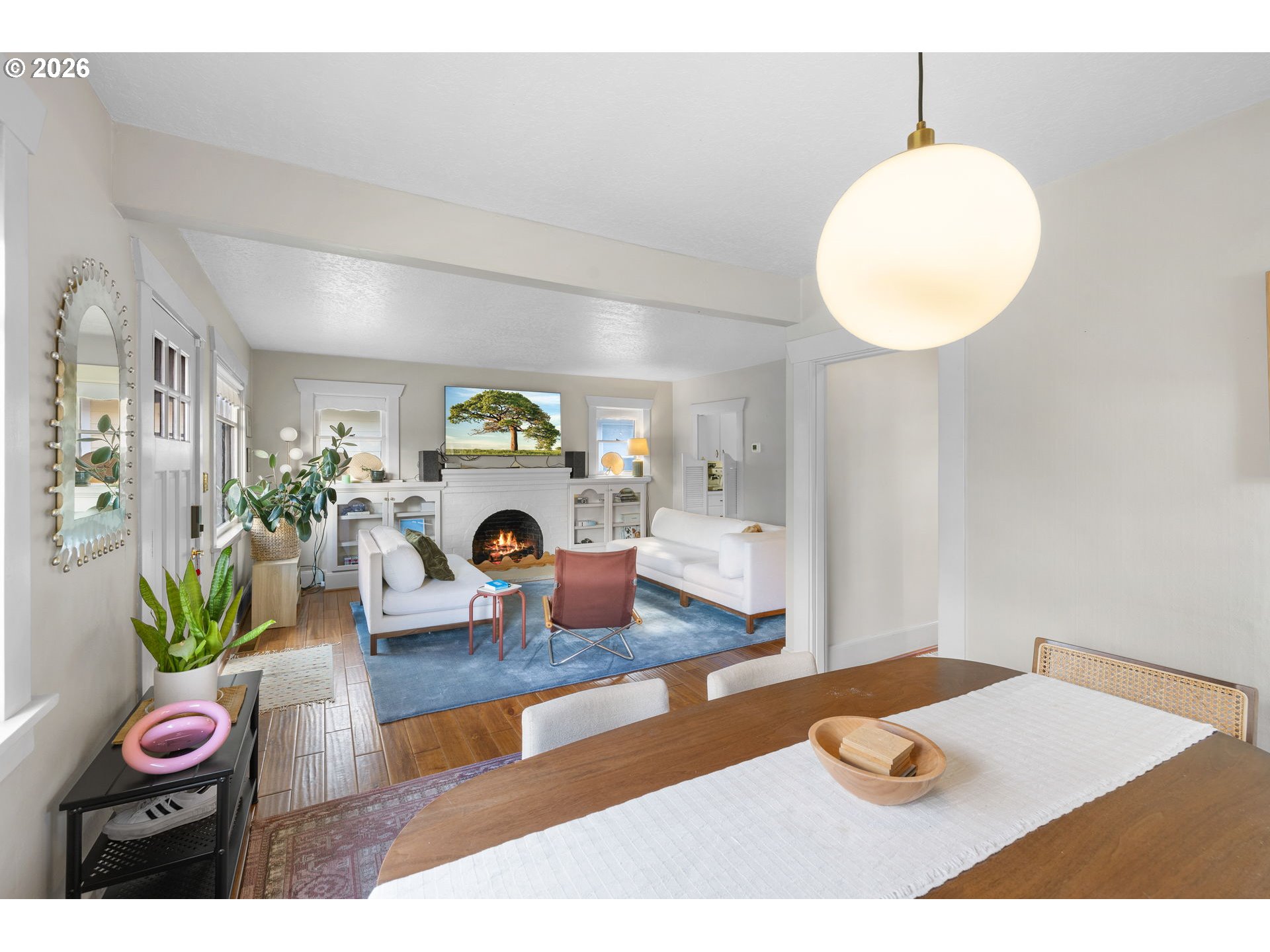 This adorable NE Portland bungalow blends classic charm with an unbeatable, walkable location. Fresh paint and engineered hardwood floors brighten the living and dining rooms, while the cozy living room features a wood-burning fireplace with built-ins. Enjoy morning coffee on the spacious Trex front deck or unwind in the private backyard with patio and pergola.The primary bedroom is on the main level with fir hardwoods, multiple closets, and built-ins next to a generous bath. A partially finished basement adds flexibility with three additional bedrooms, an office, and ample storage. Recent updates include exterior paint (2021), furnace (2018), and water heater (2017).Set in a flat, highly walkable neighborhood just 0.3 miles to Rose City Park, close to Rose City Golf Course, the Rose City Food Carts on NE Sandy, and only 12 minutes to the airport.Cute, convenient, and perfectly Portland.