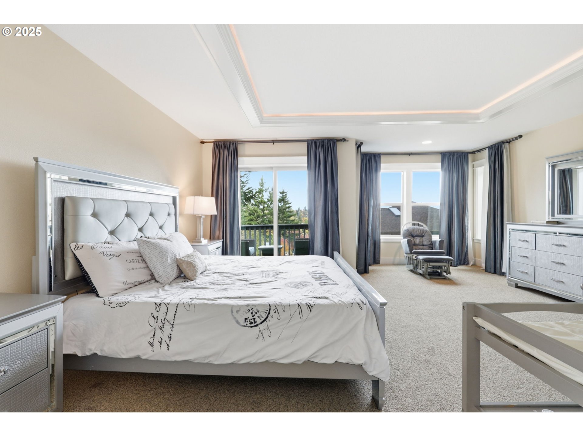 Built in 2007, this stunning custom home sits on a quiet cul-de-sac surrounded by nature and showcases beautiful stonework on the exterior. Inside, you’ll find Brazilian cherry hardwood floors, a formal living room with floor-to-ceiling windows and vaulted ceilings, and a formal dining room enhanced with wainscoting and crown molding. The open kitchen features slab granite countertops, stainless steel appliances, a pantry, custom cabinetry, an island, and built-ins—perfect for both everyday living and entertaining. Step outside to a brand-new Trex deck offering expansive territorial views and an unobstructed view of Mt. St. Helens. The main level also includes a living room with new carpet and a gas fireplace framed in stone, as well as a full bedroom with hardwood floors, a walk-in closet, and an adjacent full bath.Upstairs, an open wrought-iron staircase leads to the spacious primary suite with a lighted coved ceiling, walk-in closet, and luxurious ensuite bathroom featuring tile floors, dual sinks, a jetted tub, and a walk-in tile shower. A private balcony provides views of Mt. St. Helens and the surrounding landscape. Three additional large bedrooms, a hall bath with dual sinks and tile floors, and a laundry room with built-in shelving, sink, and tile counters complete the upper level. The home also offers new exterior black steel fencing, large walk in storage under the home, a three-car garage, A/C and no HOA. Conveniently located near Gresham’s Springwater Trail, parks, and with easy freeway access—this home perfectly blends elegance, comfort, and natural beauty. View the video walk through at: https://tinyurl.com/yfjnab2p