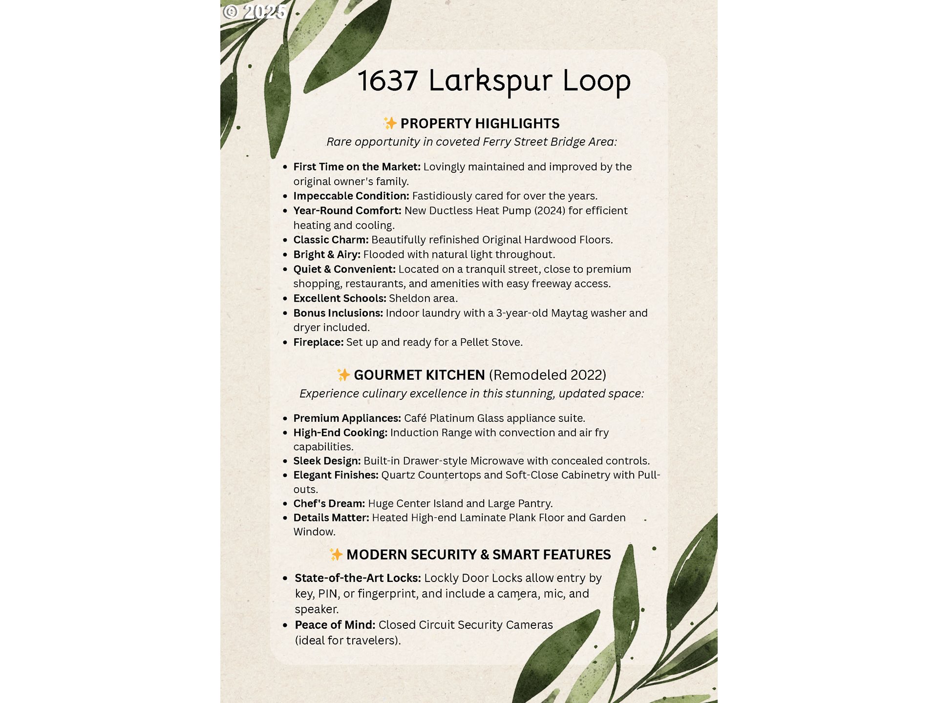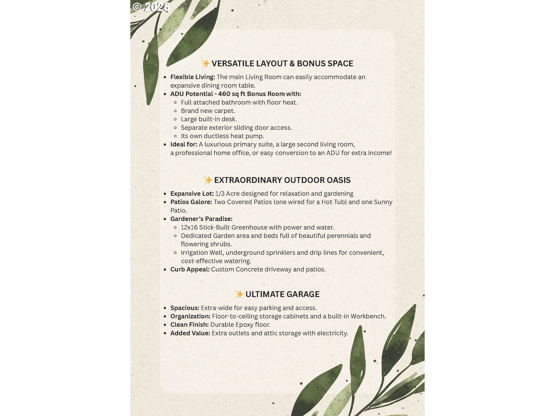 Gardener’s Dream! Gourmet Chef’s Kitchen! Amazing garage! Versatile Bonus Room! Meticulously maintained and remodeled, this premium property has something for everyone. The kitchen had a full remodel in 2022 and features an oversized island, quartz counters, tons of soft-close cabinetry, and a heated floor. Any chef would be delighted with the Premium Café Platinum Glass appliances including a high-end induction range. The huge bonus room with its own full bath, built in desk, and exterior entry is exceptionally versatile. At 460sf, it could be a large family room, primary suite, home business, or is easily convertible into an ADU for extra income. Step outside to some extraordinary outdoor spaces. The generous 1/3 acre lot has expansive yards, ample gardening space, custom concrete patios – two with covers and one for sun-lovers, a large, stick-built greenhouse with power and water, a myriad of perennials and flowering shrubs on all sides and an irrigation well and system to efficiently keep it all green. The extra-wide garage is lined with floor-to-ceiling storage cabinets and features a workbench, epoxy floor, and abundant attic storage. Located on a quiet street in a highly desirable area close to premium shopping, restaurants, amenities and Sheldon schools, this property is a must see! Newer ductless heat pumps, gleaming hardwood floors, closed circuit security system... the amenities are too many too list. Need two homes close together? The owner is also selling the house across the street. MLS# 123611622.