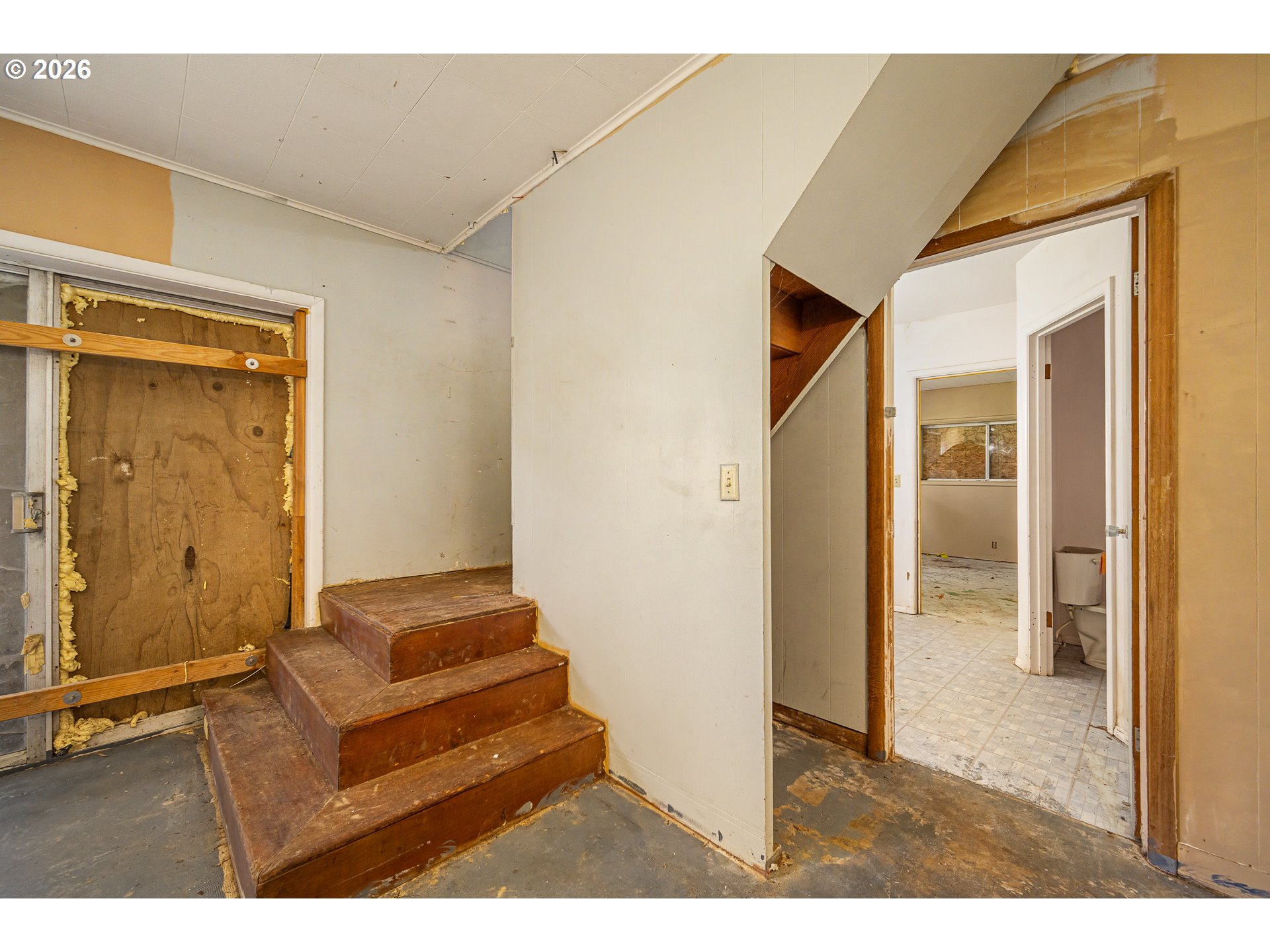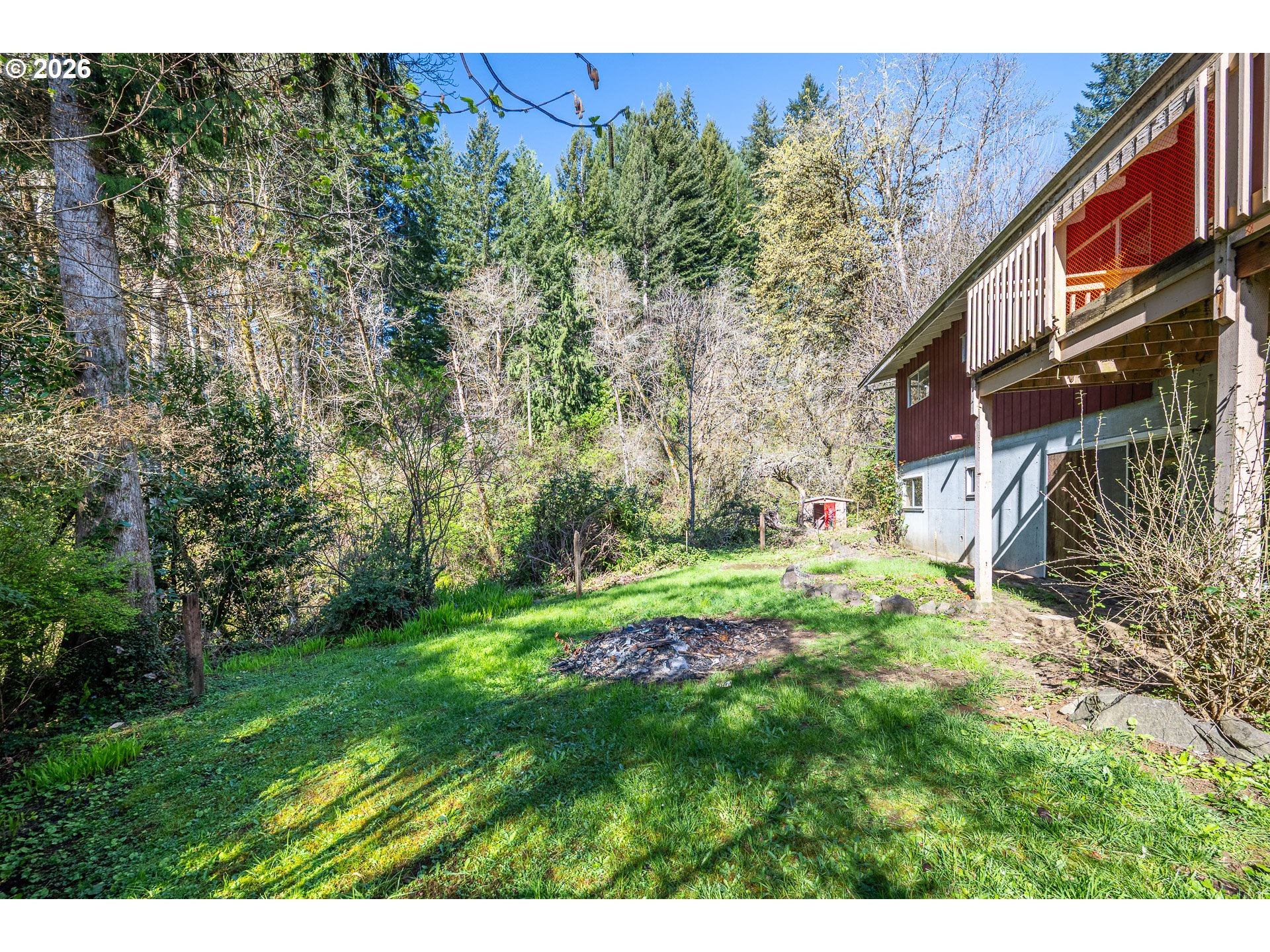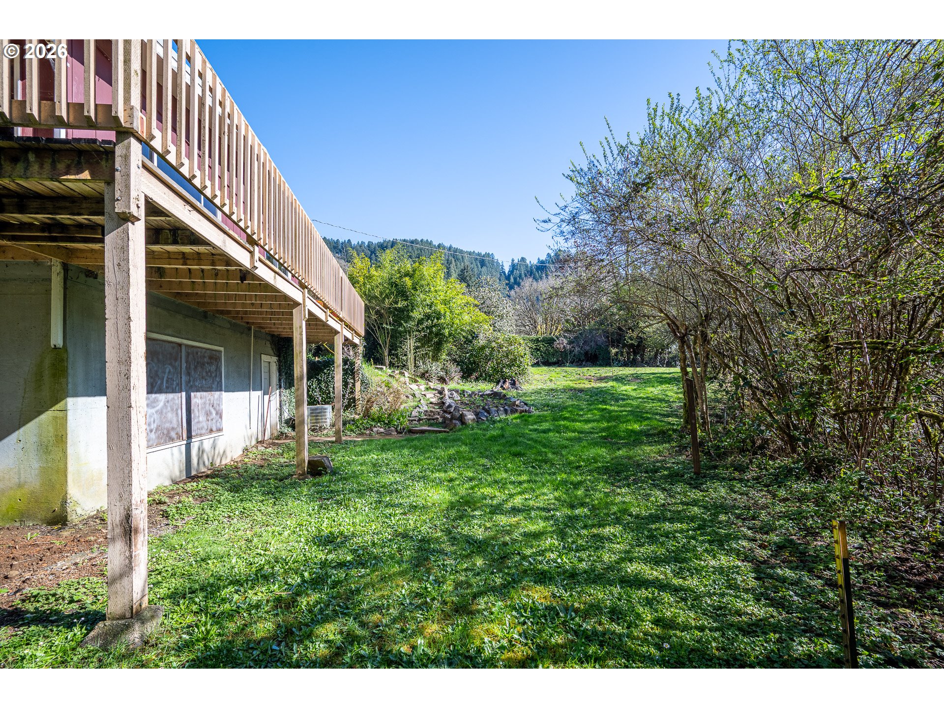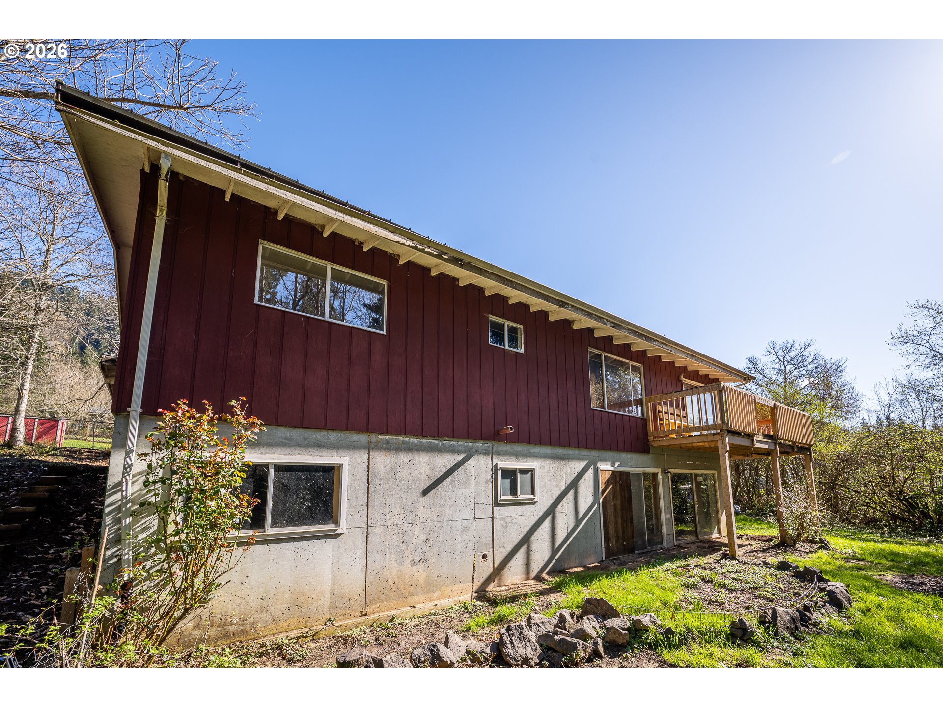 Once upon a time, in 1963, a man loved his wife so deeply he built her dream home.She loved music, so he tucked a record player into the wall—designed to fold away when not in use, preserving both sound and space. She loved to bake, so he installed a NuTone Food Center, allowing her to effortlessly switch from mixer to blender with a simple click into the under-counter motor—an elegant nod to mid-century innovation.She loved nature, so he chose a quiet lot at the end of the road, surrounded by trees. He brought the outdoors in with open-beam wood ceilings, still intact today, and oversized windows and sliding glass doors that fill the home with natural light. Both sliders open to a spacious wraparound deck—perfect for taking in the peaceful setting.Thoughtfully designed for both beauty and function, the main-level bathroom was expanded to include dual sinks and a built-in sit-down vanity. And because life in Mapleton in the 1960s meant preparing for winter power outages, he built fireplaces on both levels. Each features a flush hearth, inviting you to gather close and stay warm on quiet evenings. Downstairs, the daylight basement continues the connection to the outdoors, with two large sliding doors offering even more immediate access to the surrounding landscape.A home built with intention, care, and love—ready for its next chapter.