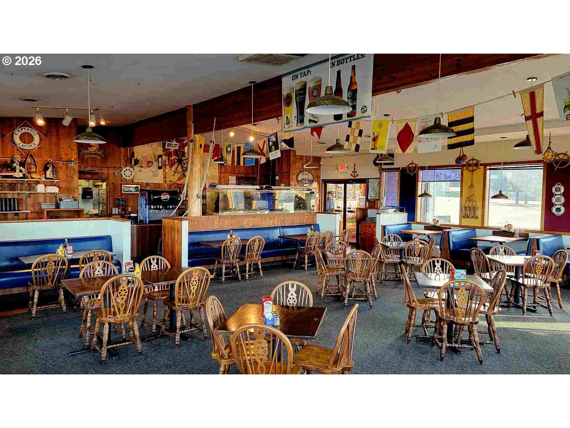 Let the flavors of the sea inspire you at Captains Choice! What a great opportunity to own a local thriving business of about 40 years, offering immediate brand recognition, a loyal customer base and taste the richness of traditional sea food in every bite. This is a prime location with high visibility on Virginia Ave a major artery with constant traffic flow. A turn key infrastructure, fully equipped with 16 tables, 48 chairs, 7 beer taps, walk-in freezer, large fish tank and many more specialized items. Large windows provide scenic views of the bay and Southwest Oregon Regional Airport creating a unique dining experience.