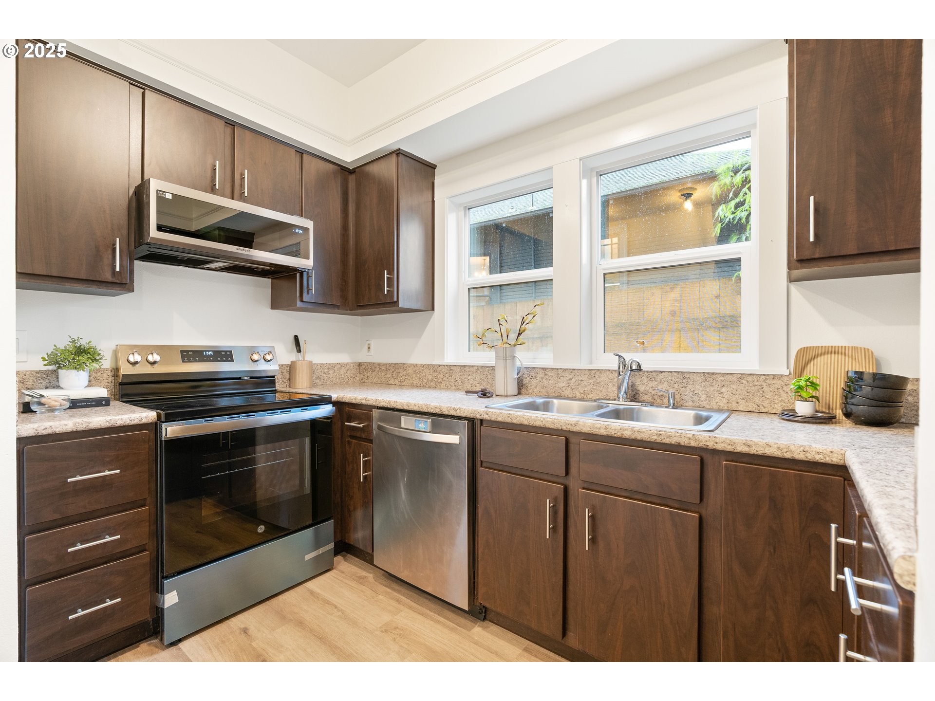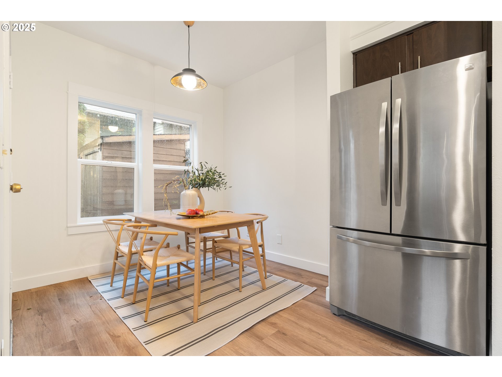 Affordable cutie in King! rare NO HOA and off-street/driveway parking! Come see this charming, attached home offering 3 bedrooms and 2 full bathrooms in the heart of inner NE Portland. Step inside to a spacious living room, full bathroom, laundry, kitchen, and dining area on the main level. Upstairs you’ll find three comfortable bedrooms and an updated full bath. Enjoy a manageable yard with shed, entertaining deck, and space for small garden beds. Driveway provides off street parking. Move in ready with fresh interior paint throughout and new floors on main floor. Bonus storage space in large, clean, easily accessible attic. Incredible location near PCC, U of O PDX campus, PDX airport, and quick access to I-5. Just blocks from Killingsworth and the vibrant Alberta Arts District, with dining options like Piedmont Food Cart Station, Hat Yai, Podnah’s BBQ, Orange & Blossom Patisserie, Mis Tacones, and more. With a Walk Score of 88 and Bike Score of 100, this home offers affordable and easy living in one of Portland’s most desirable neighborhoods. [Home Energy Score = 6. HES Report at https://rpt.greenbuildingregistry.com/hes/OR10243105]