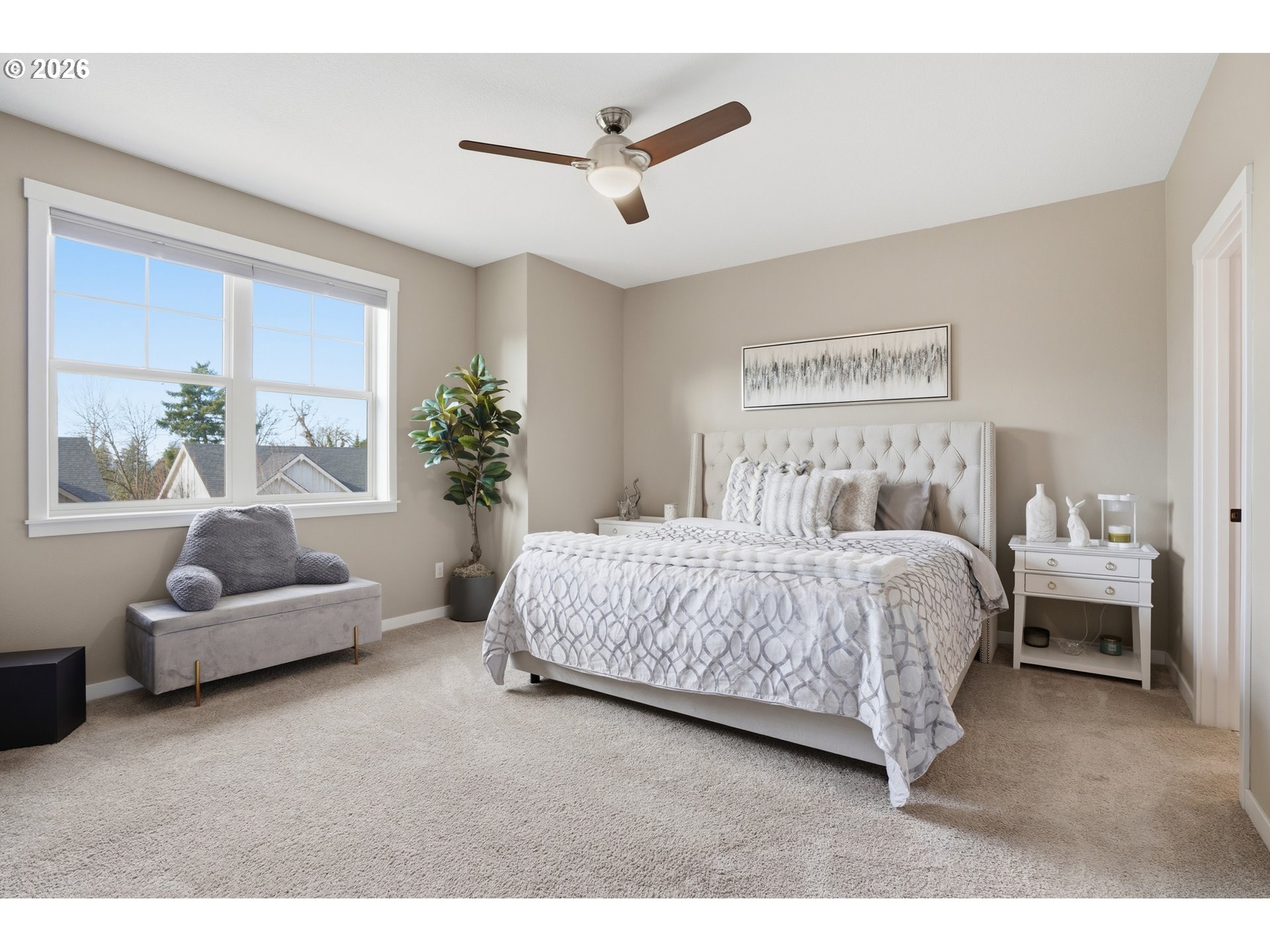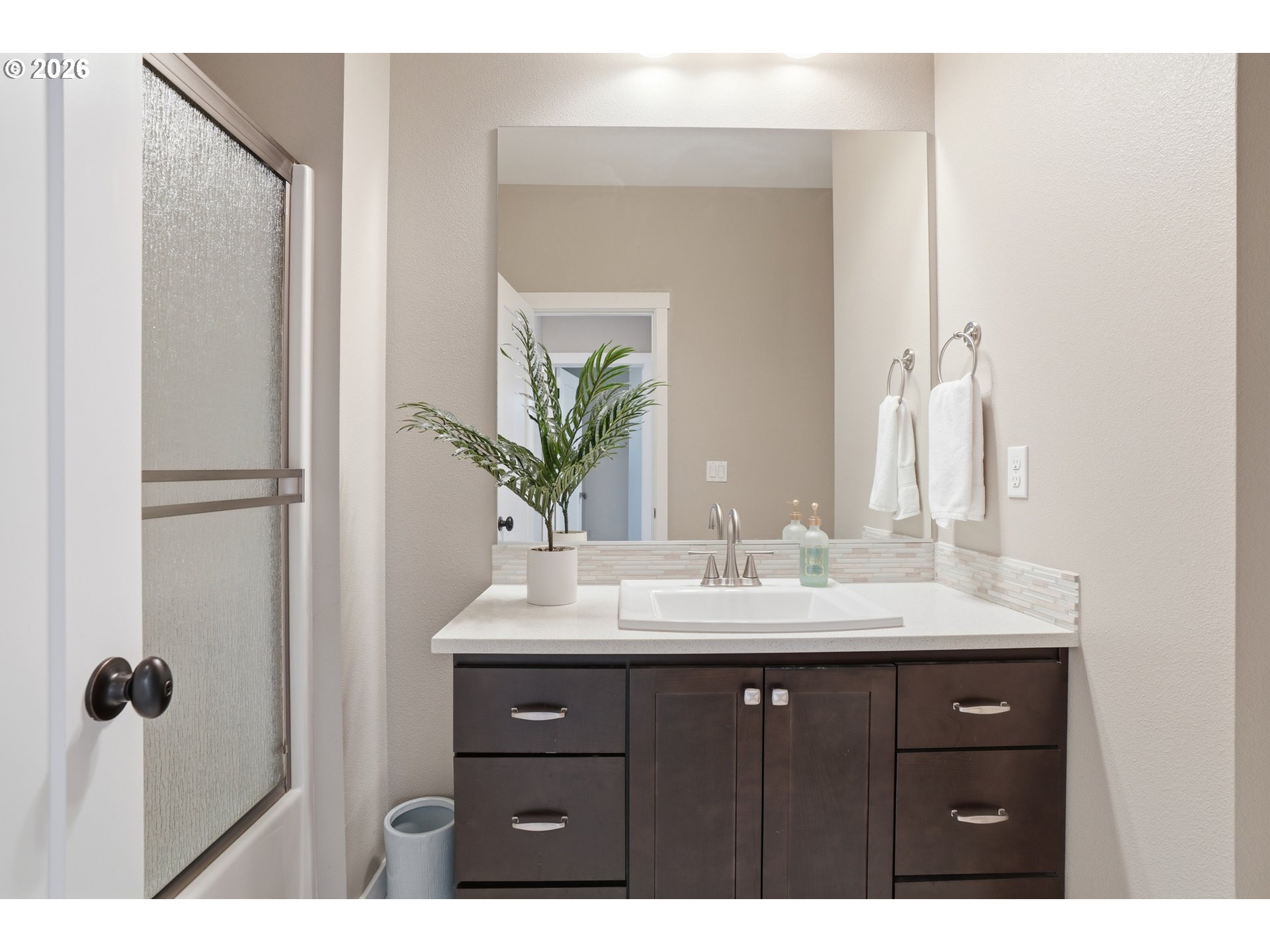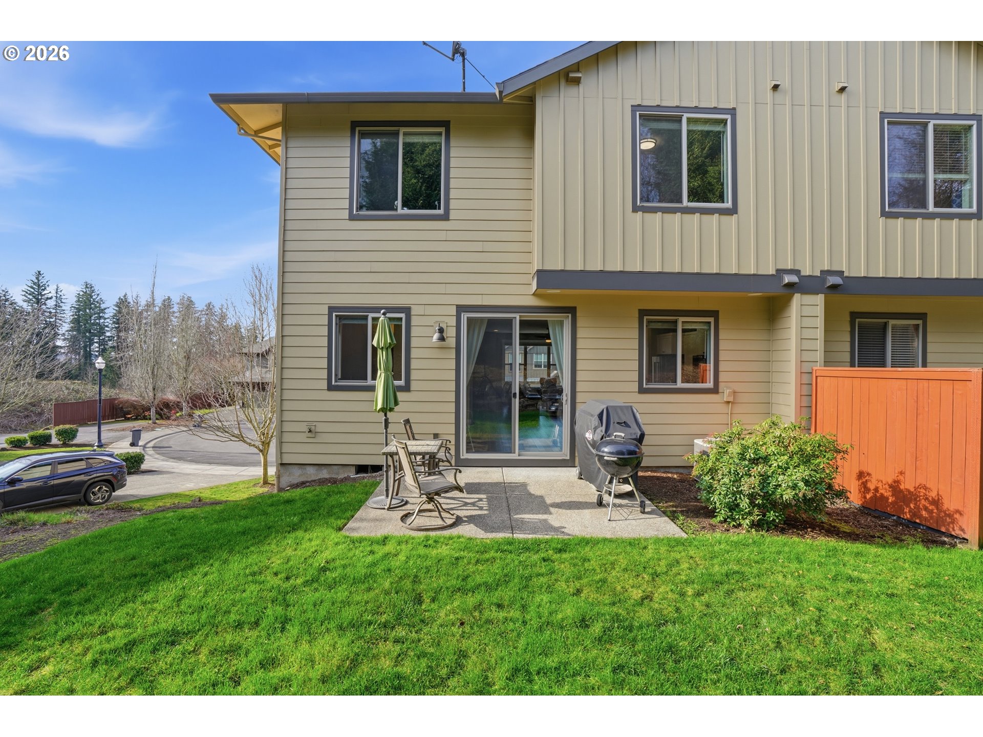 Designed for effortless living, this inviting, move-in-ready townhome is situated in a quiet cul-de-sac where peaceful surroundings pair seamlessly with convenient access to shopping, top-notch local schools, and easy access to PDX. This well-maintained home features 3 bedrooms and 2.5 baths, with a bright, expansive great room ideal for both everyday living and entertaining. The kitchen is beautifully appointed with upgraded appliances and quartz countertops, which extend into the bathrooms for a cohesive, modern finish. The open-concept layout flows effortlessly into the living and dining areas, creating a welcoming and functional main level. Step outside to a patio area surrounded by mature trees, an ideal space for relaxing or hosting guests, complete with surround sound. Inside, enjoy surround sound throughout the main level and a layout designed for comfort and connection. The spacious primary suite offers a large walk-in closet and private bath, while the additional bedrooms are generously sized and versatile. A small, dedicated flex space on the main level provides a convenient option for a home office or additional storage. Epoxy-coated garage floors, a water softener system, and exceptional storage throughout add thoughtful functionality and value. With a six-inch gap between this unit and the next, the home is extra quiet. The HOA provides all exterior maintenance, allowing this townhome to offer truly maintenance-free living. With quick freeway access for commuting to downtown Vancouver, Portland, or weekend escapes to the Columbia River Gorge, this home delivers comfort, convenience, and ease in an exceptional location, just moments from Fisher’s Landing Elementary.