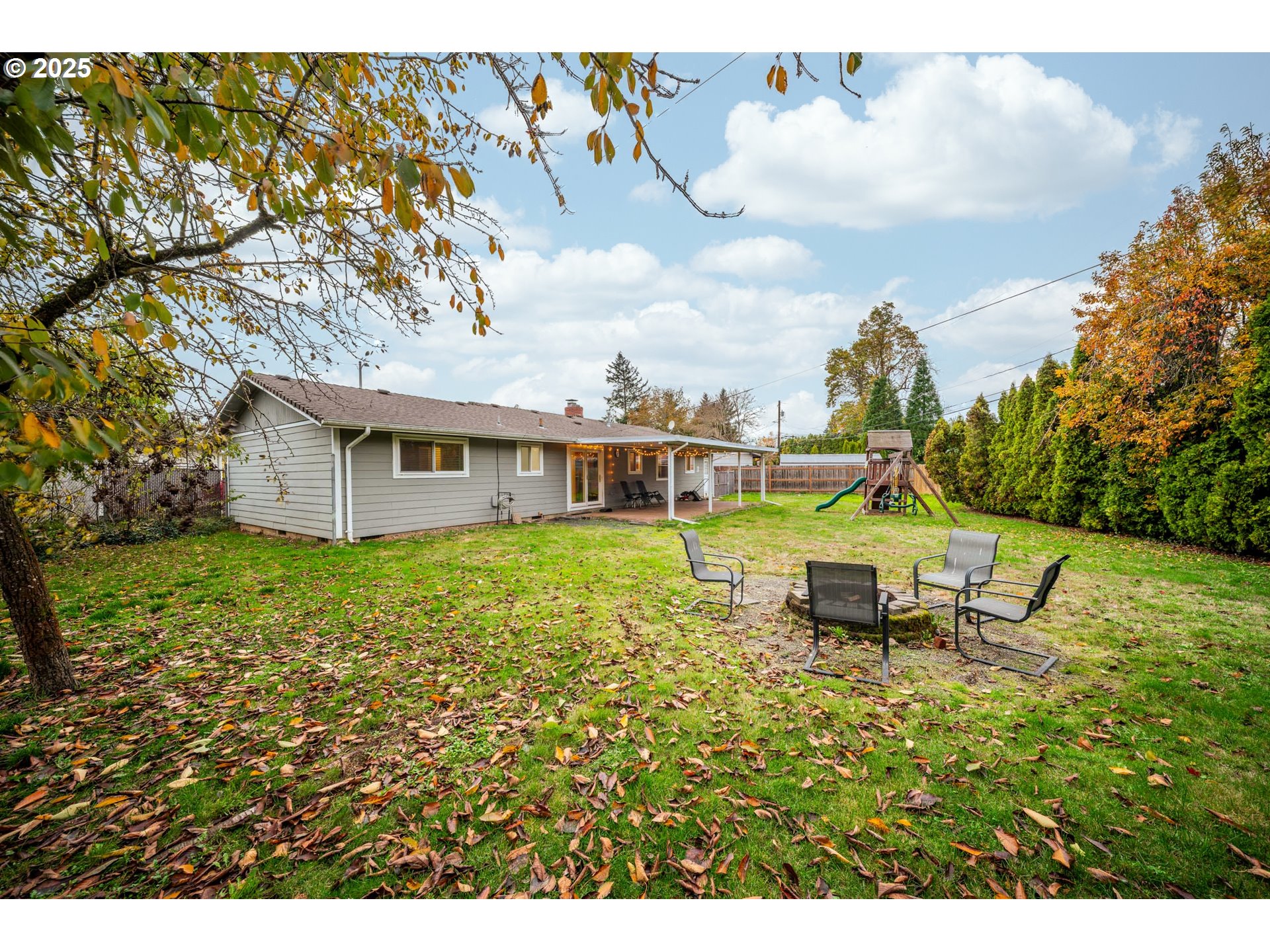 Welcome home to this charming one-level! This beloved ranch-style layout has been thoughtfully updated to feel fresh, bright, and effortless for everyday living. Tucked away on an 9,900SF Lot (.23Acre.) This oversized lot in a quiet cul-de-sac. This home offers 3 bedrooms, 1.5 baths, and a flowing floorplan for comfortable living space. The light and bright floorplan feels open and inviting from the moment you step inside. The updated kitchen features spacious granite countertops, stainless-steel appliances, and is complete with a dishwasher and disposal. The living room offers hardwood laminate floors & a cozy wood-burning fireplace that is perfect for crisp fall evenings & cool summer nights. Easy Indoor/Outdoor living! Sliding glass doors open from the dining area, to a large covered patio for year-round entertaining. The fully fenced backyard offers space to play, relax by the firepit, garden and enjoy the fruit trees! (Pear, Cherry & Plum tree) The possibilities feel endless in this generous outdoor space. Fresh interior paint! Large newer windows throughout that bring in plenty of natural light. Fiber cement siding. Air Condition. House water lines repiped in 2024. Forced Air Gas Furnace, located in attic. 468 SqFt Oversized Attached Garage. Fresh paint and modern touches make this home a blank canvas ready for you! Excellent parks! The newly expanded Parklane Park (opened 2025) and the beautifully updated Verdell Burdine Rutherford Park (renovated 2020) provide fantastic nearby recreation. Alder Grade School just a few blocks away! Come and enjoy this wonderful community. This lovely home & tremendous lot is ready for you to make it your own! [Home Energy Score = 6. HES Report at https://rpt.greenbuildingregistry.com/hes/OR10242730]